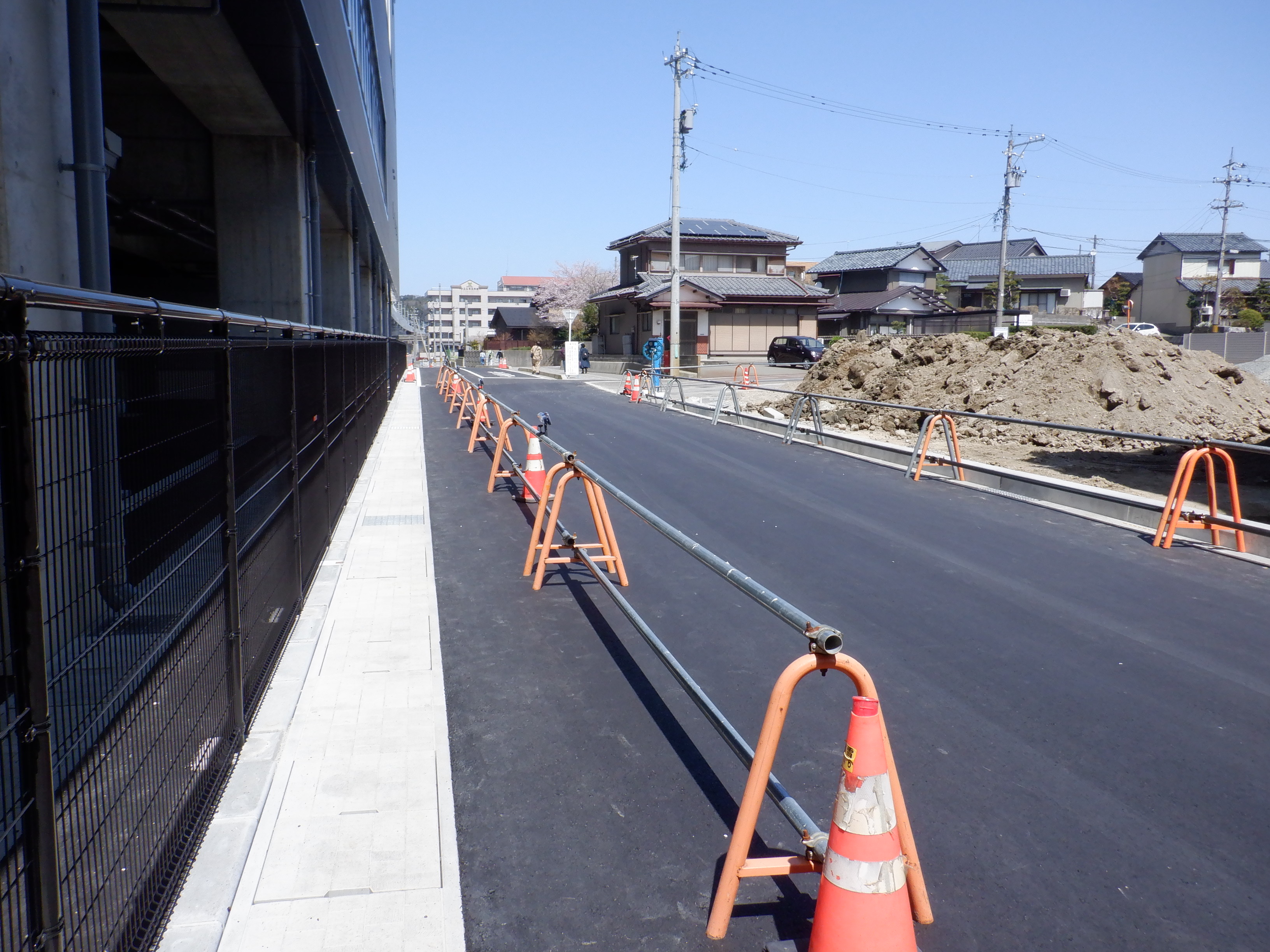西口の道路の延長部分出入口。いよいよこの道路が開通しました。
