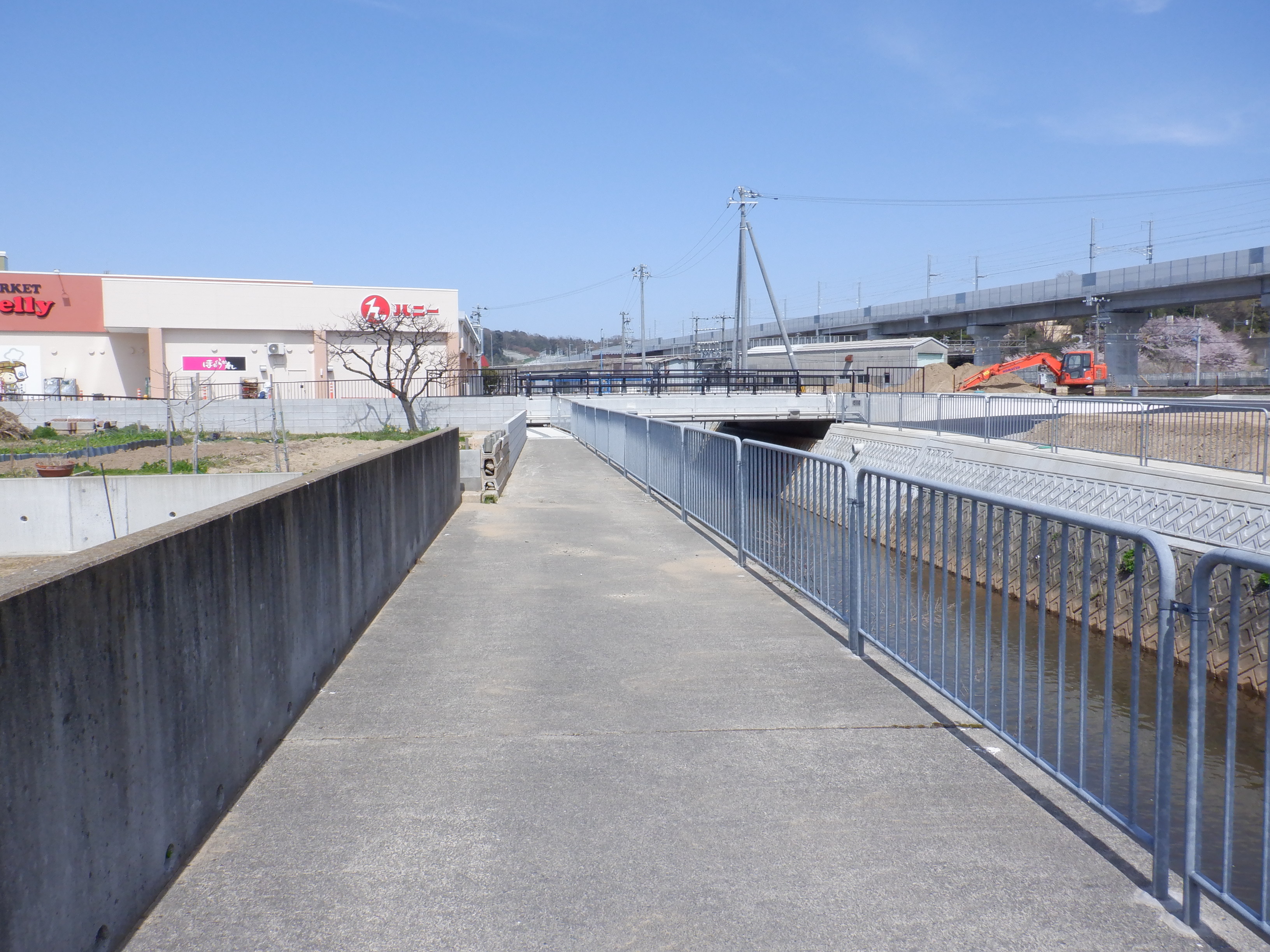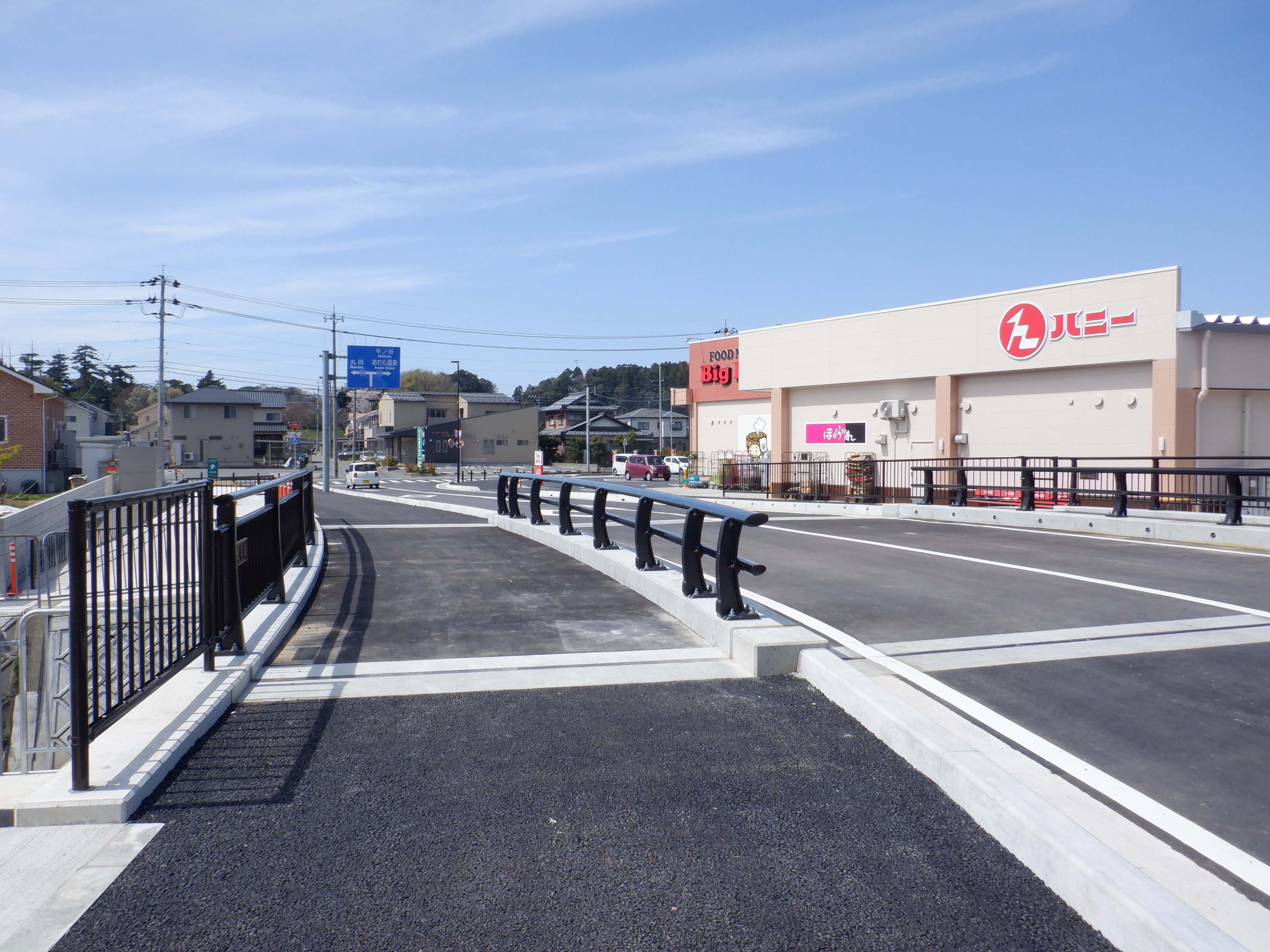 一旦元の道路に戻り、今まで通っていた道へ進みます。新しく架かった橋を見ます。