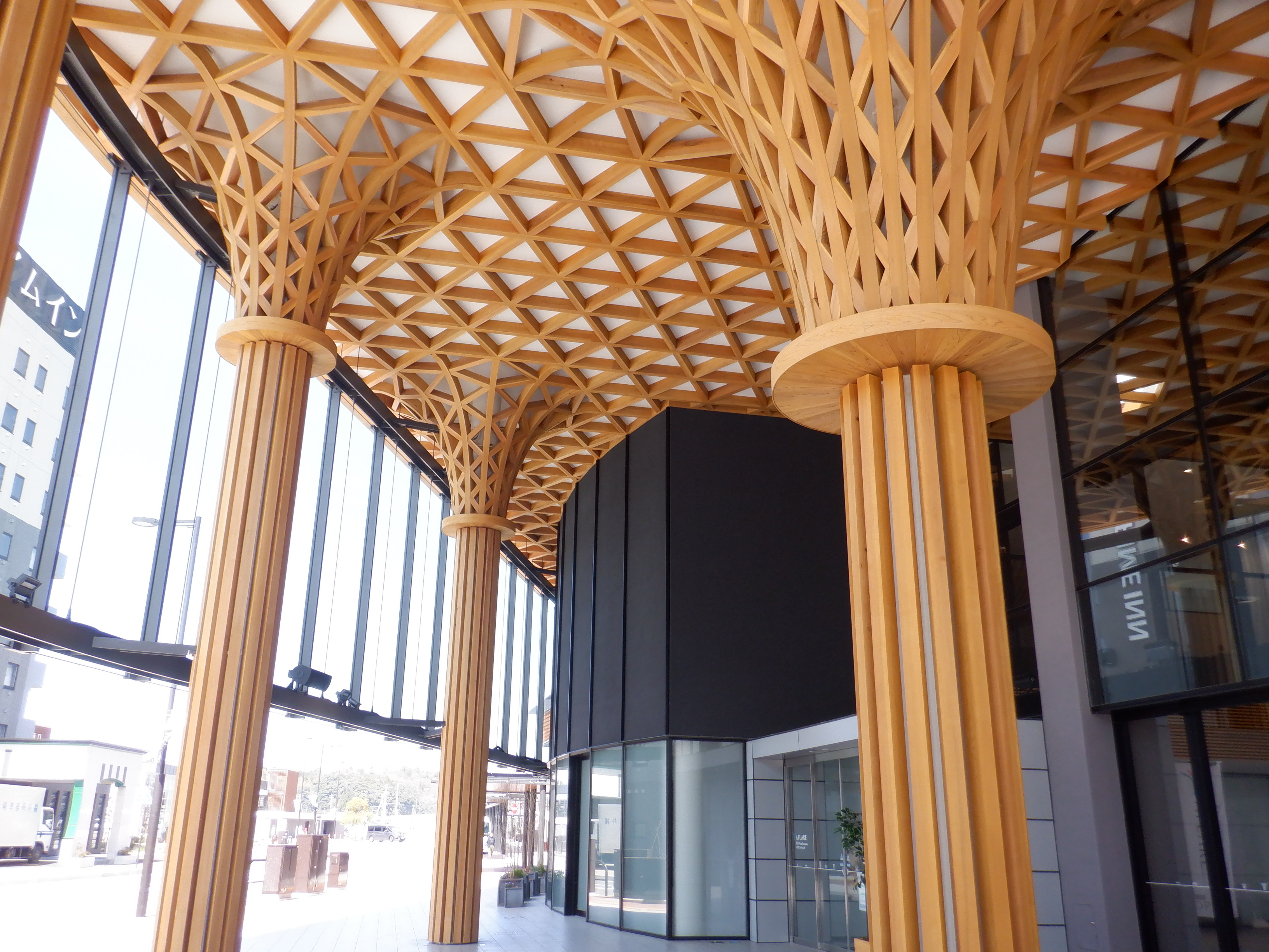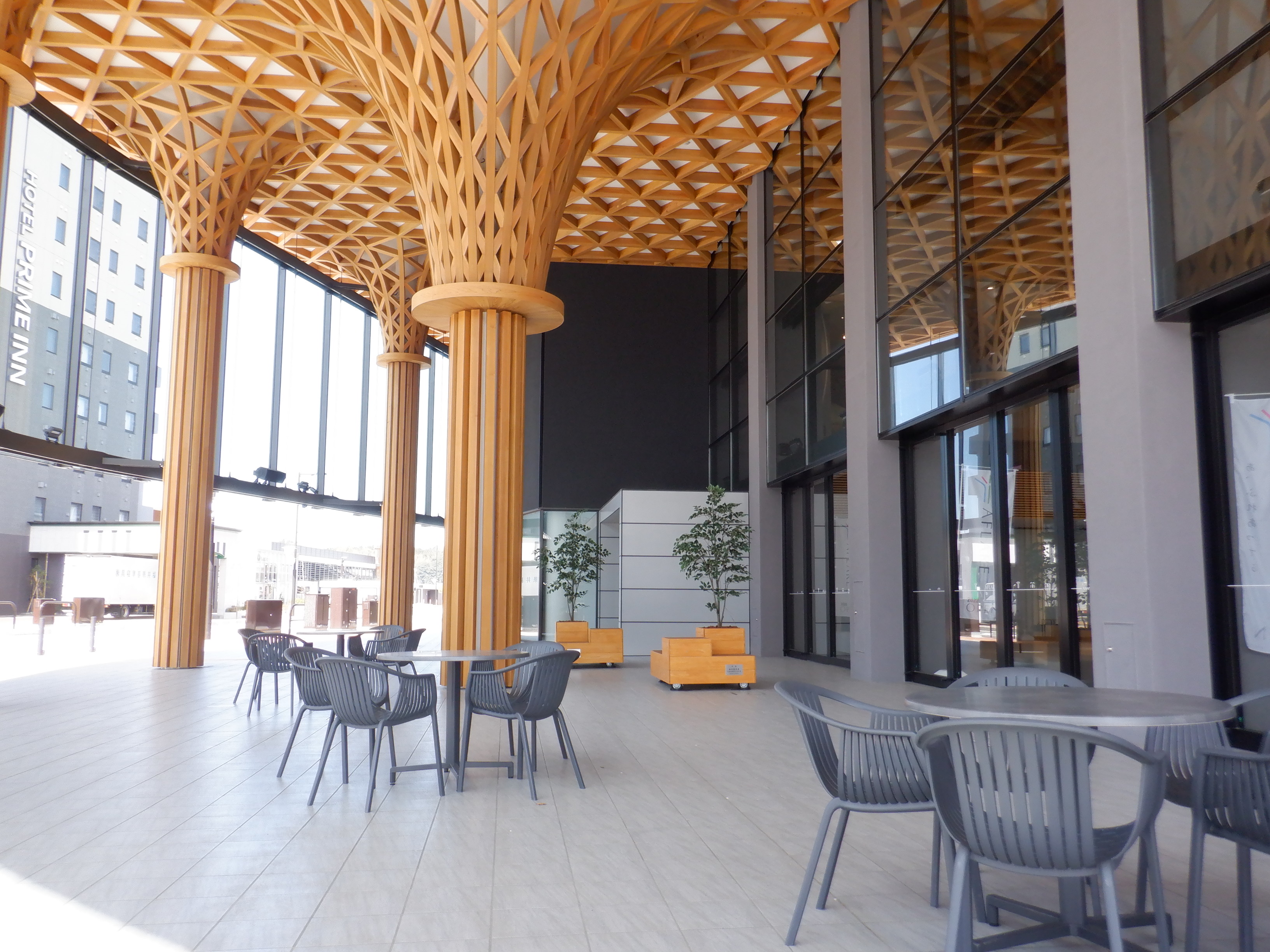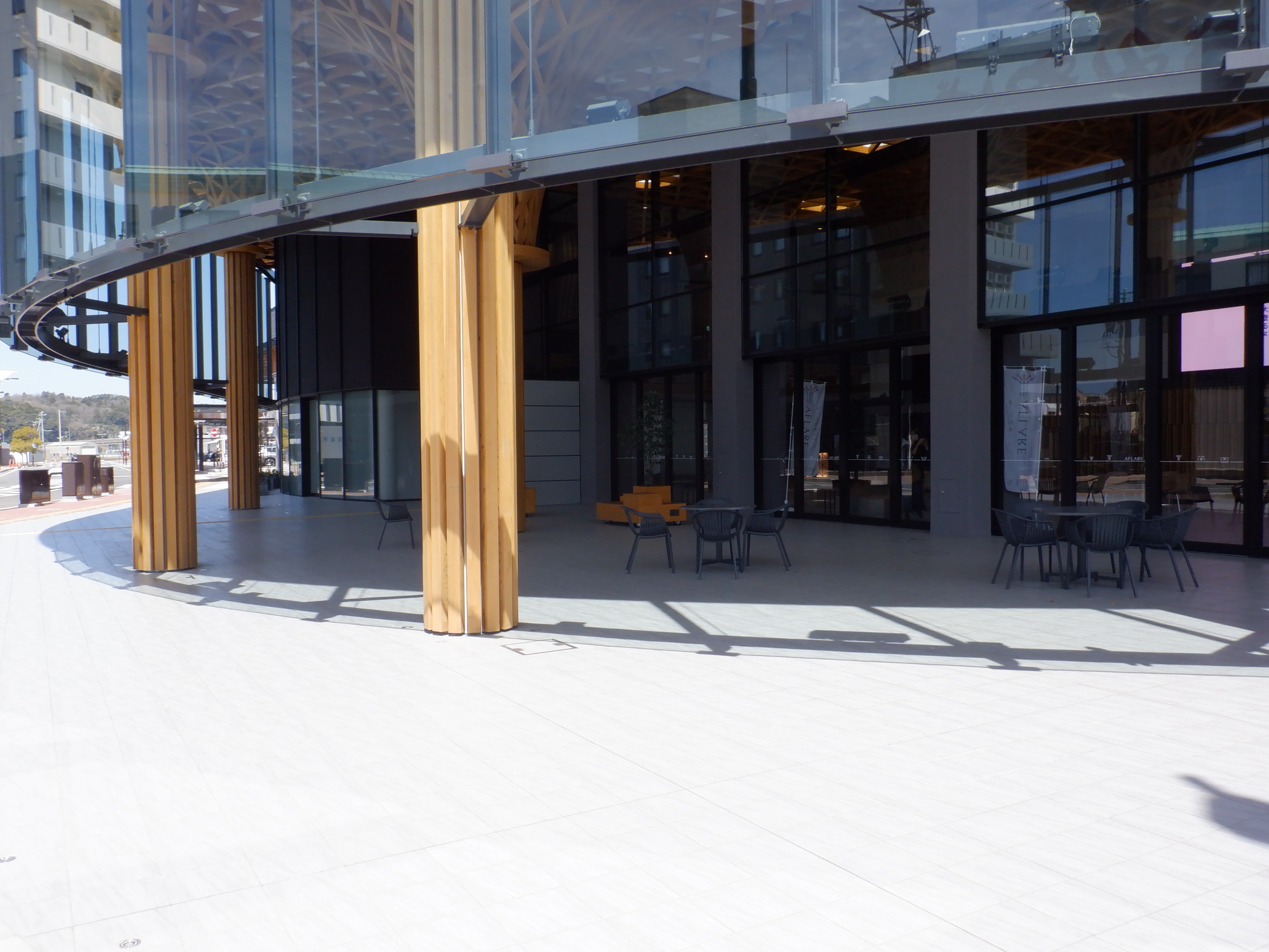 1・2番のりばから見たアフレアと通路、交通広場。