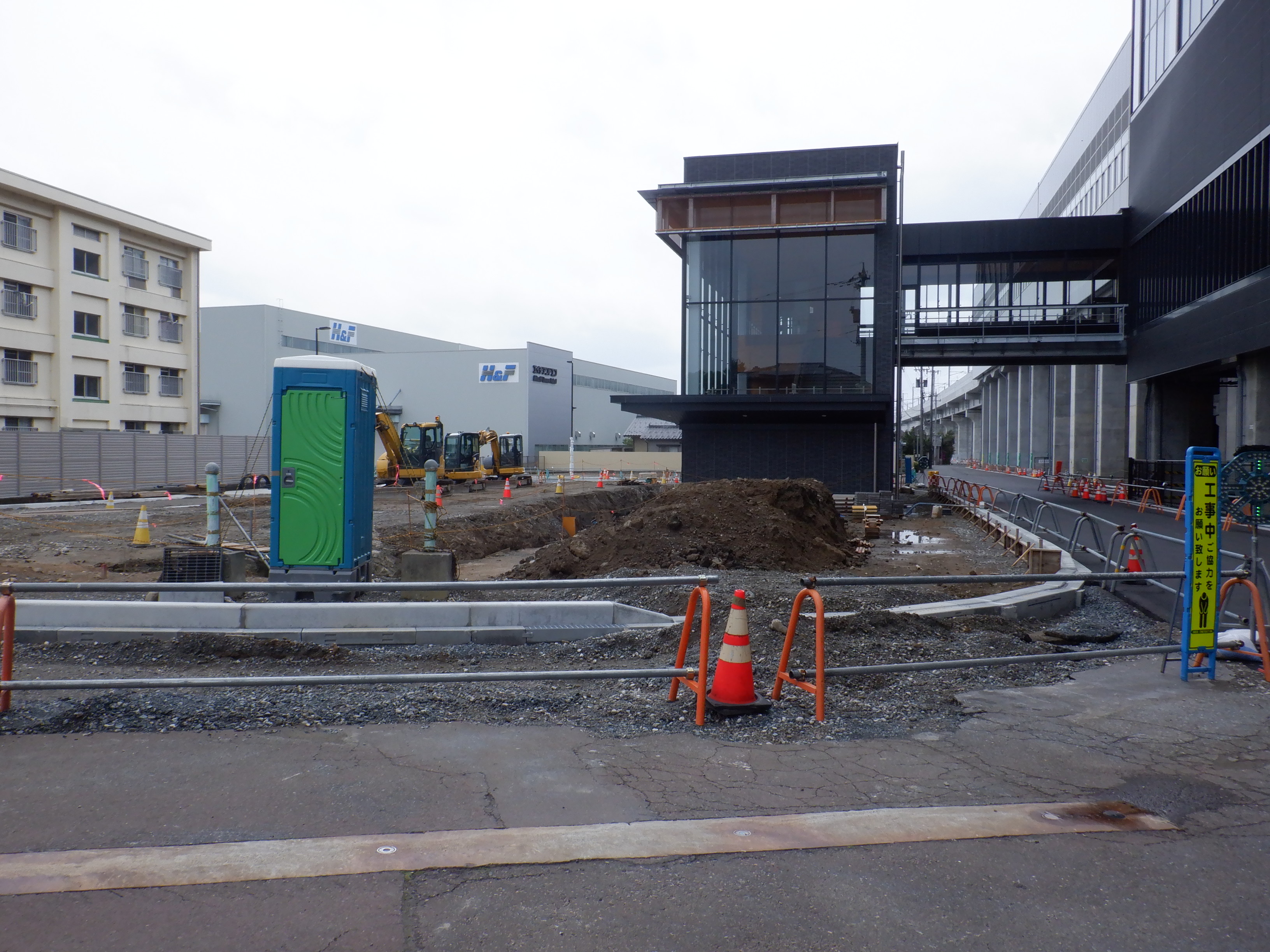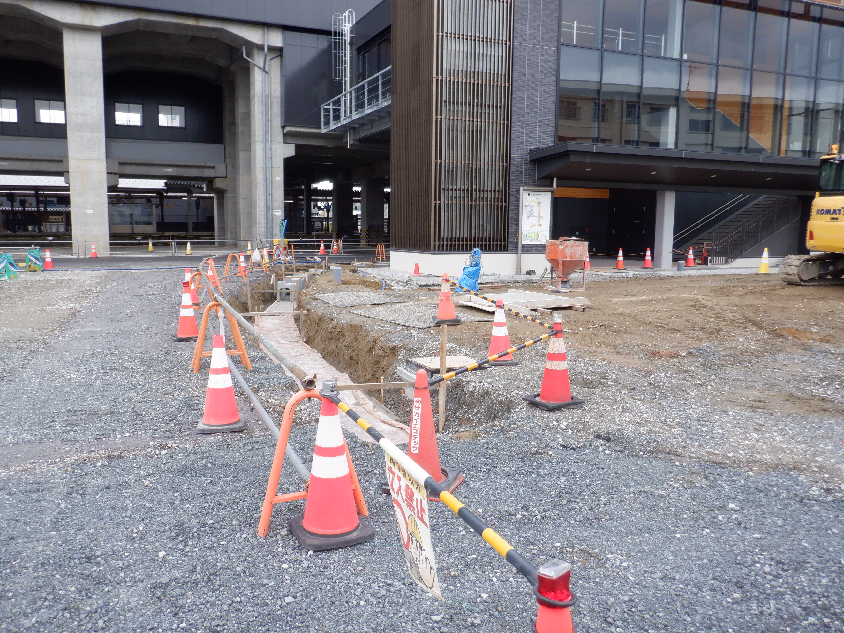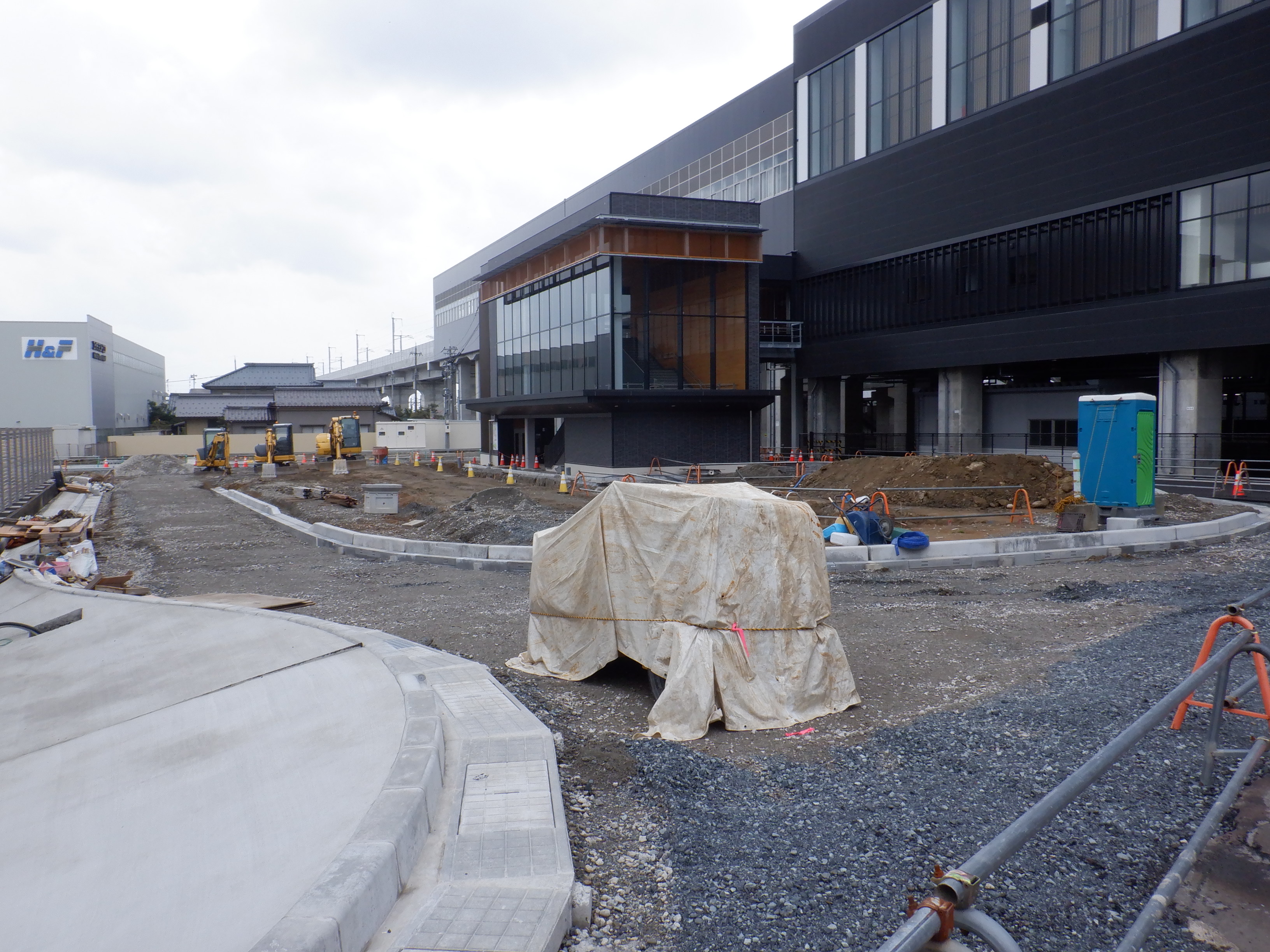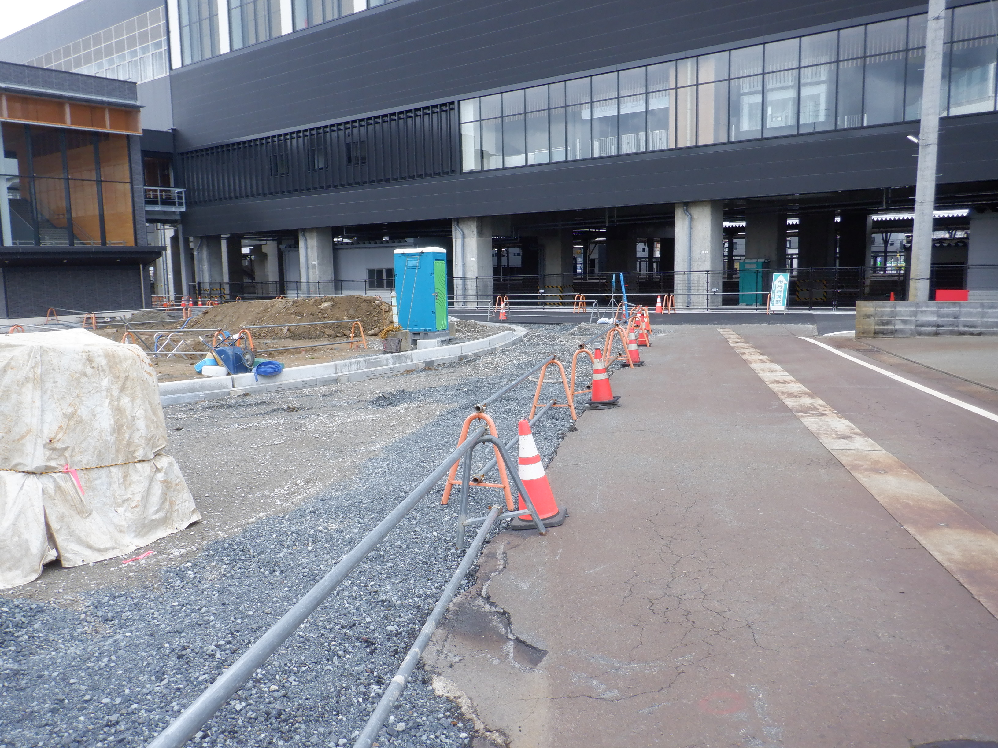 前回から大きくは変化していませんが、東口の交通広場の工事が進んでいます。