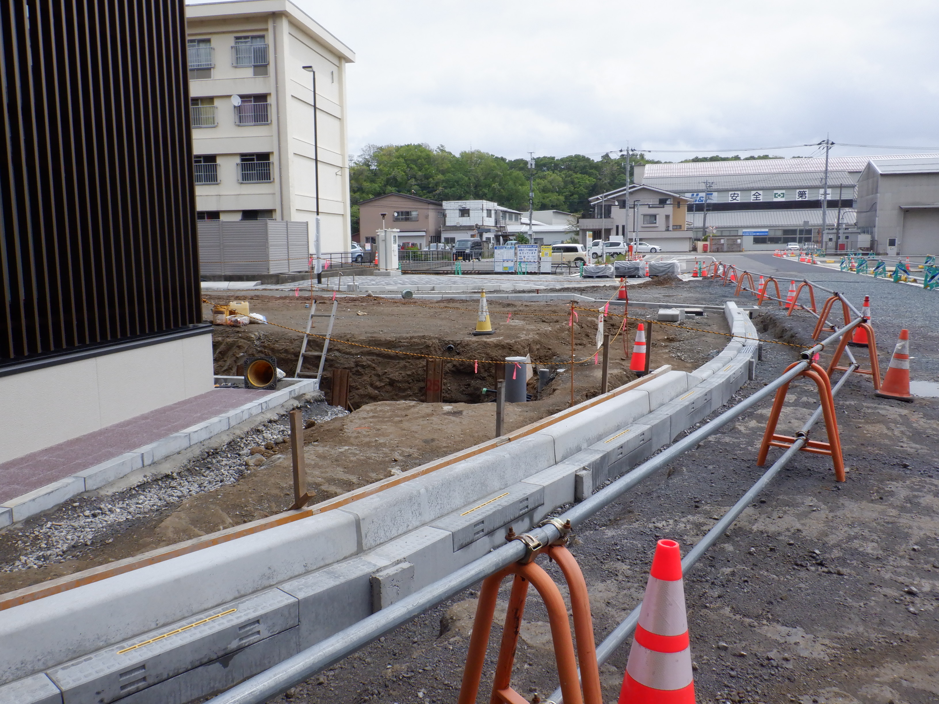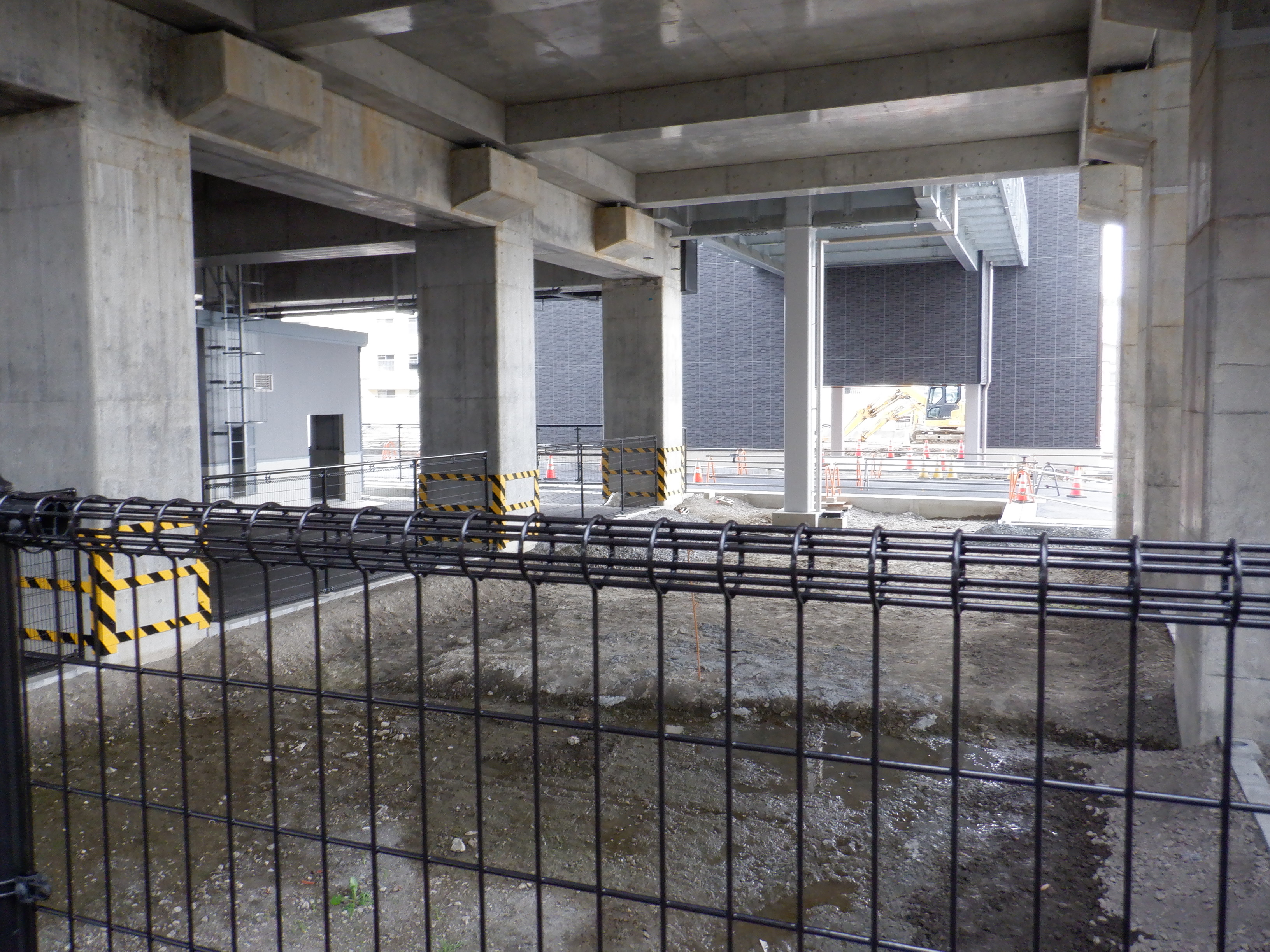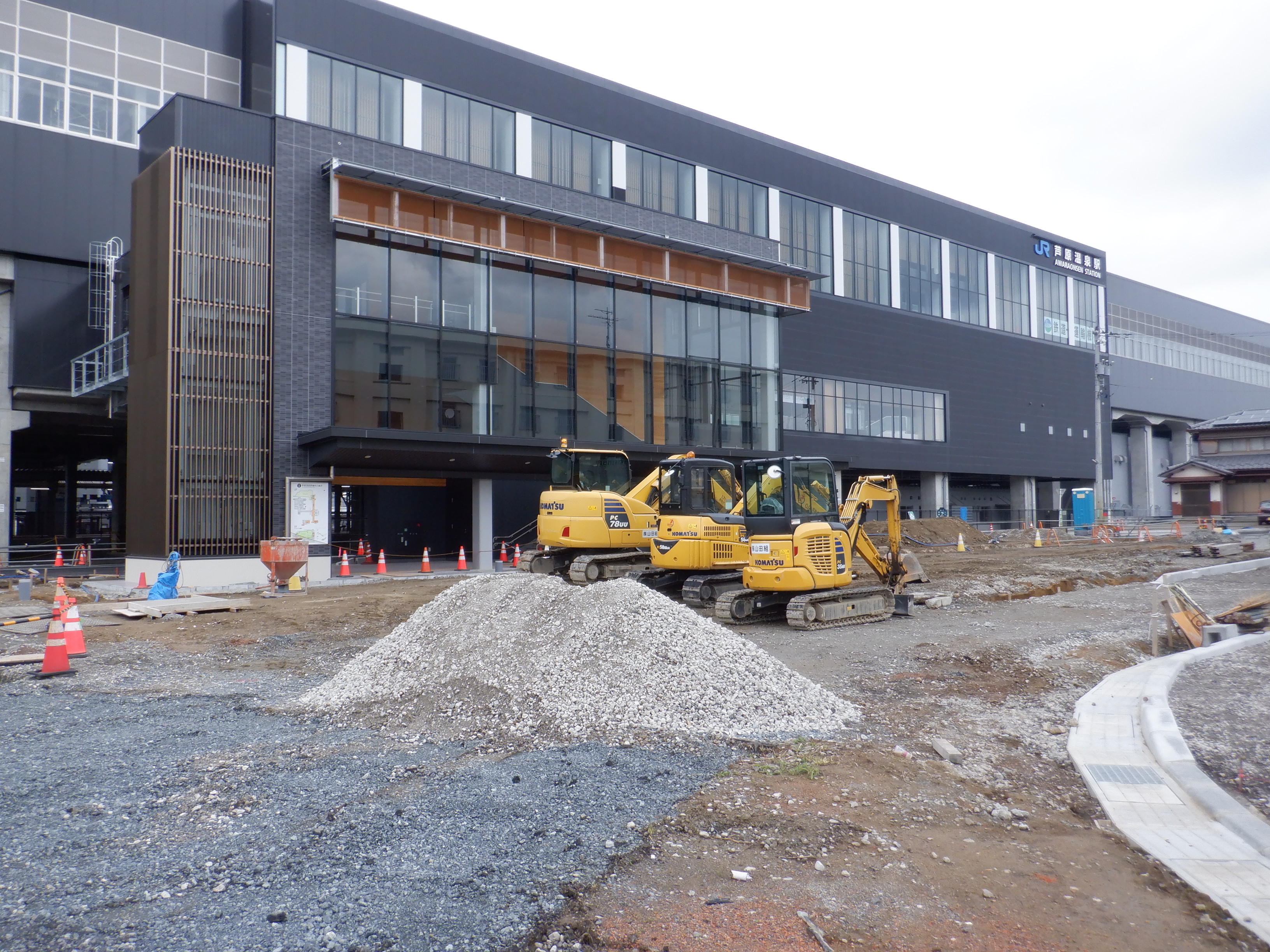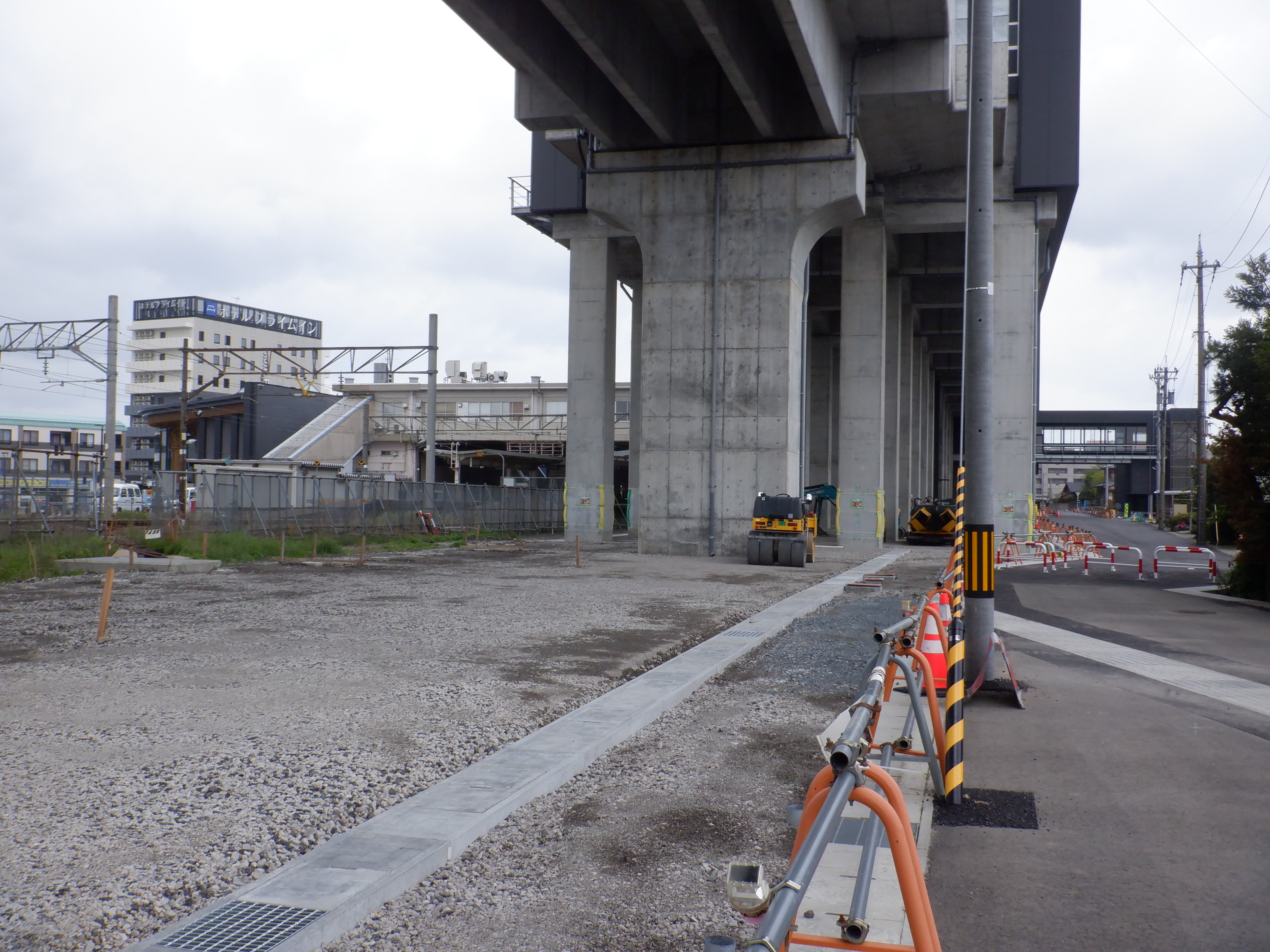 前回から大きくは変化していませんが、東口の交通広場の工事が進んでいます。
