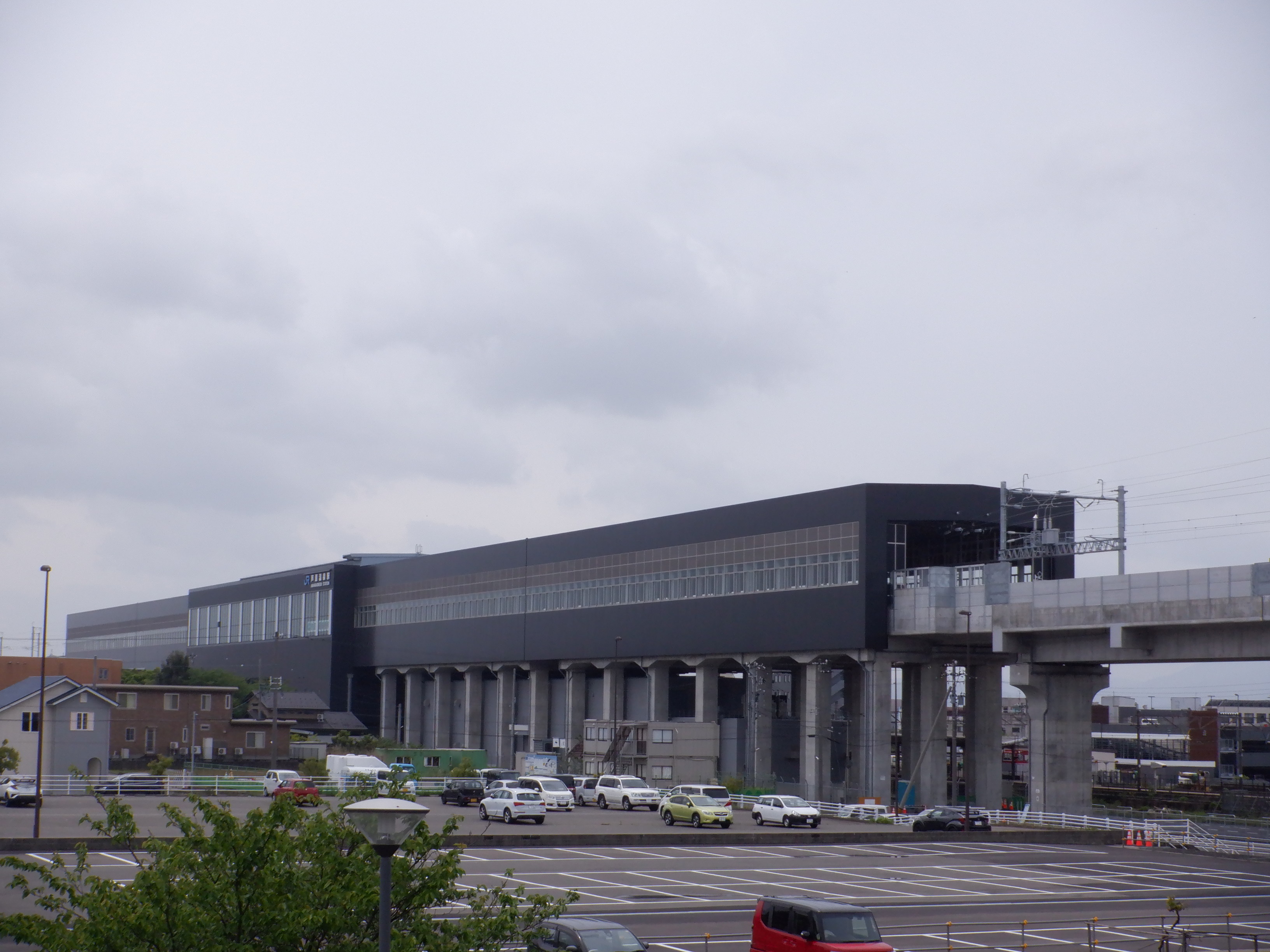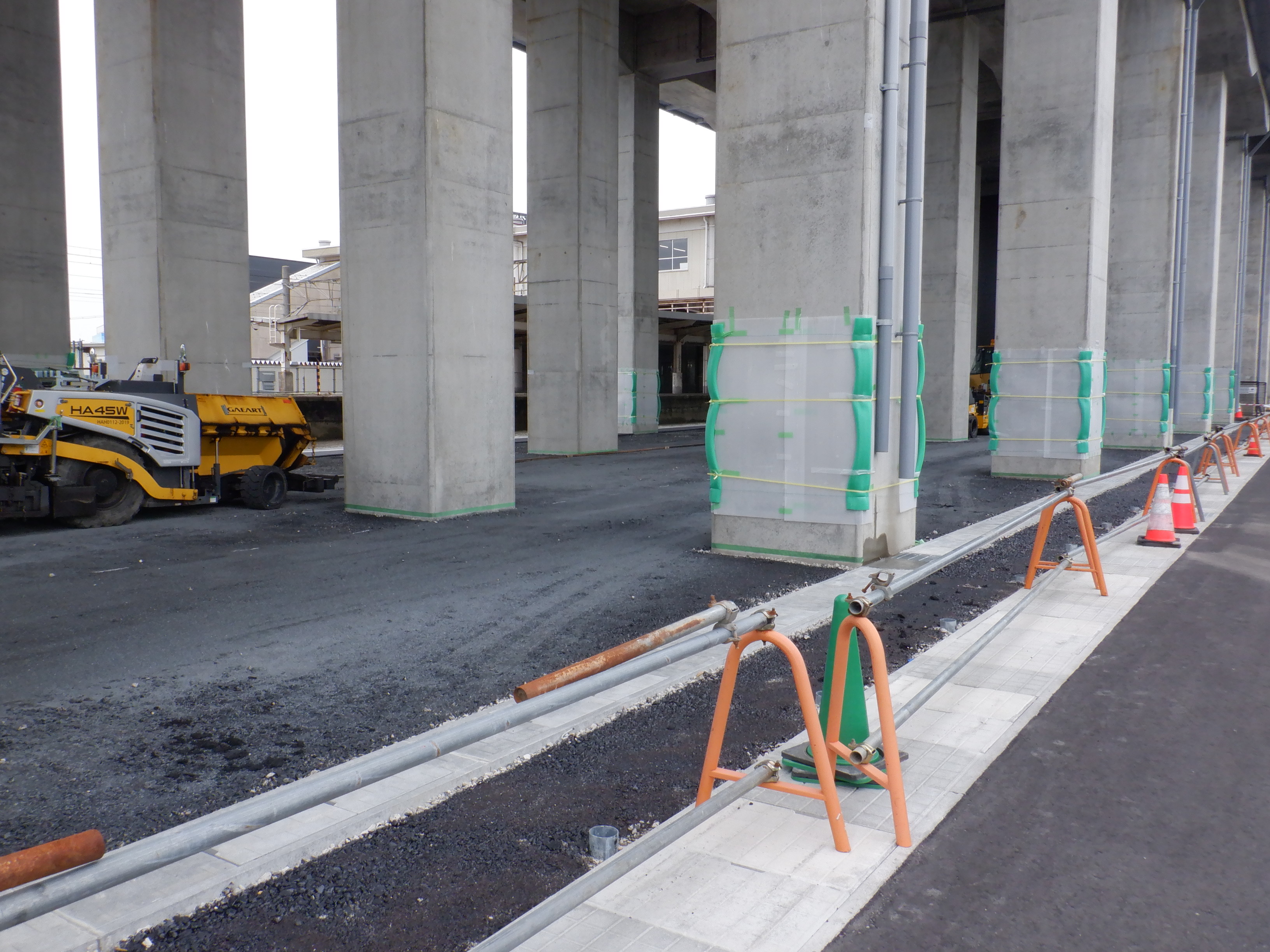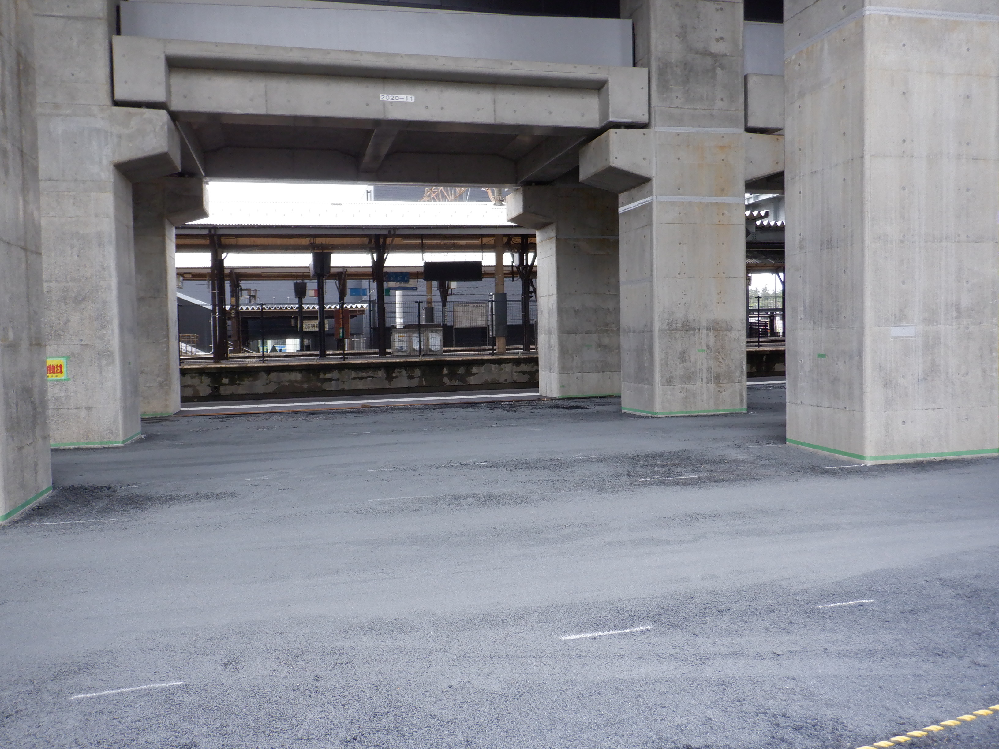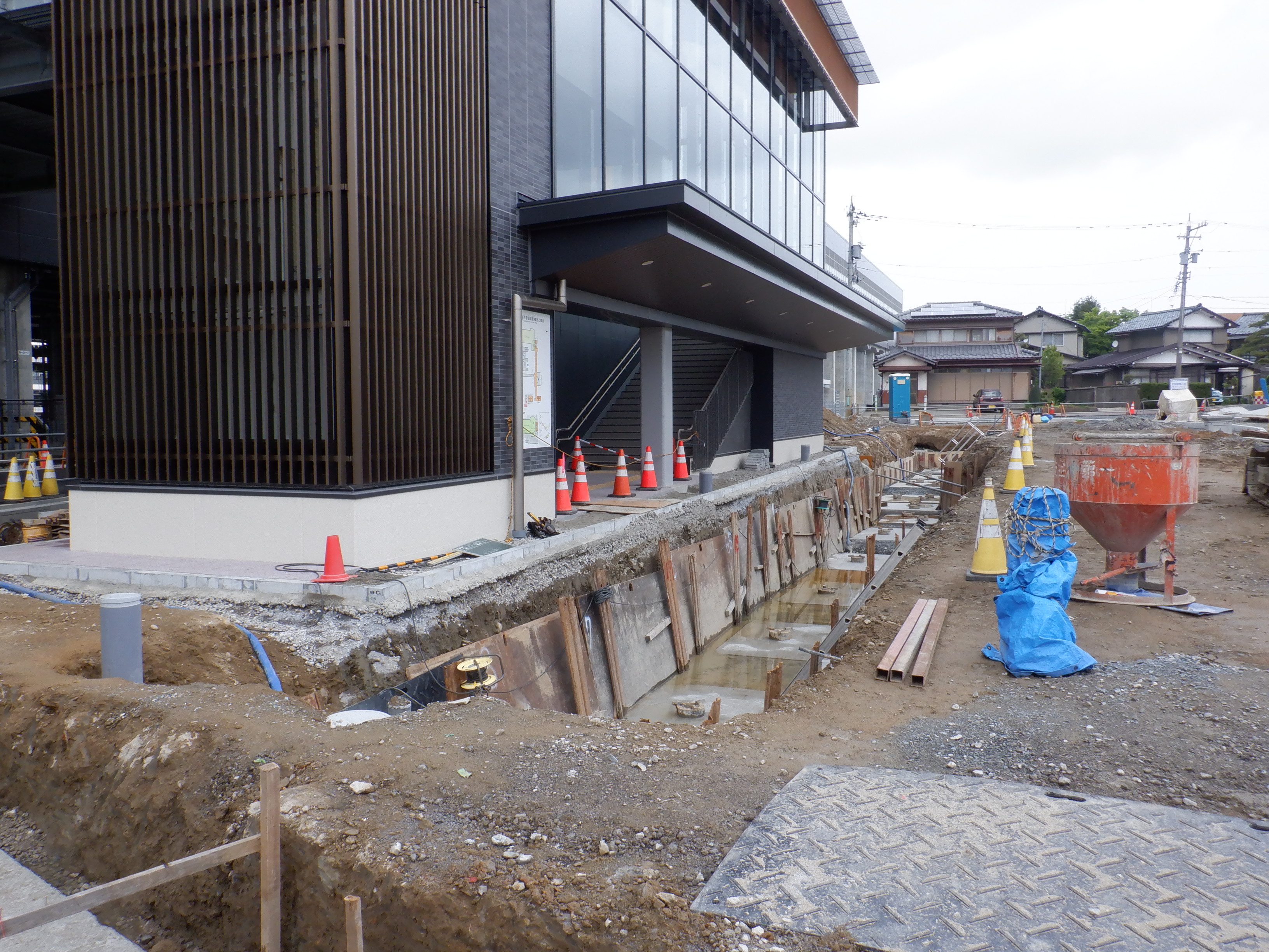 前回から大きくは変化していませんが、東口の交通広場の工事が進んでいます。