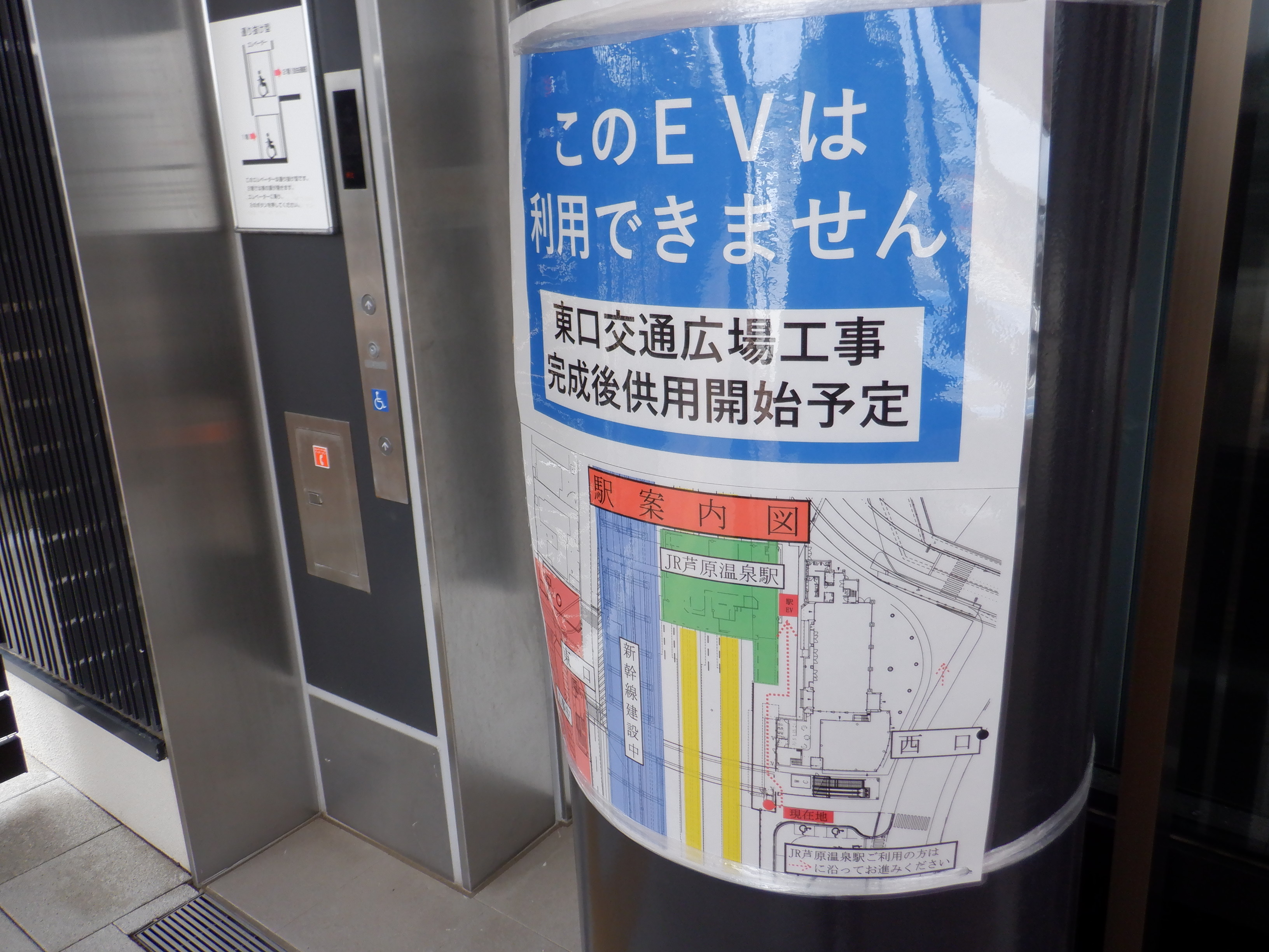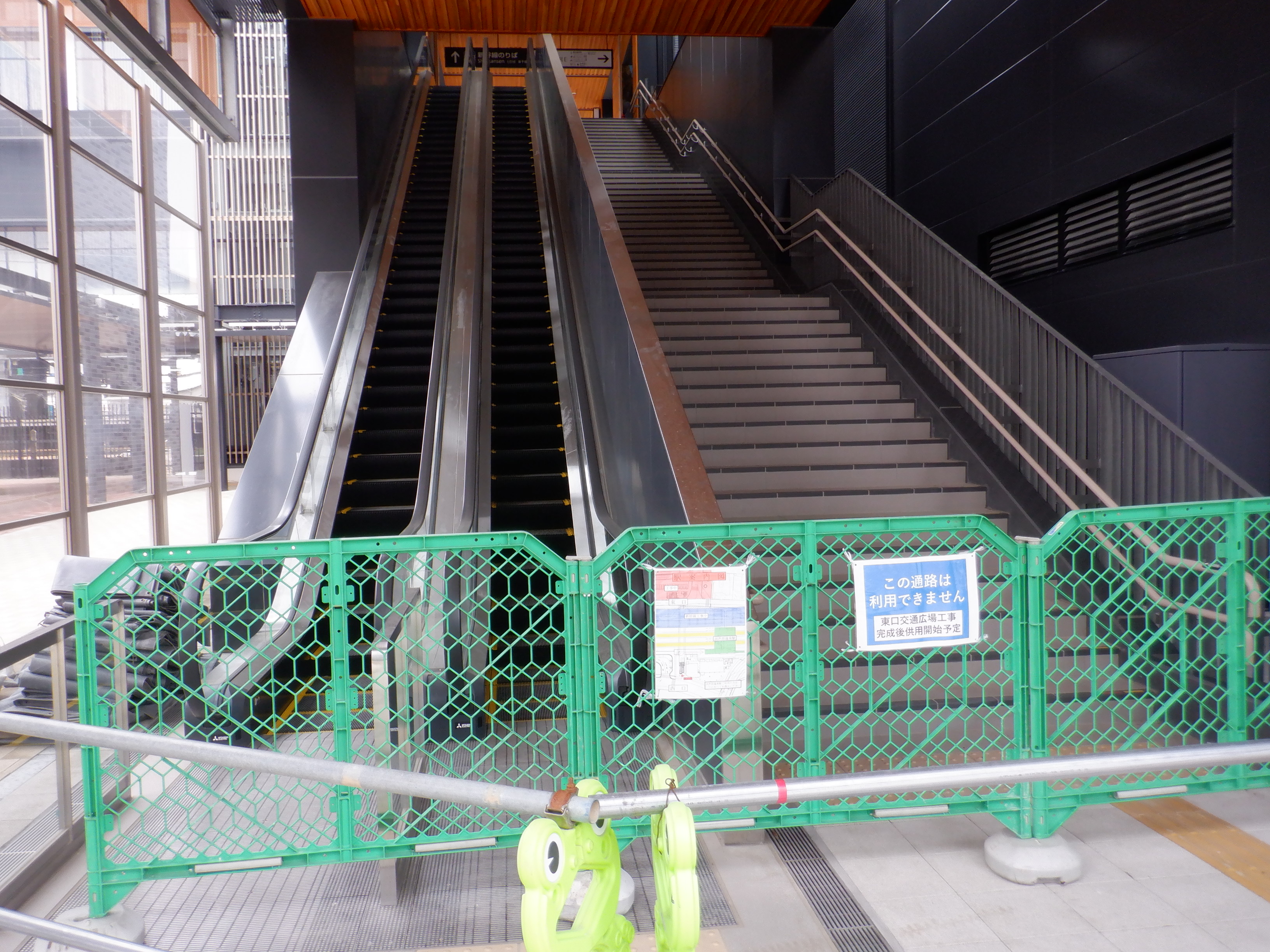 自由通路のエレベーターは東口交通広場供用開始後の供用となりました。
