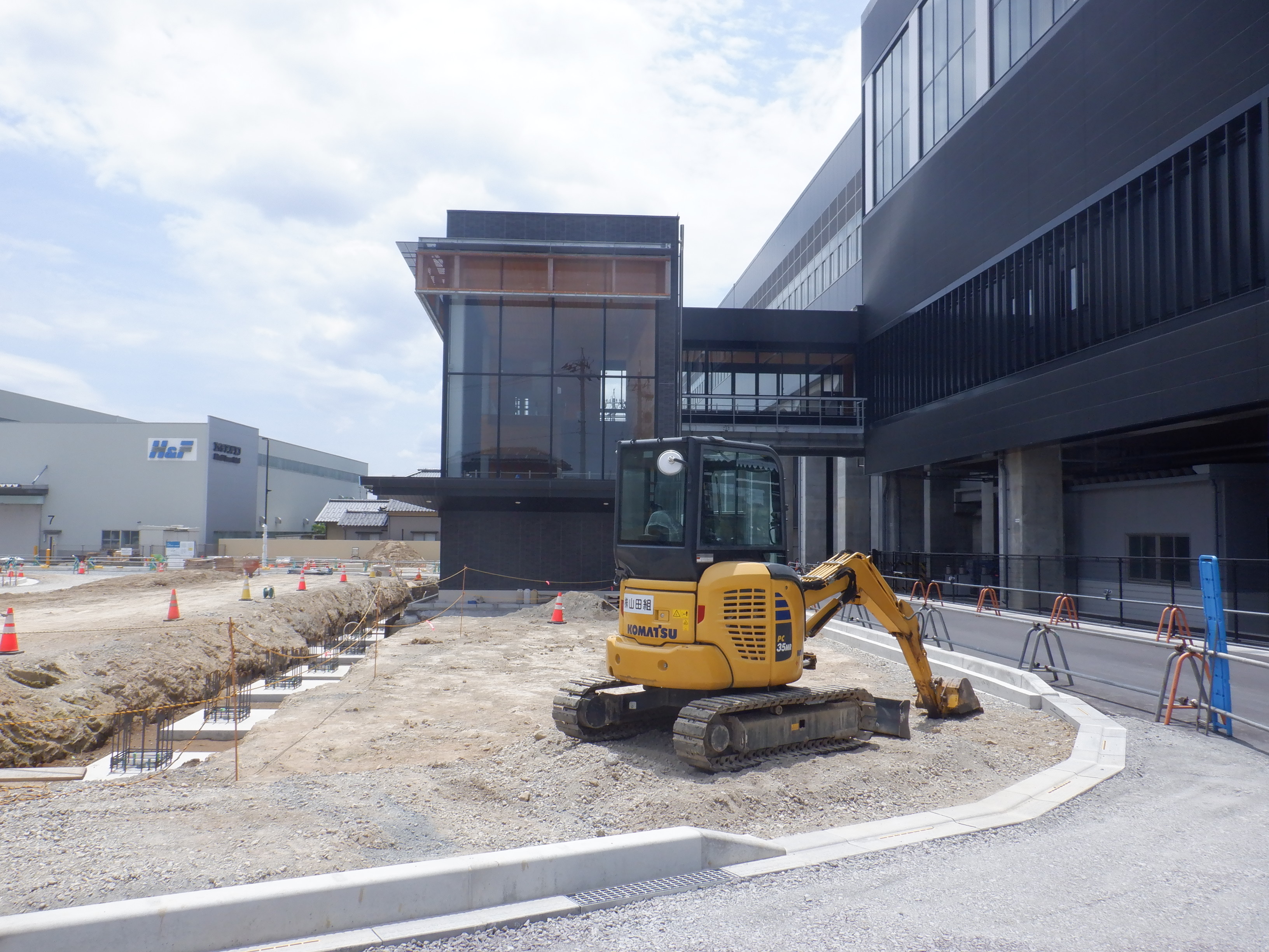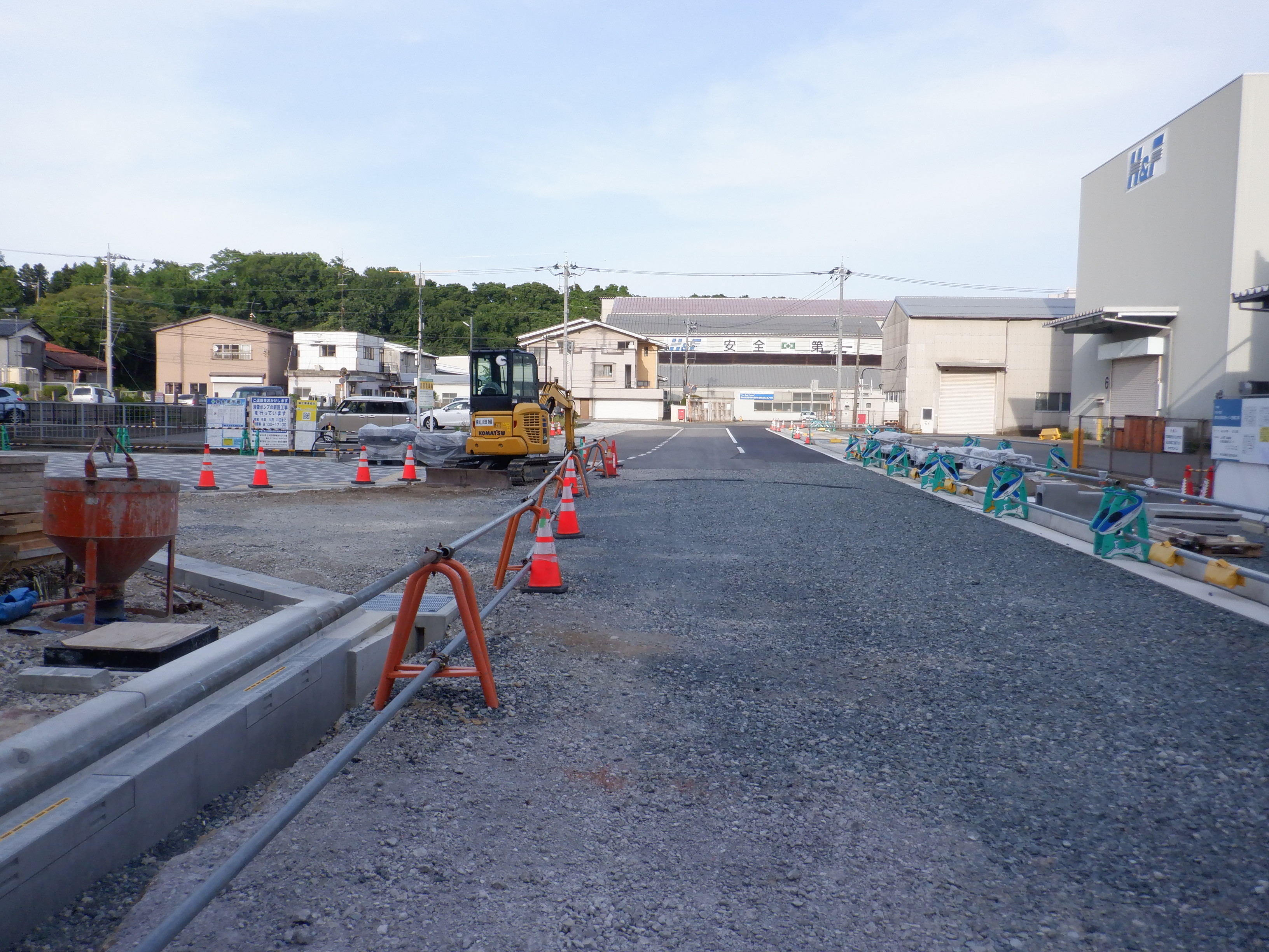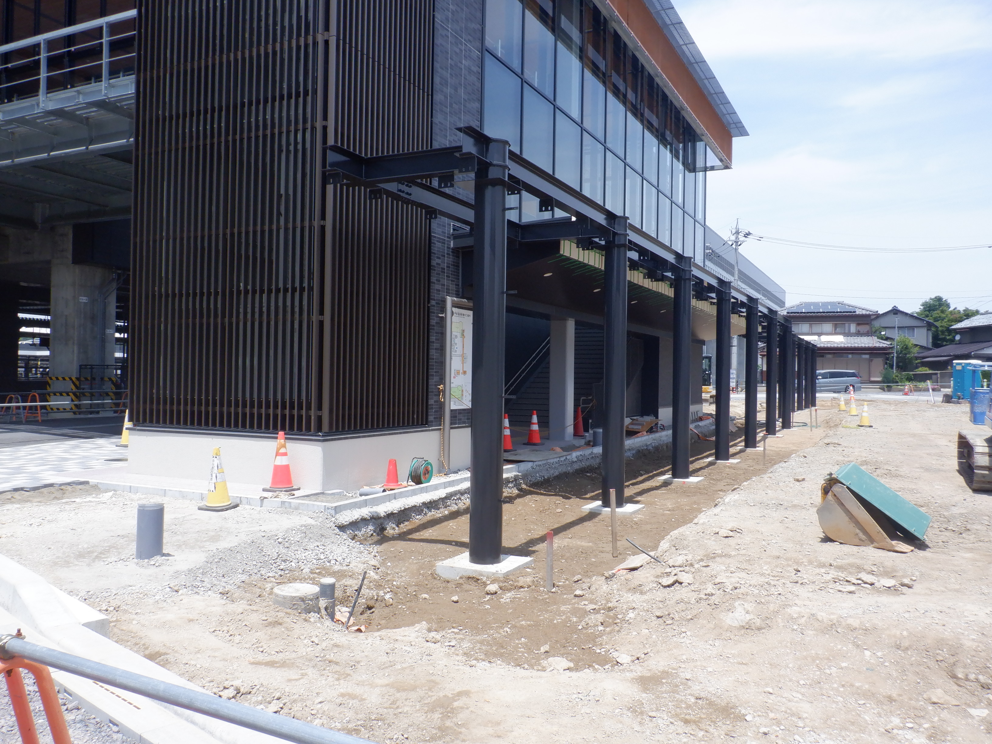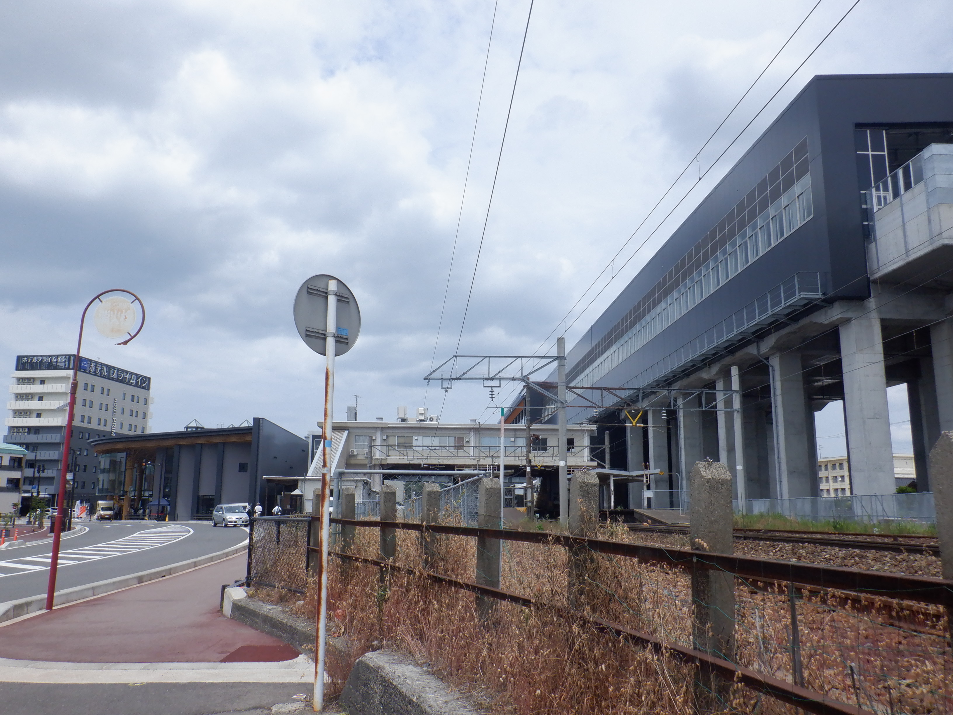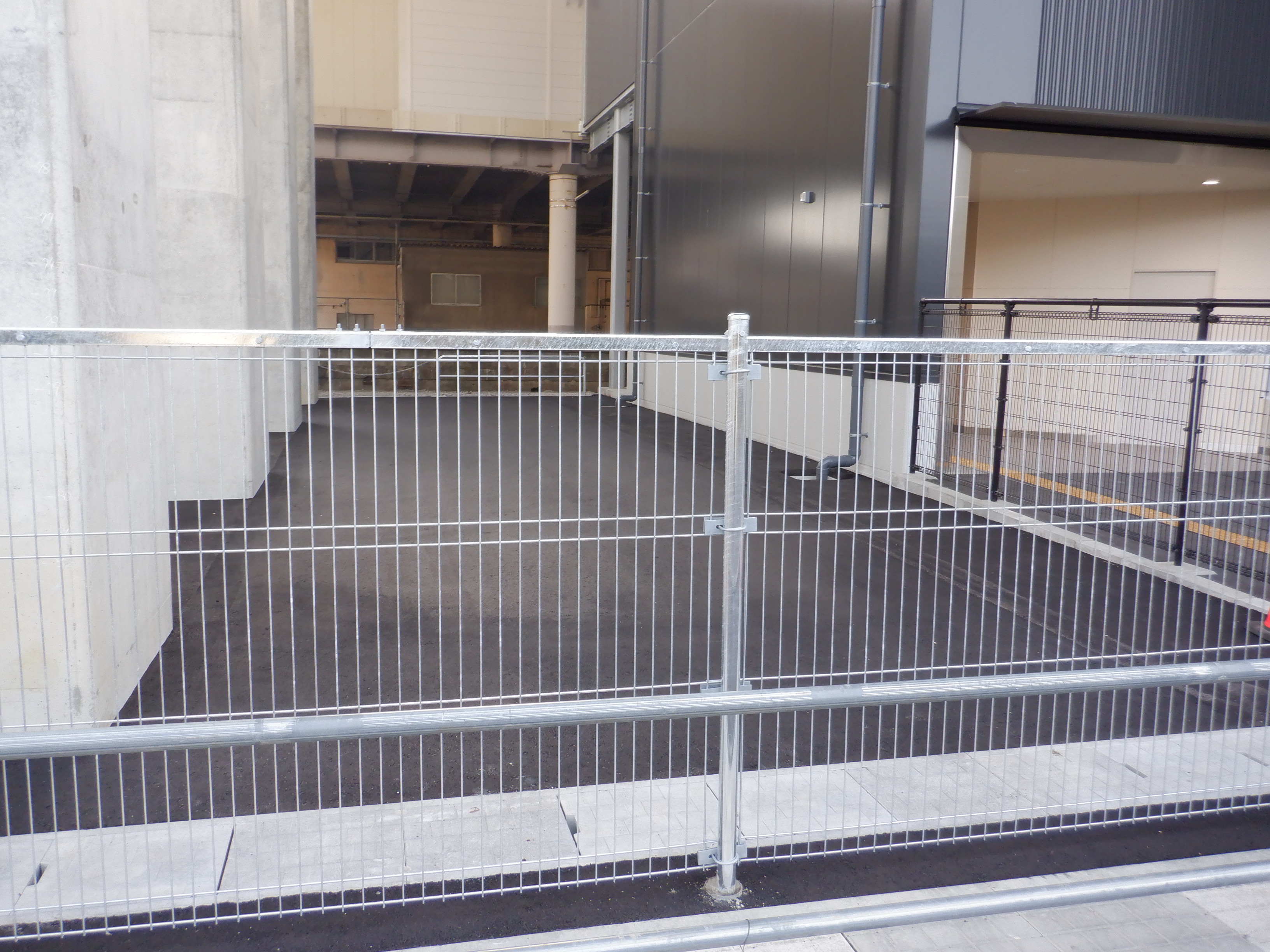 新しい道路から西口へ。駅前の新しいホテルの駐車場もできていました。