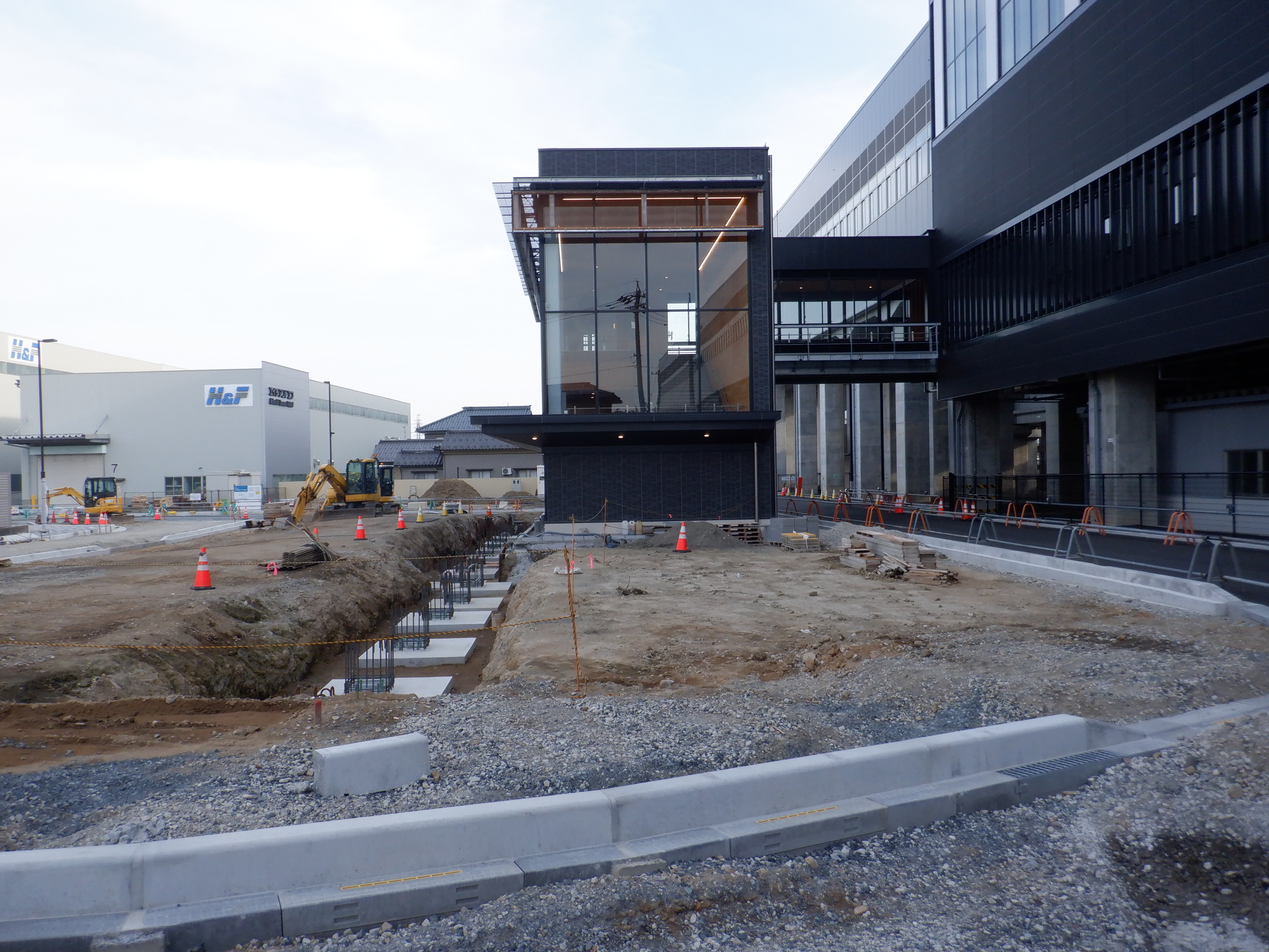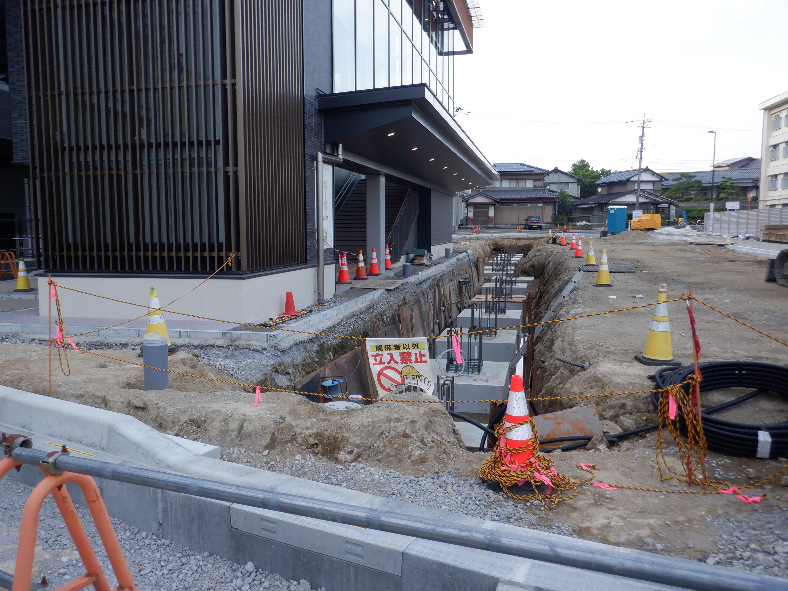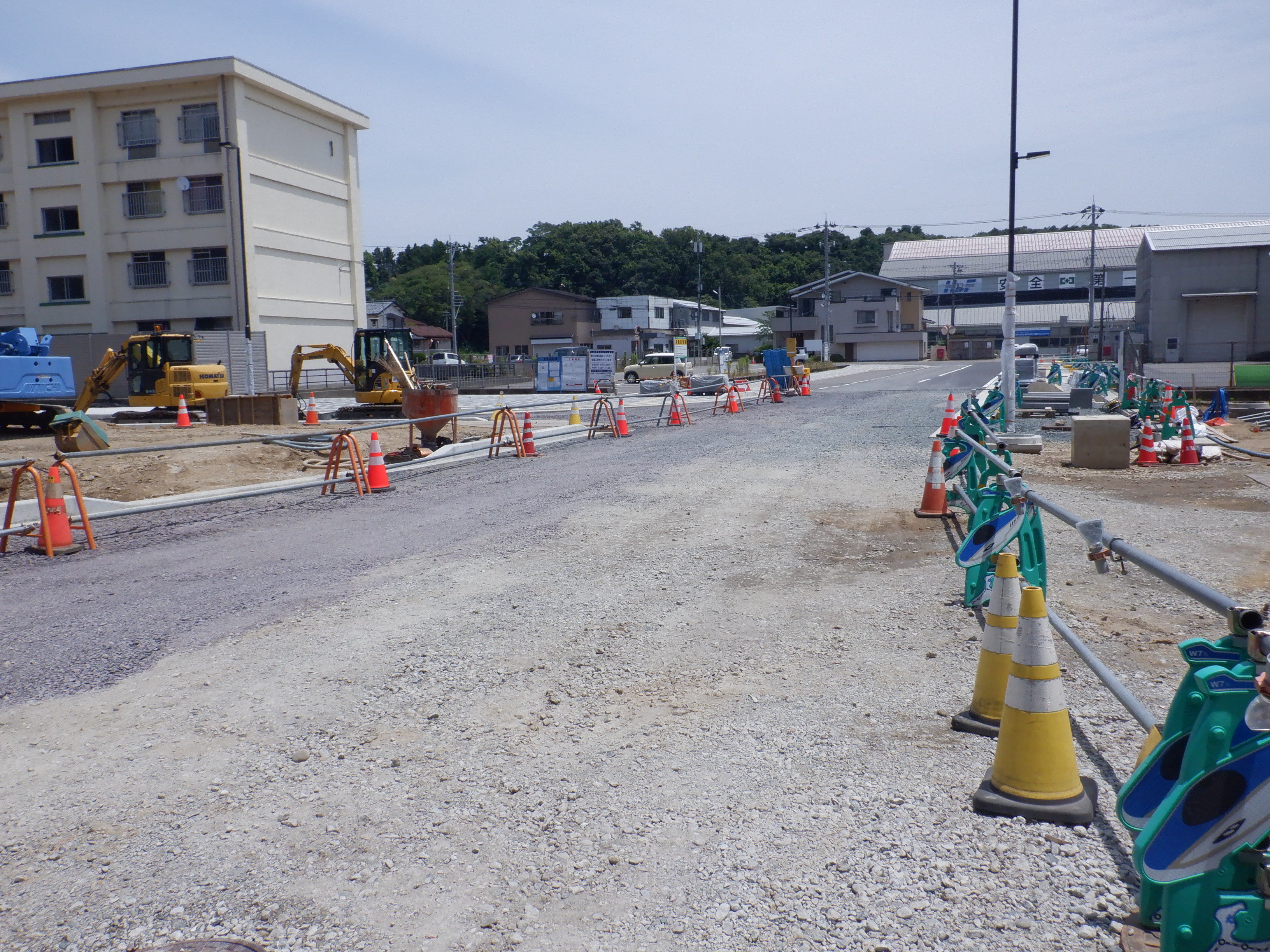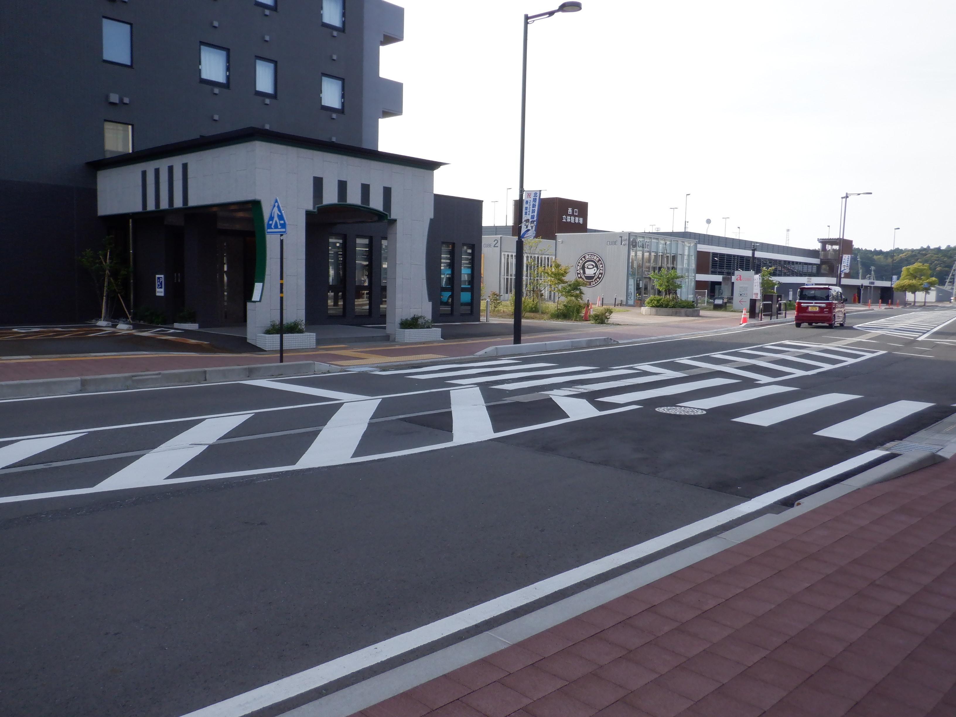 新しい道路から西口へ。駅前の新しいホテルの駐車場もできていました。