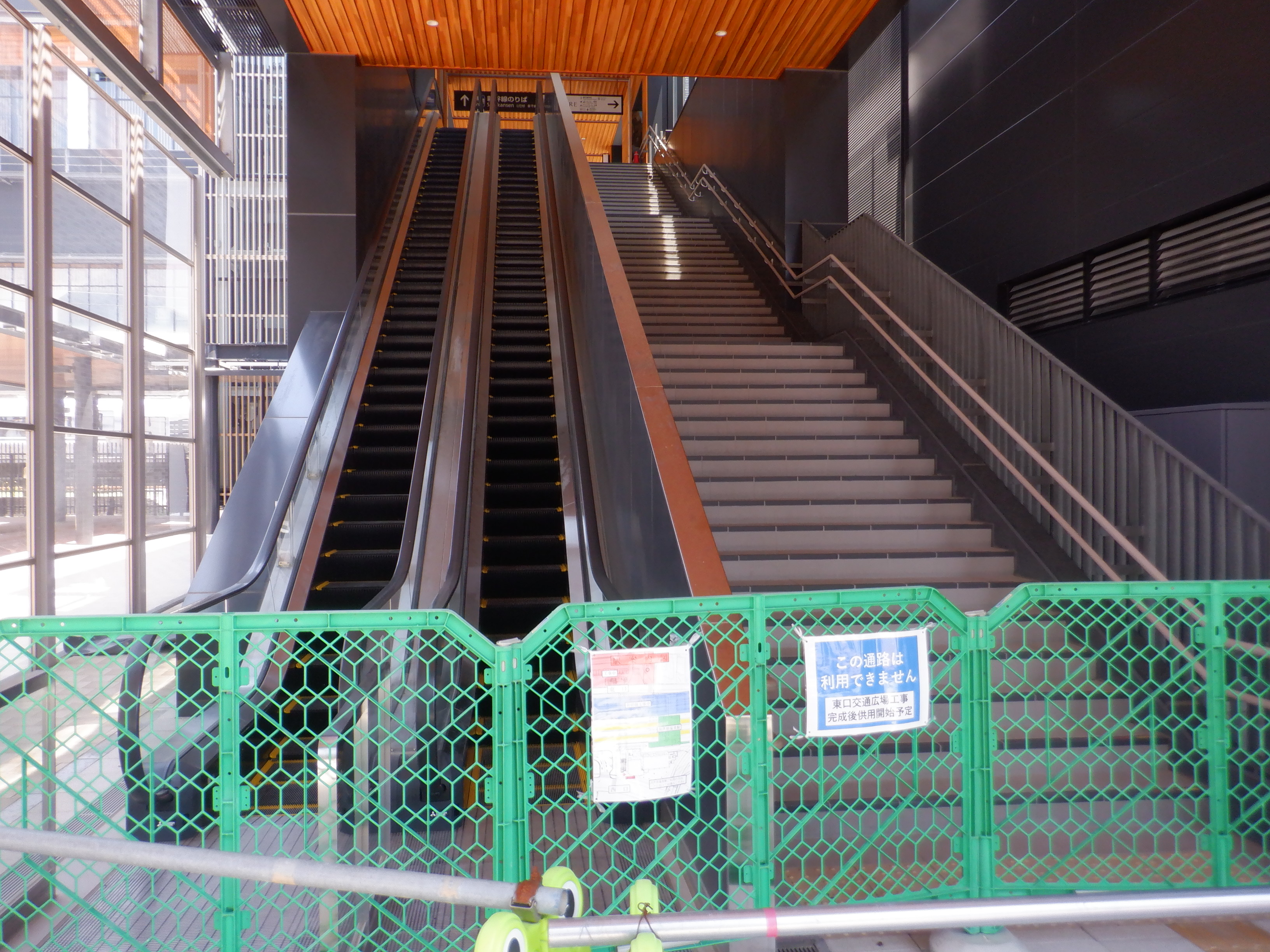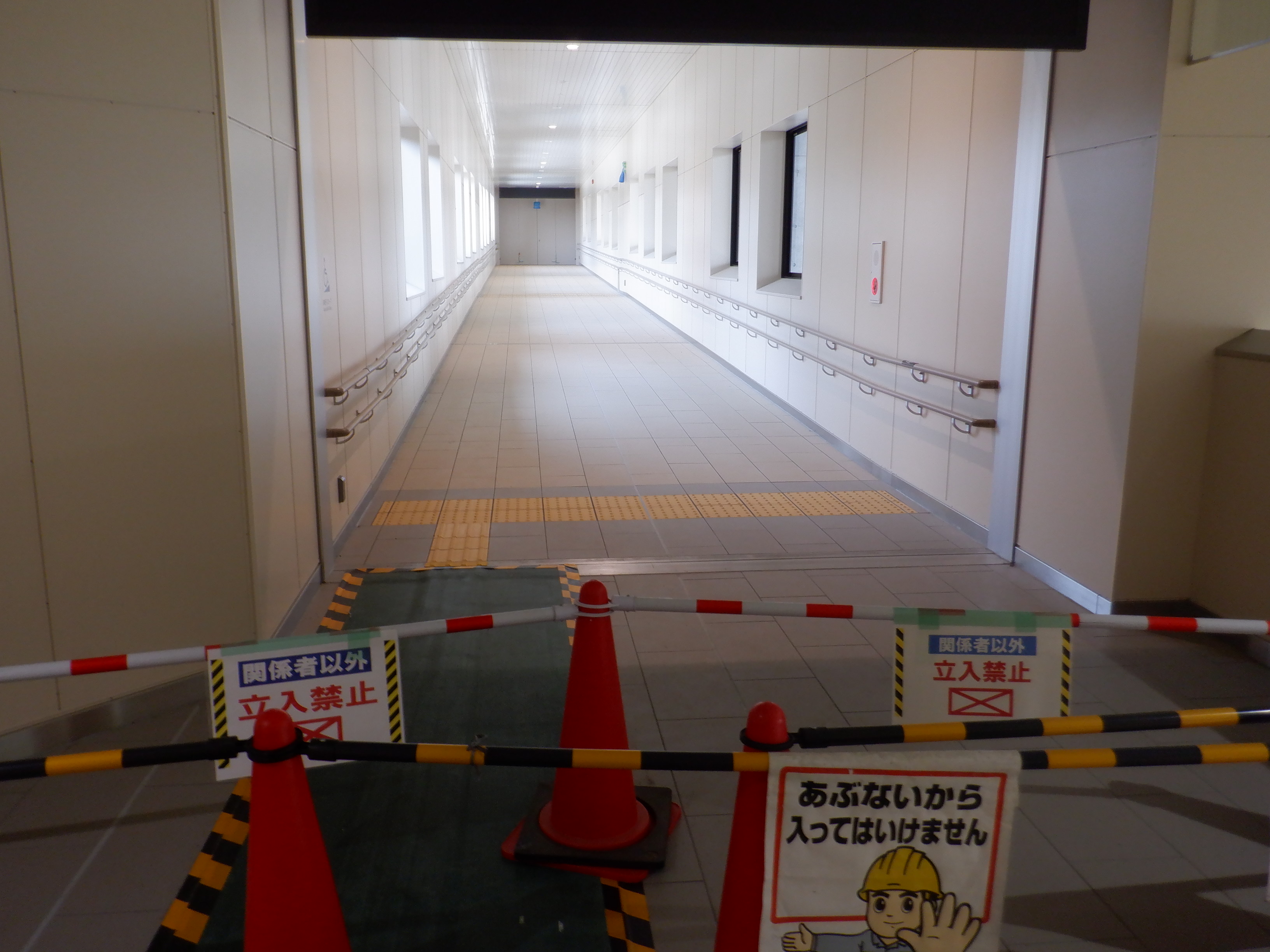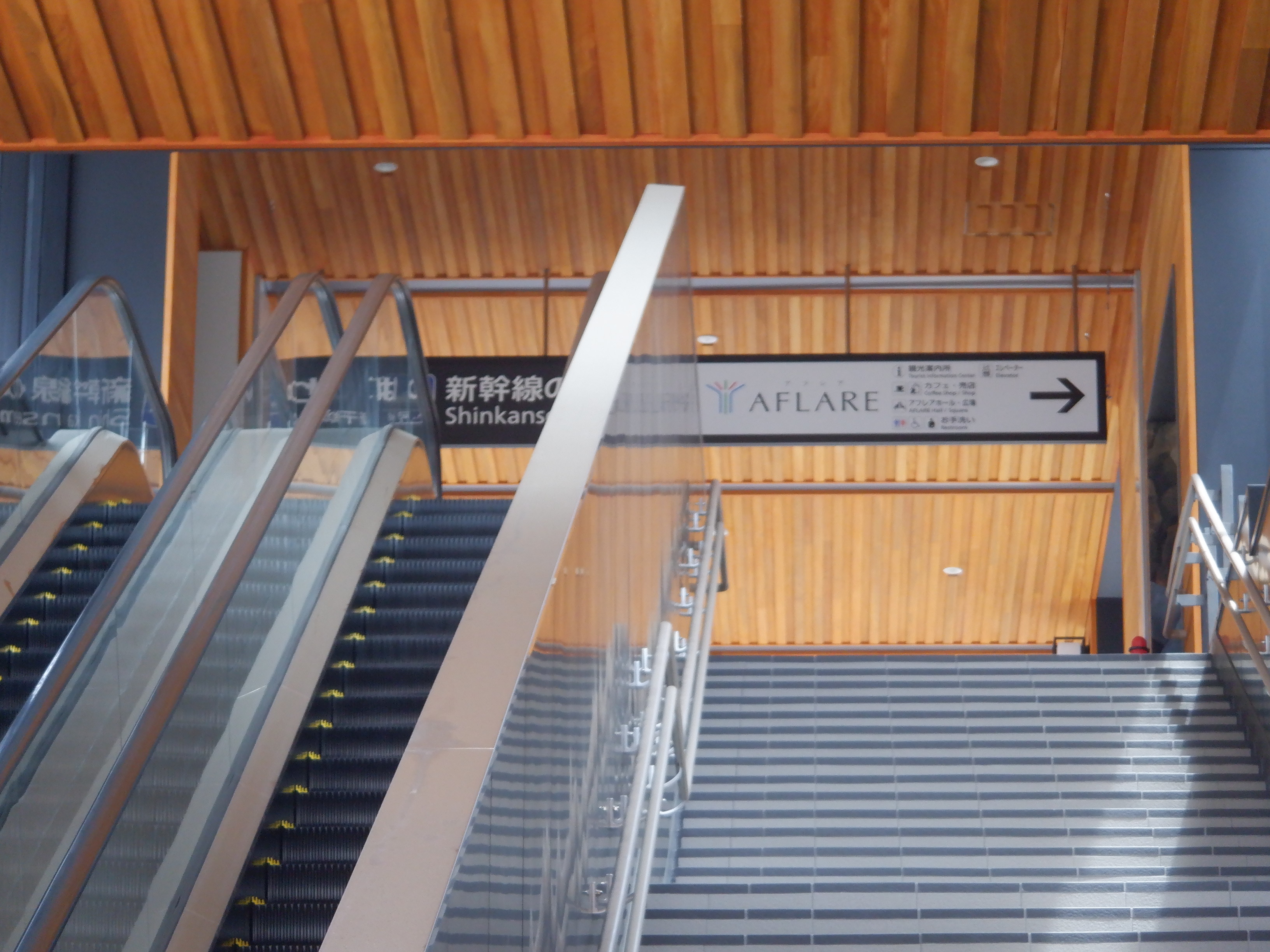 東口へ向かうところから見た新幹線のりばへの連絡通路。