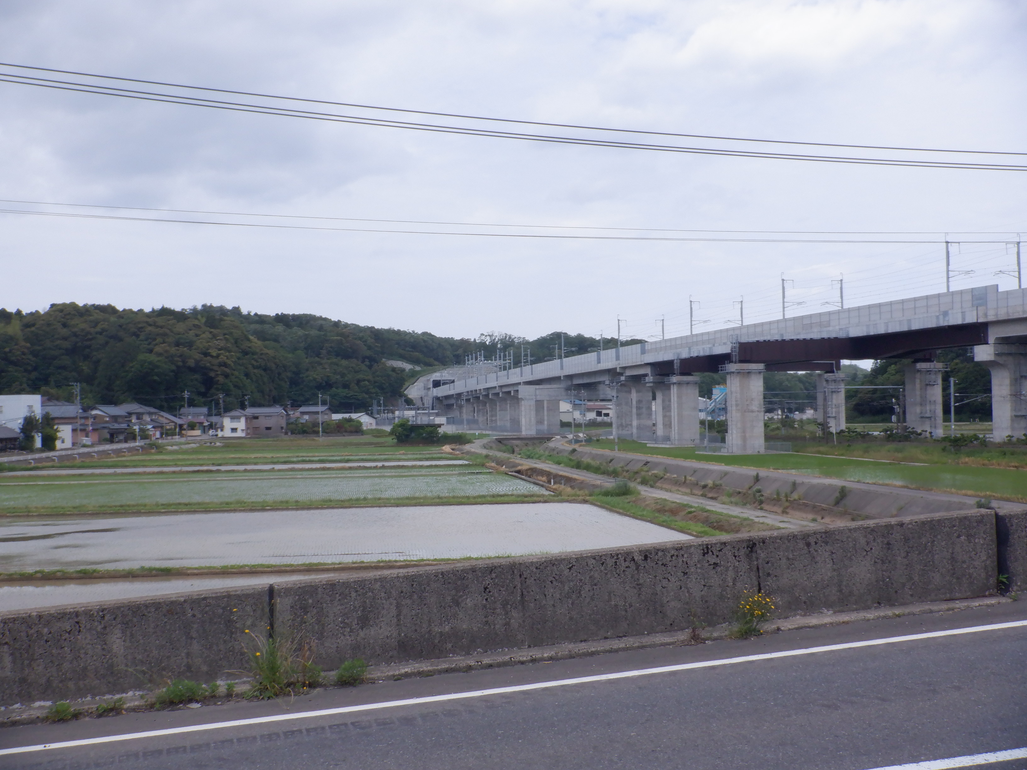 東口の交通広場建設中のところから見た細呂木駅側。今回はこの先は進みません。