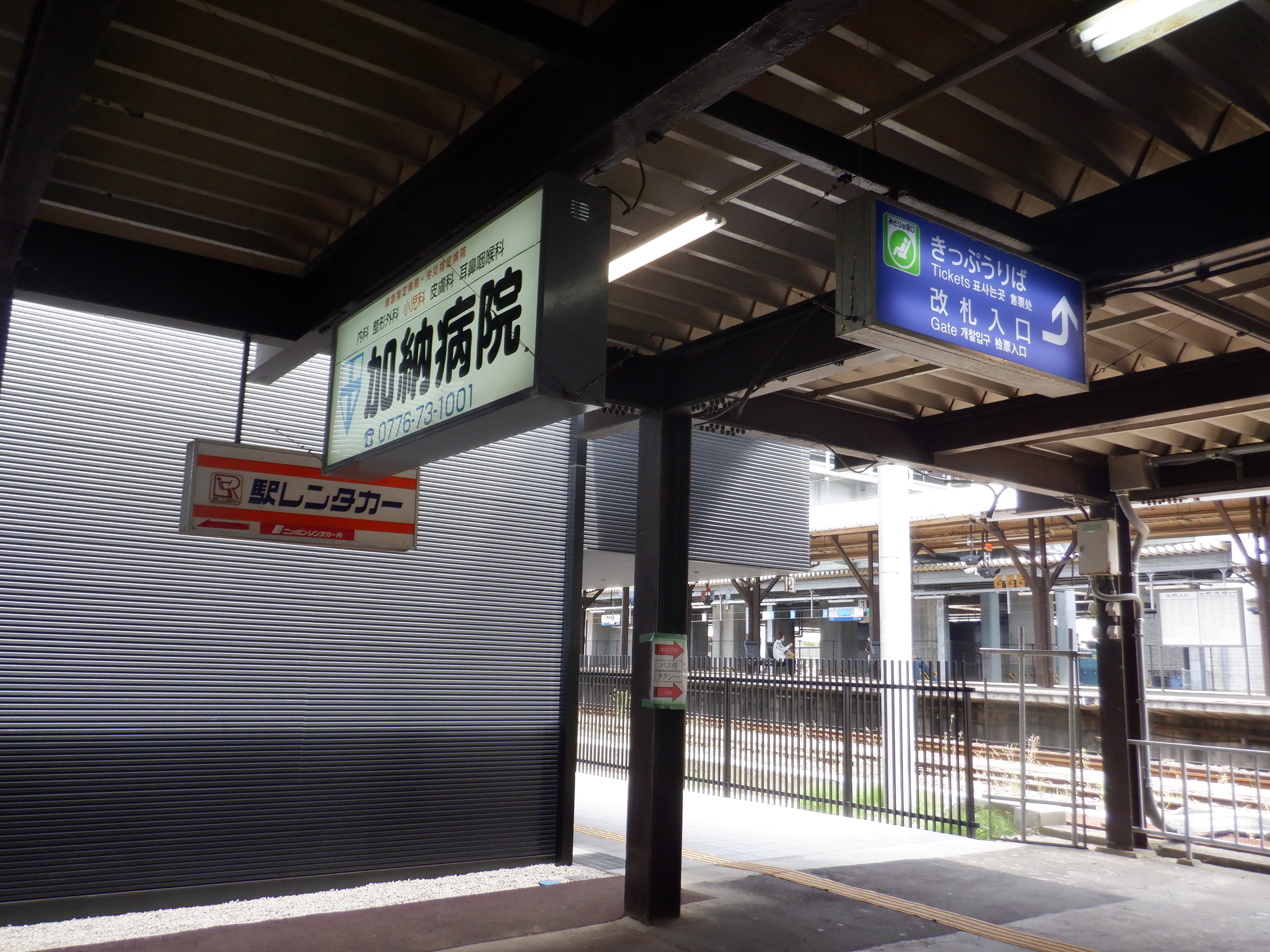 エレベーター前から見たアフレアに隠れた第一種駅名標。