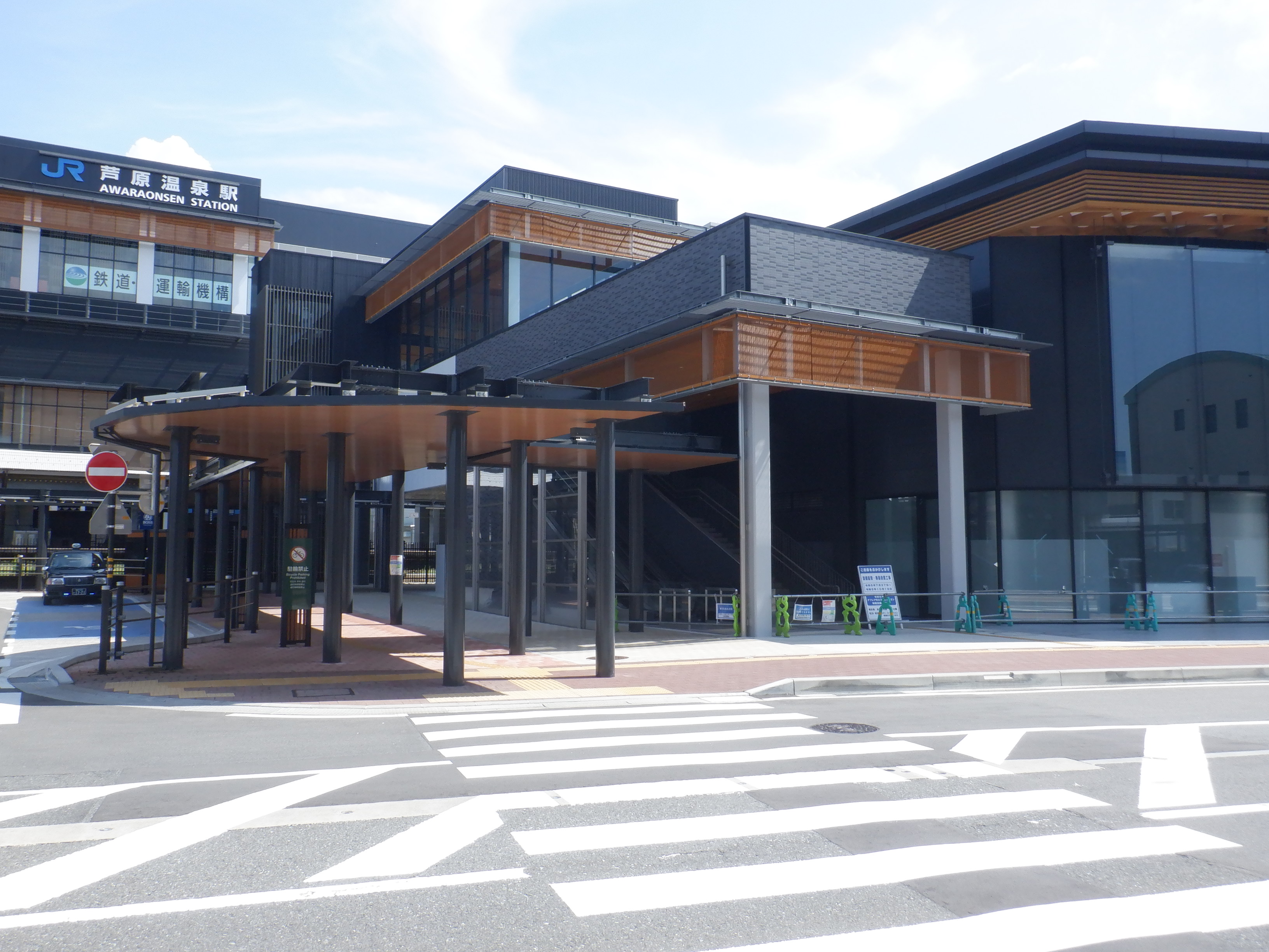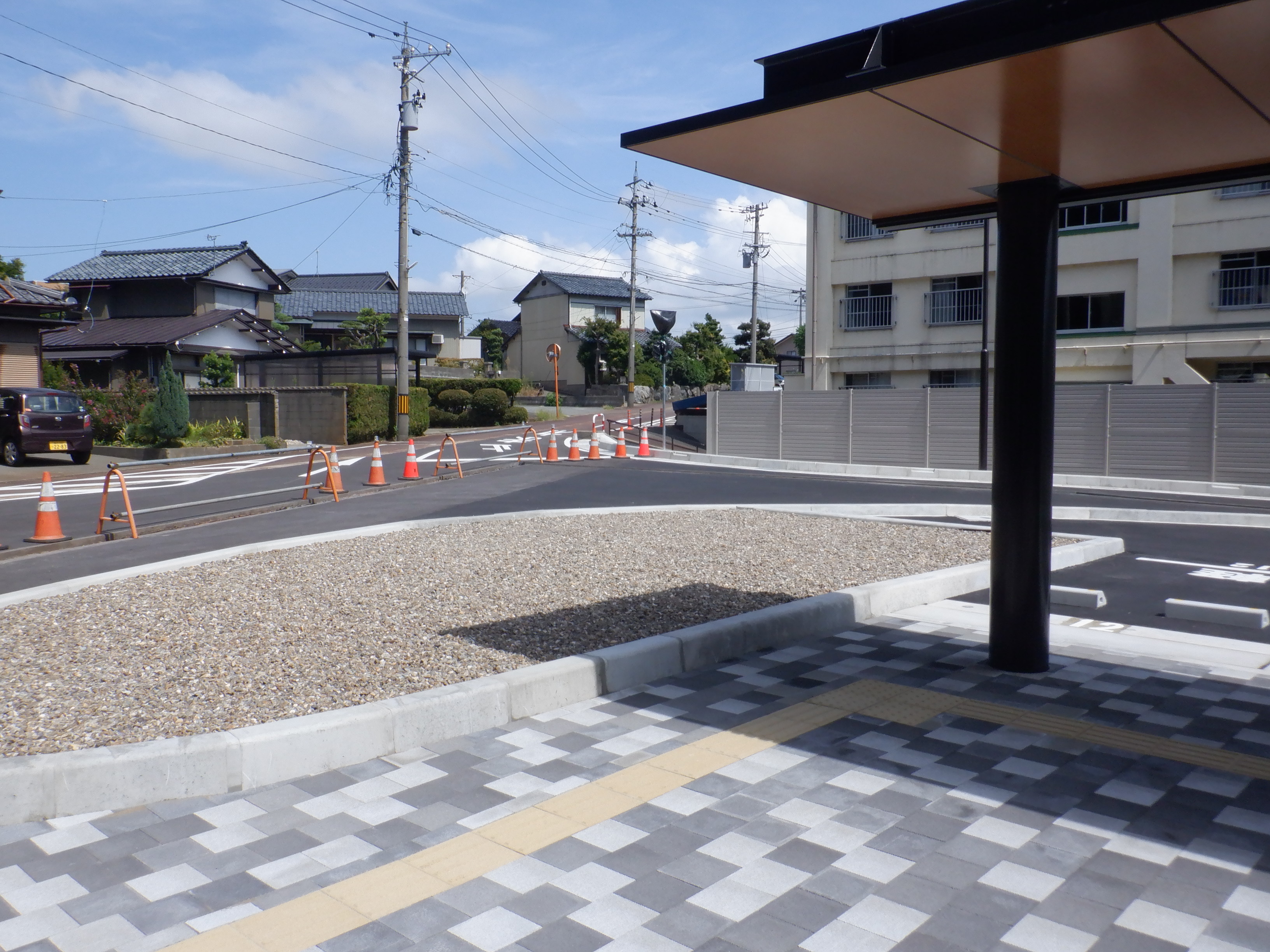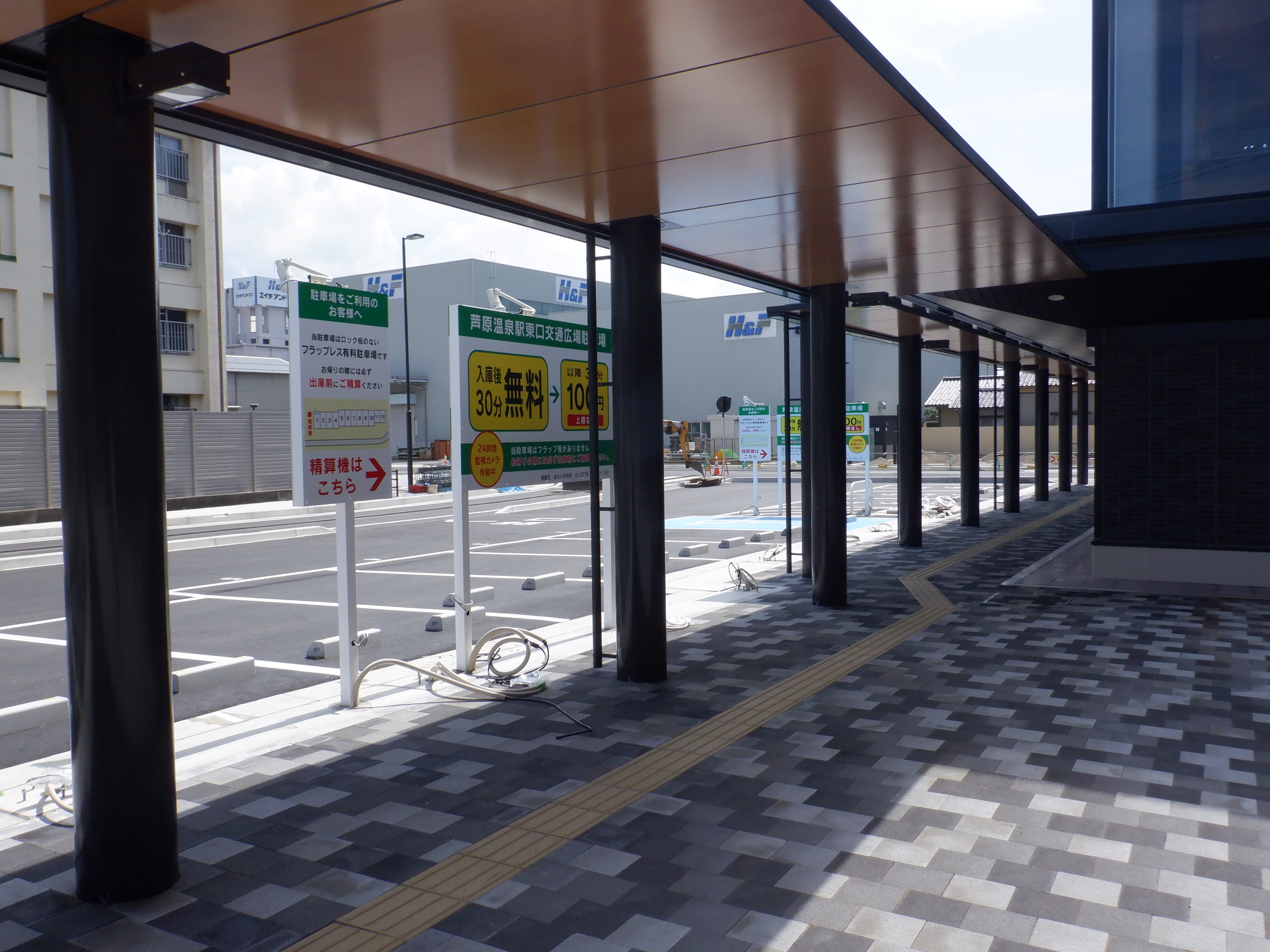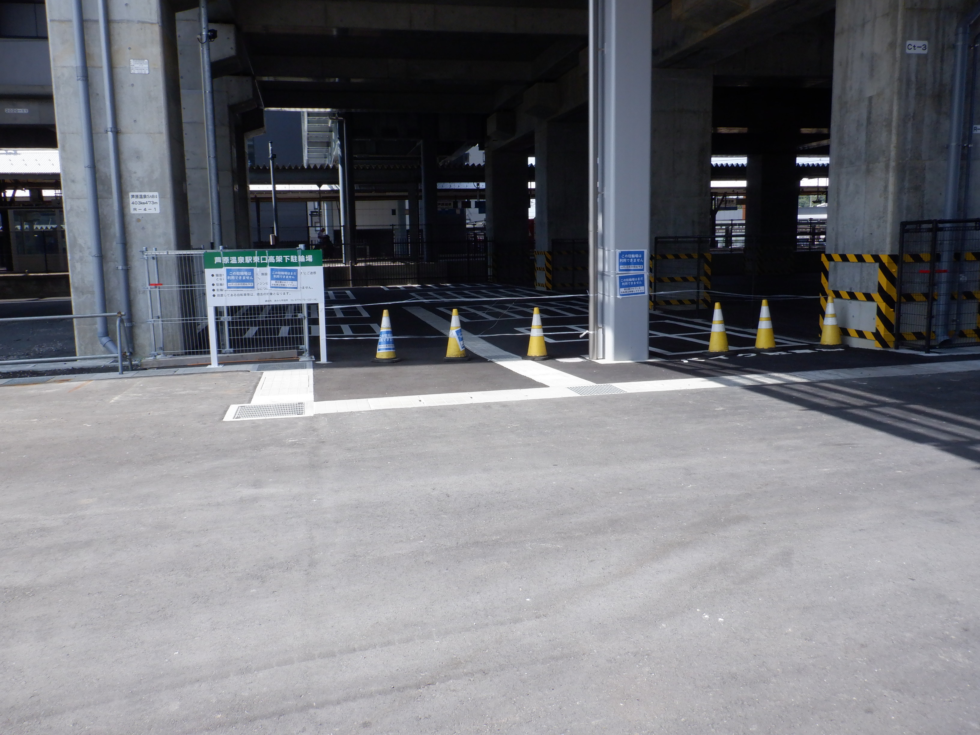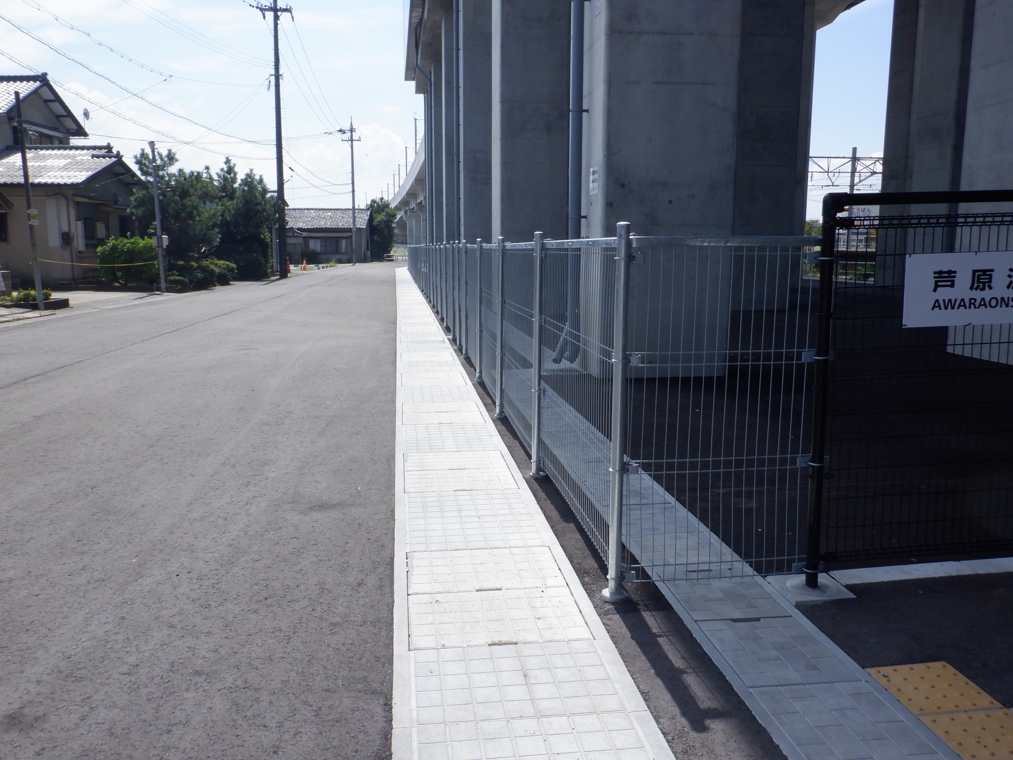 今回より東口の自由通路出入口の前が歩道として供用開始していました。