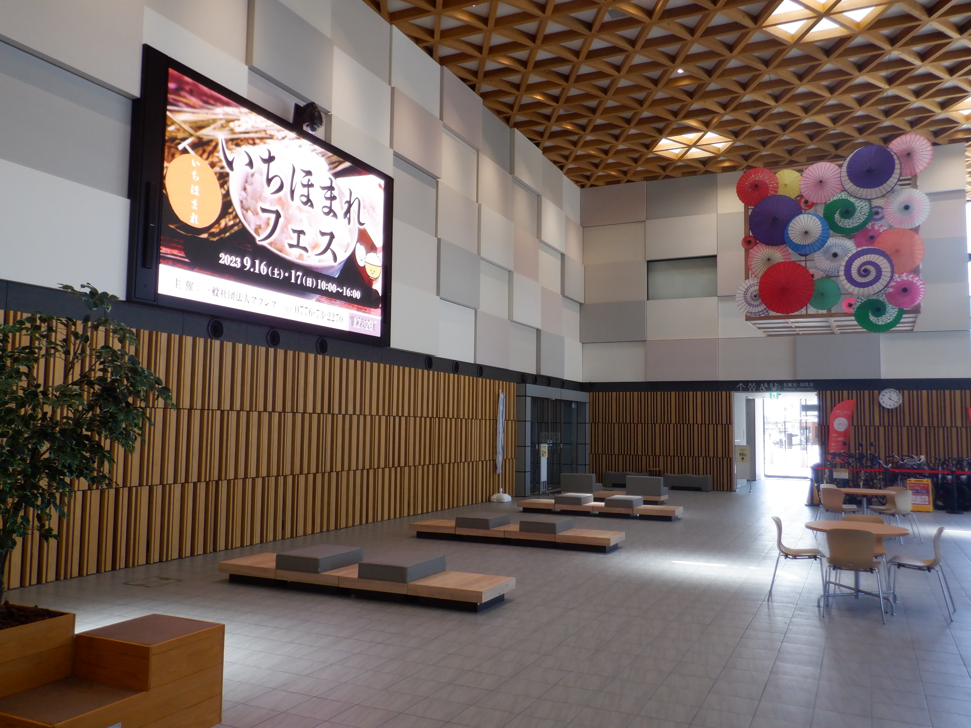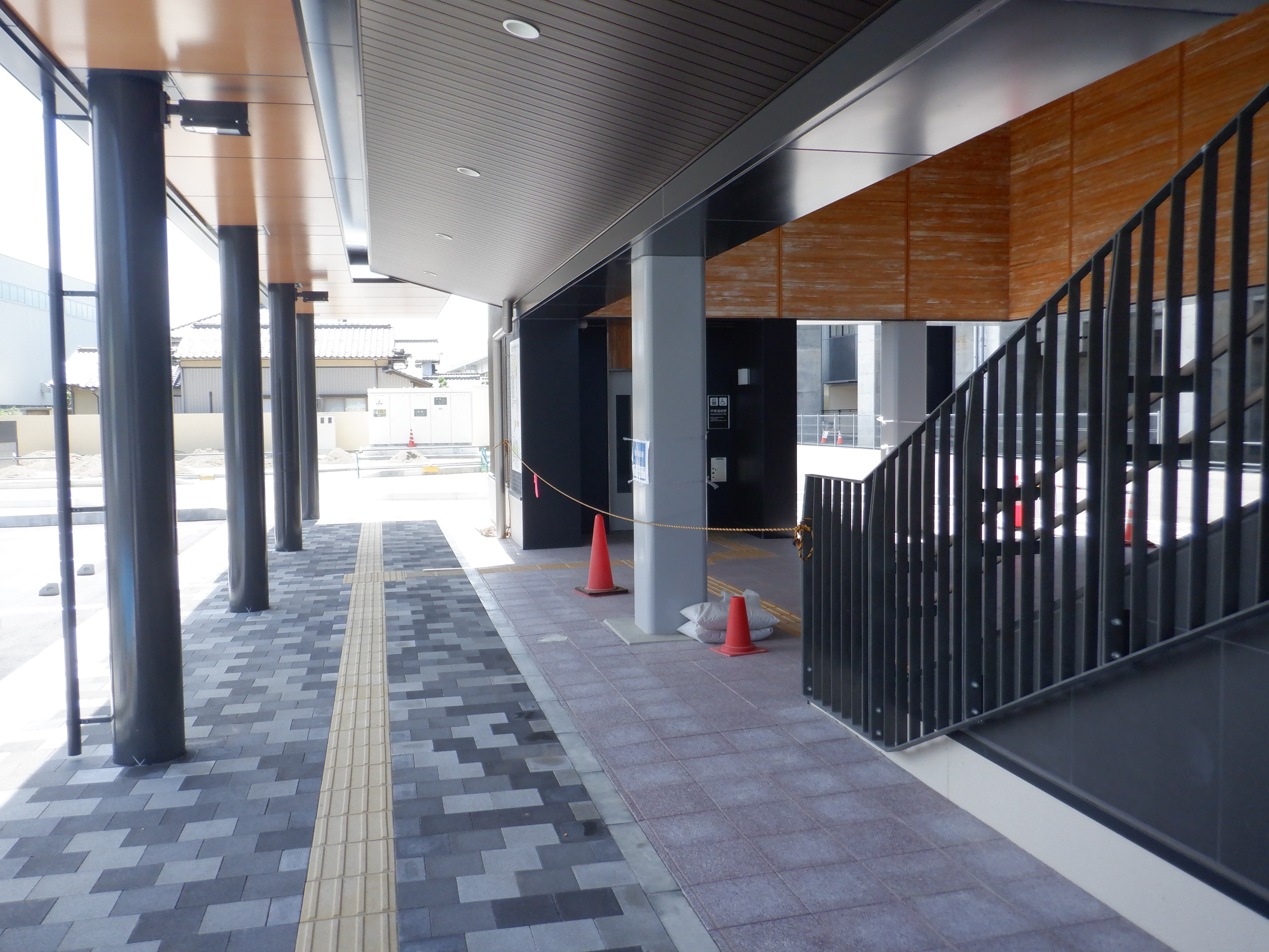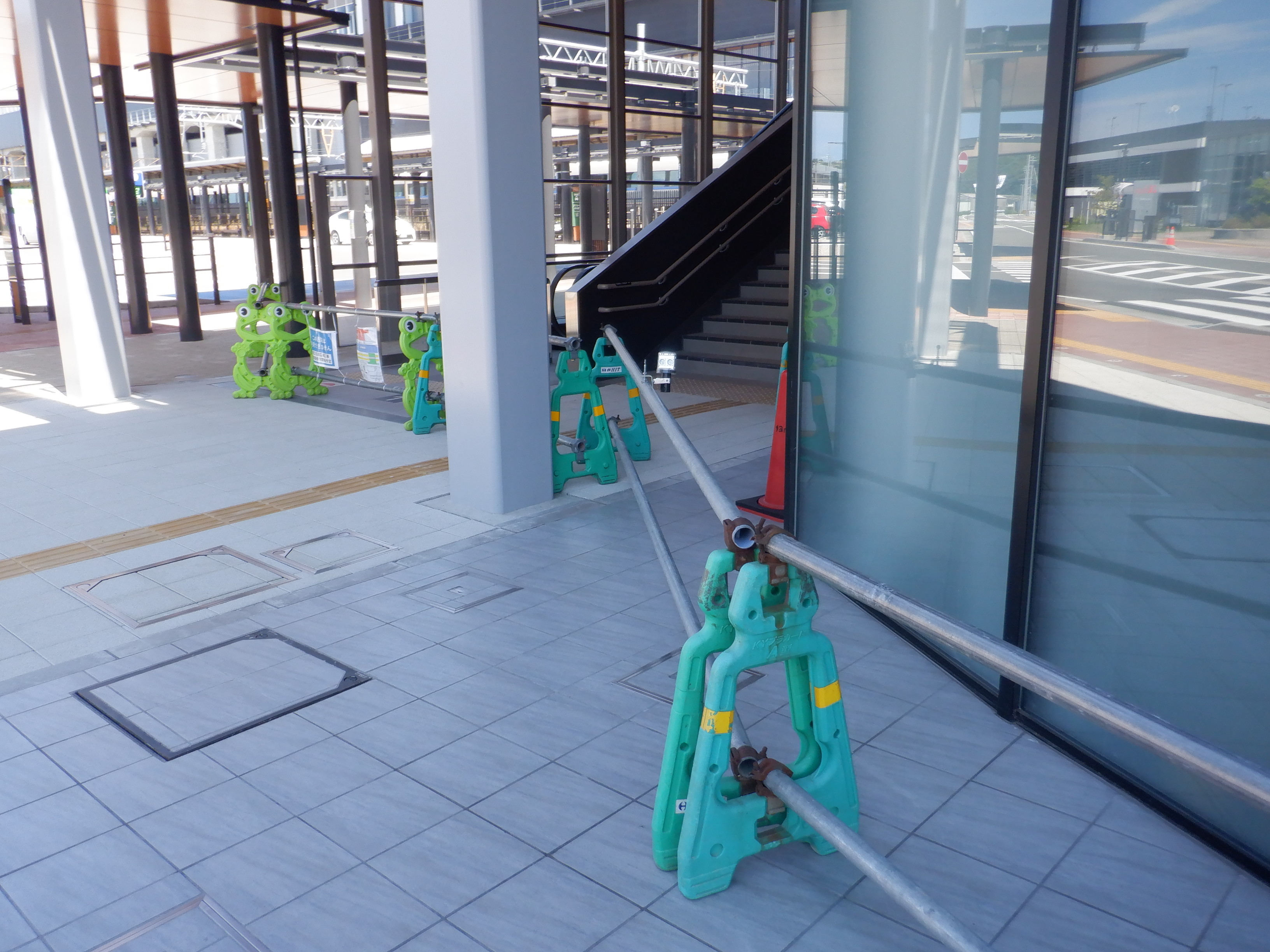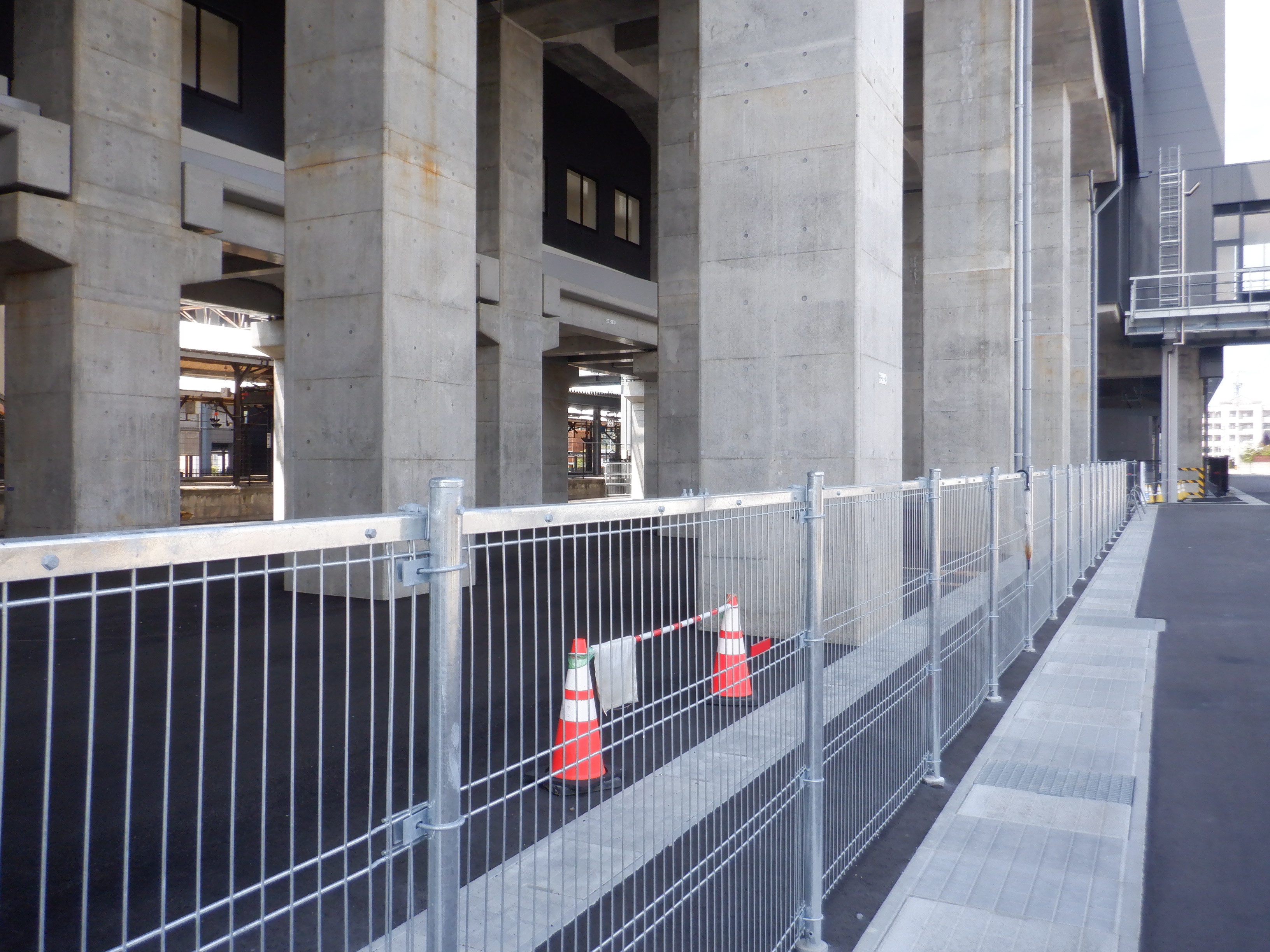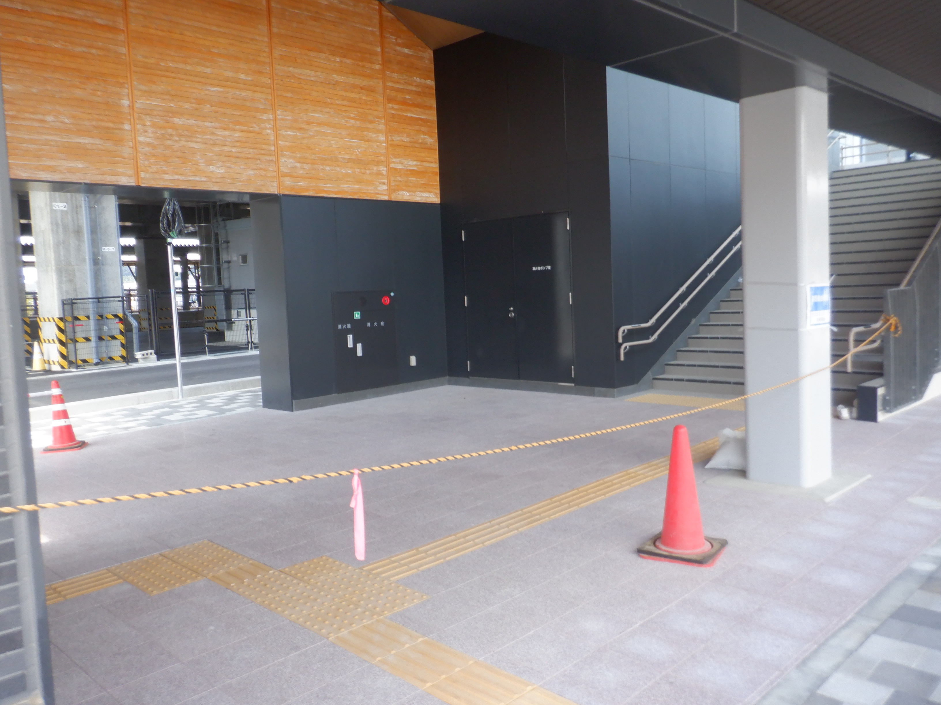 今回より東口側の自由通路出入口の前が歩道として通ることができるようになりました。