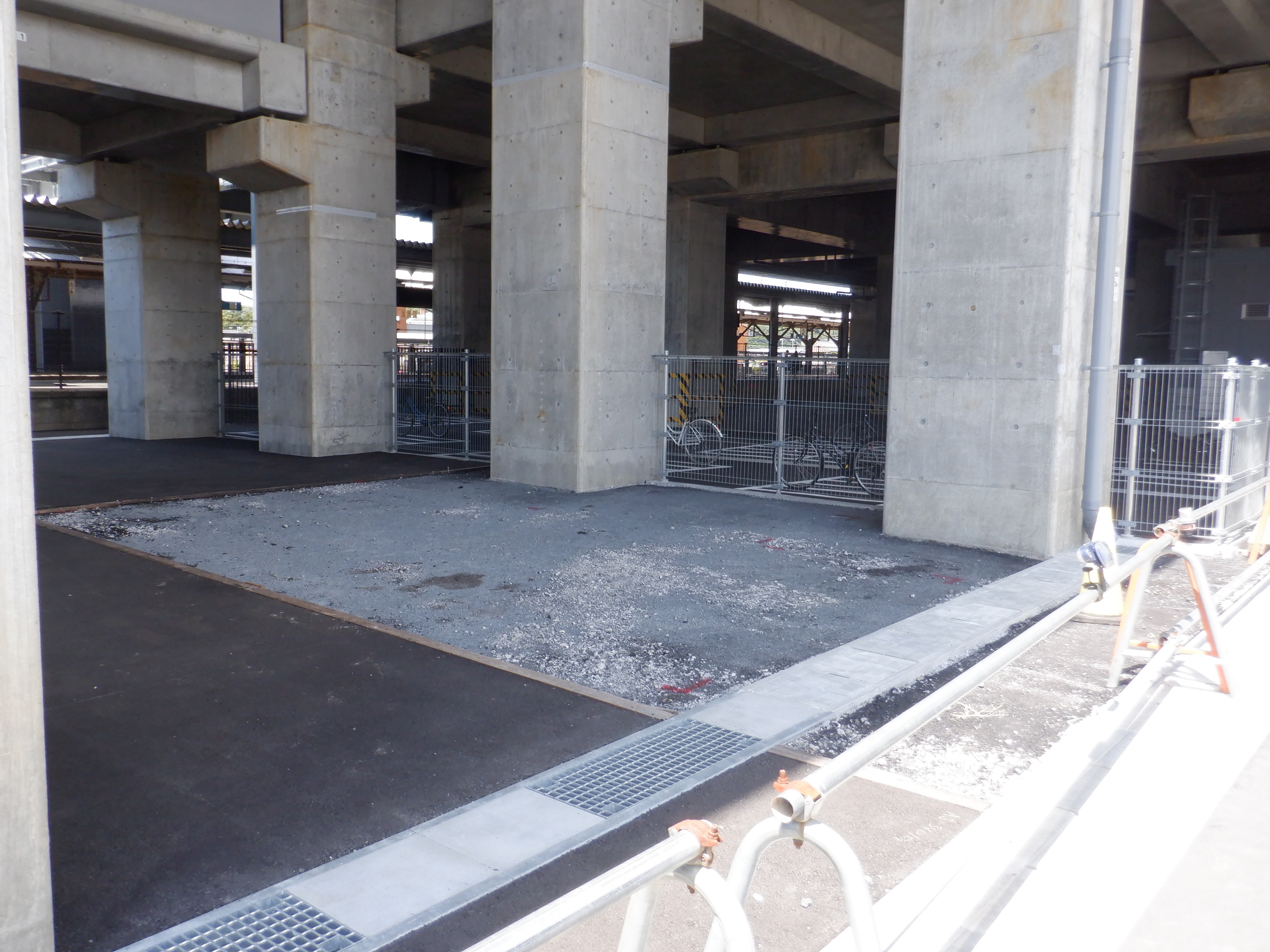 高架下の駐輪場となるところ。この時点では供用開始していません。