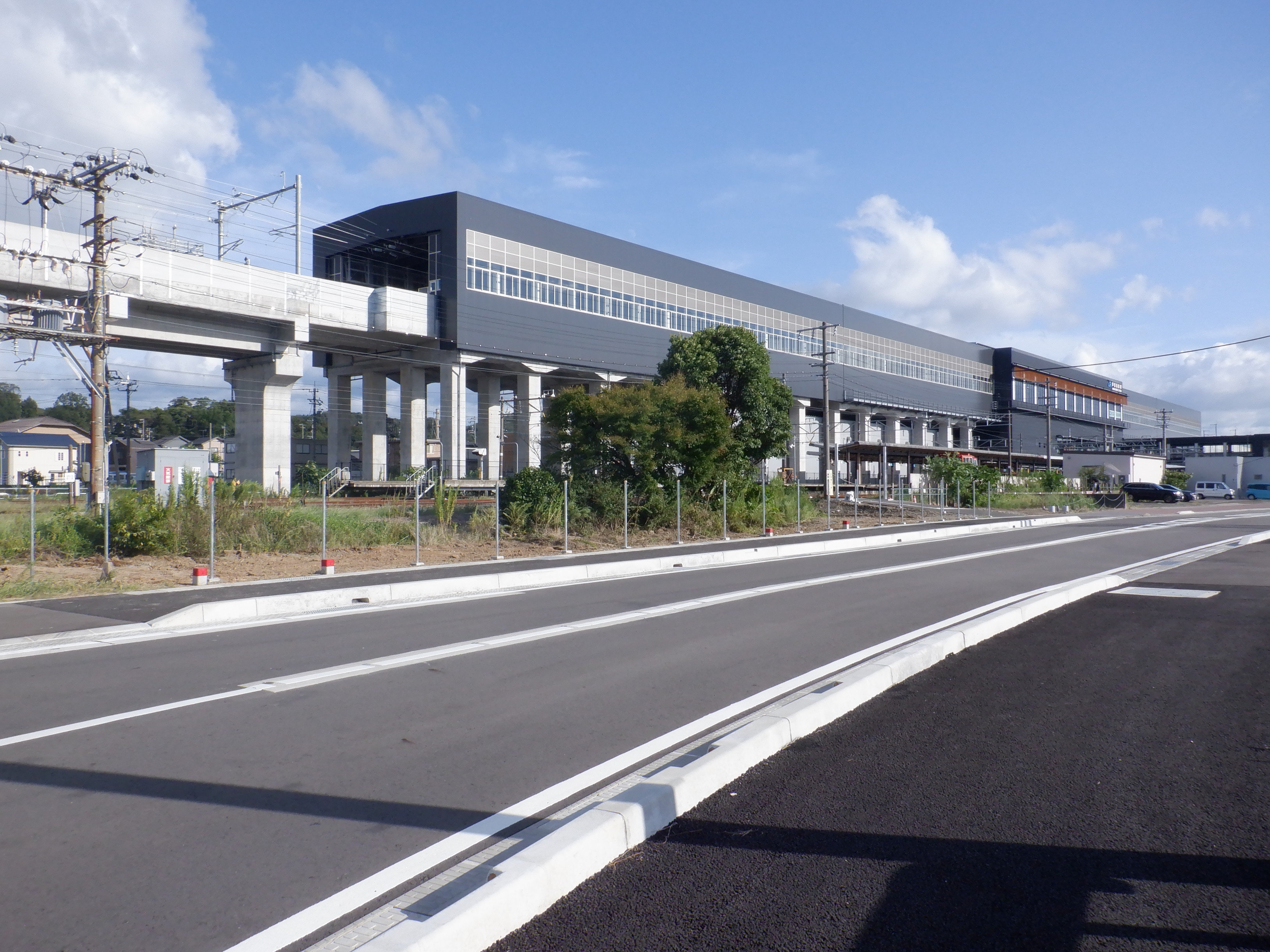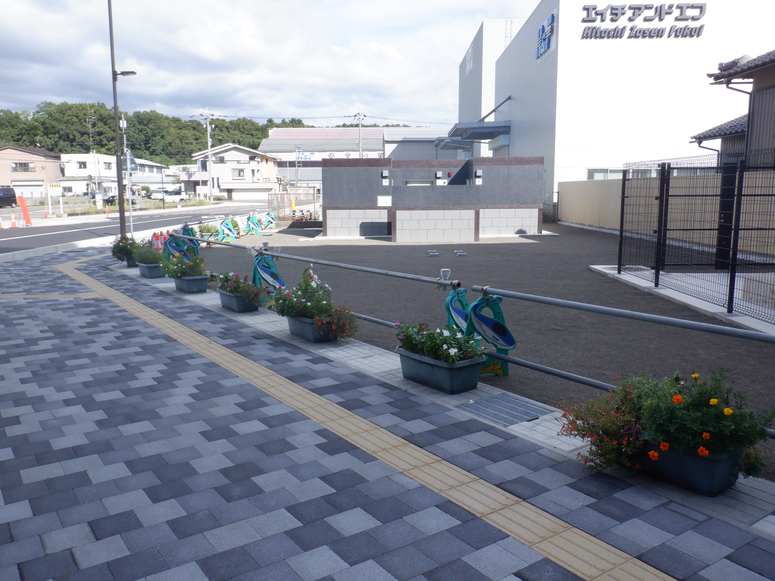 東口の交通広場建設中の様子、東口の出入口側。だいぶ整備されていますがトイレは未供用です。