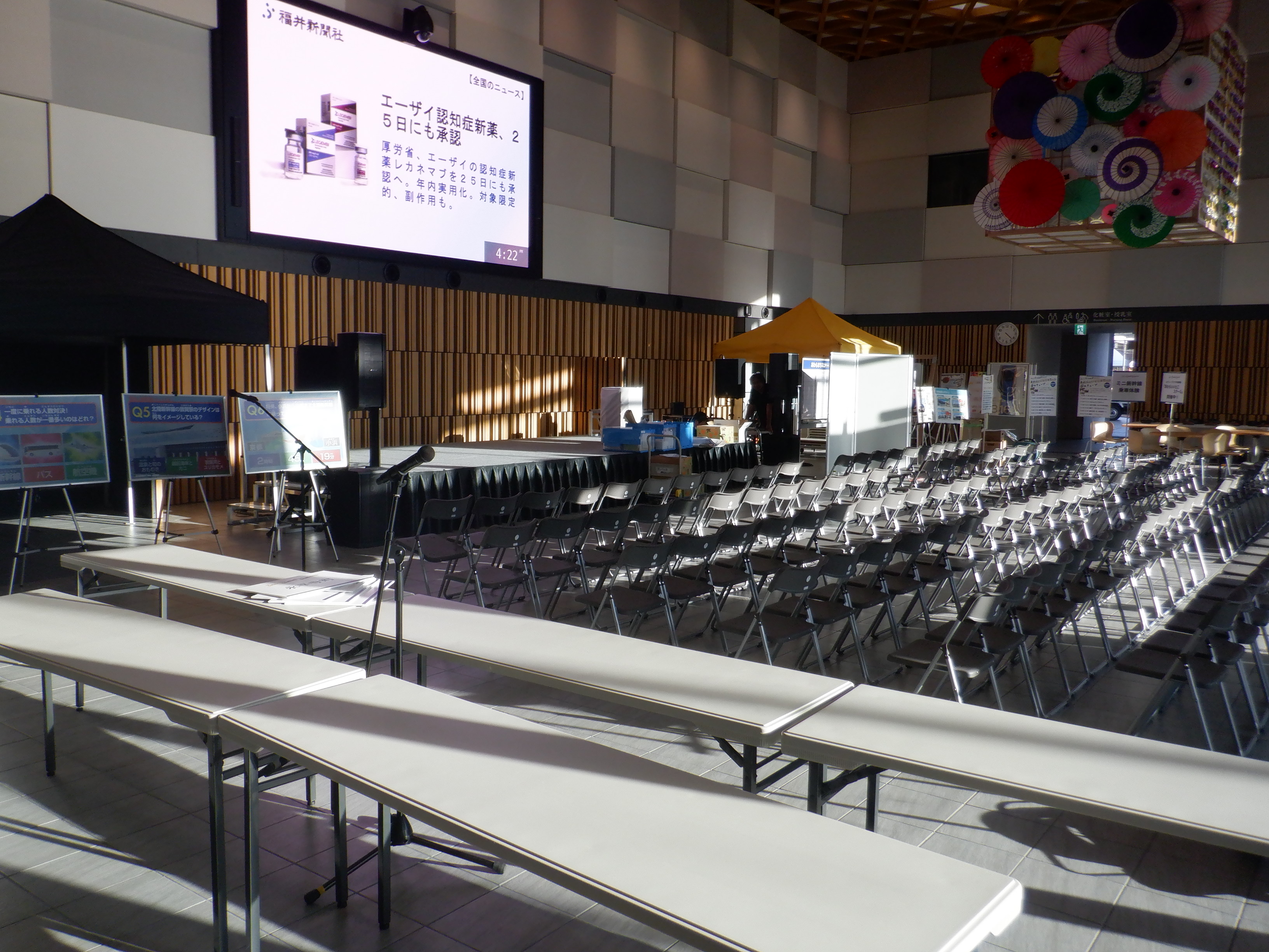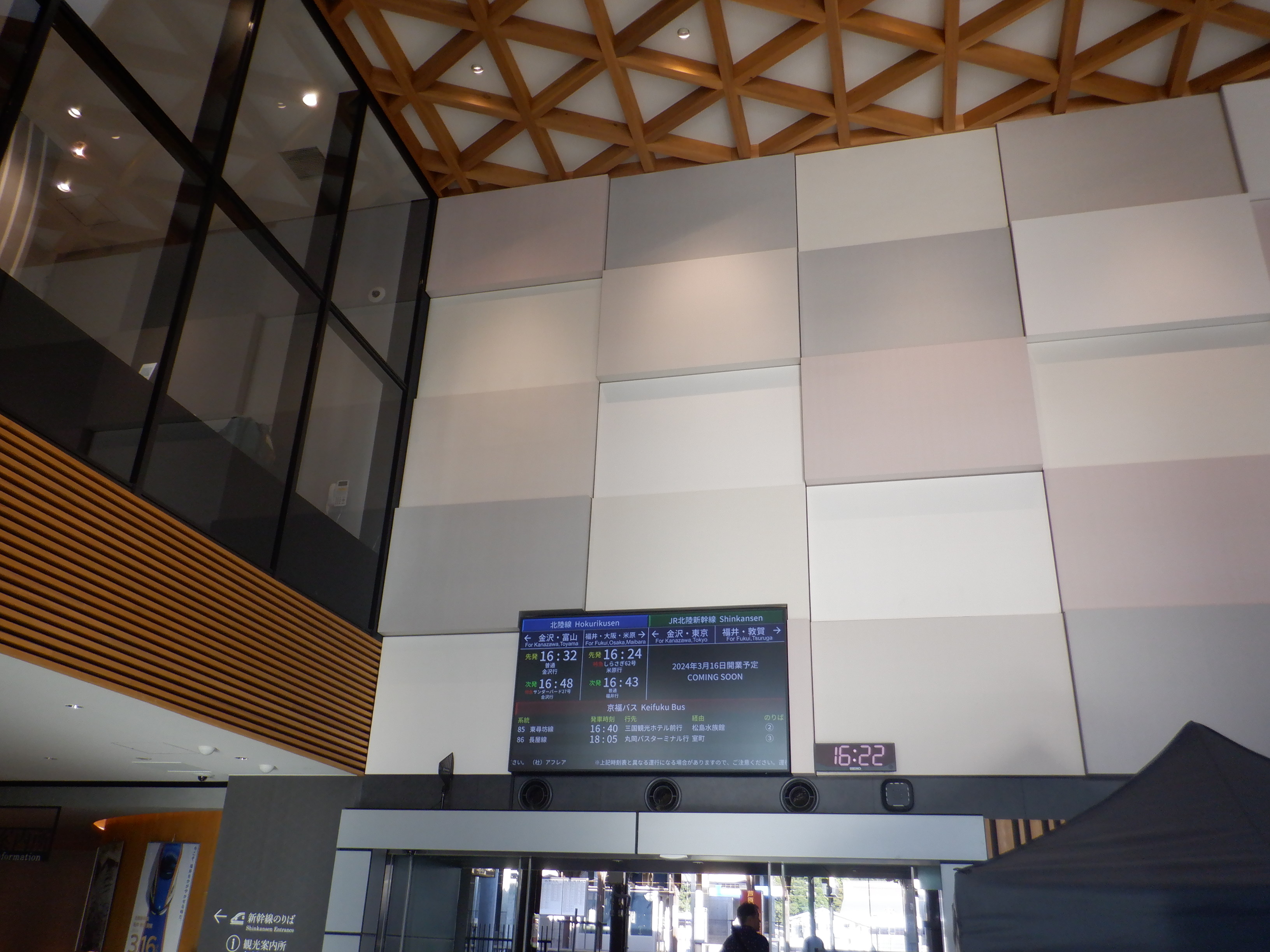 新幹線開業まで半年弱ありますが、通学の子供達の便宜のためにこの日の16時をもって新幹線改札口の前を通る自由通路が供用開始となりました。供用開始時刻に通ることができました。供用直前の様子からご紹介します。