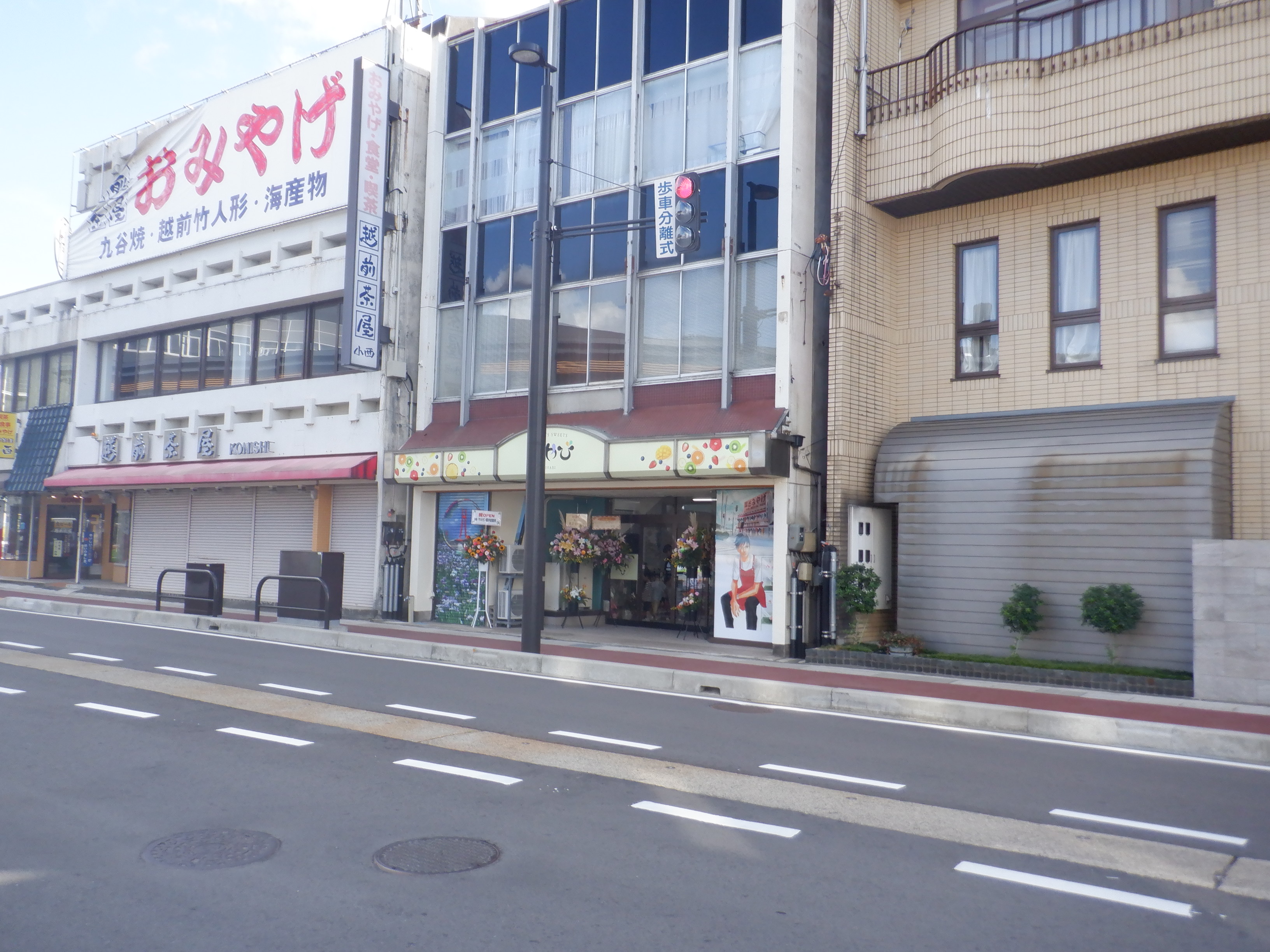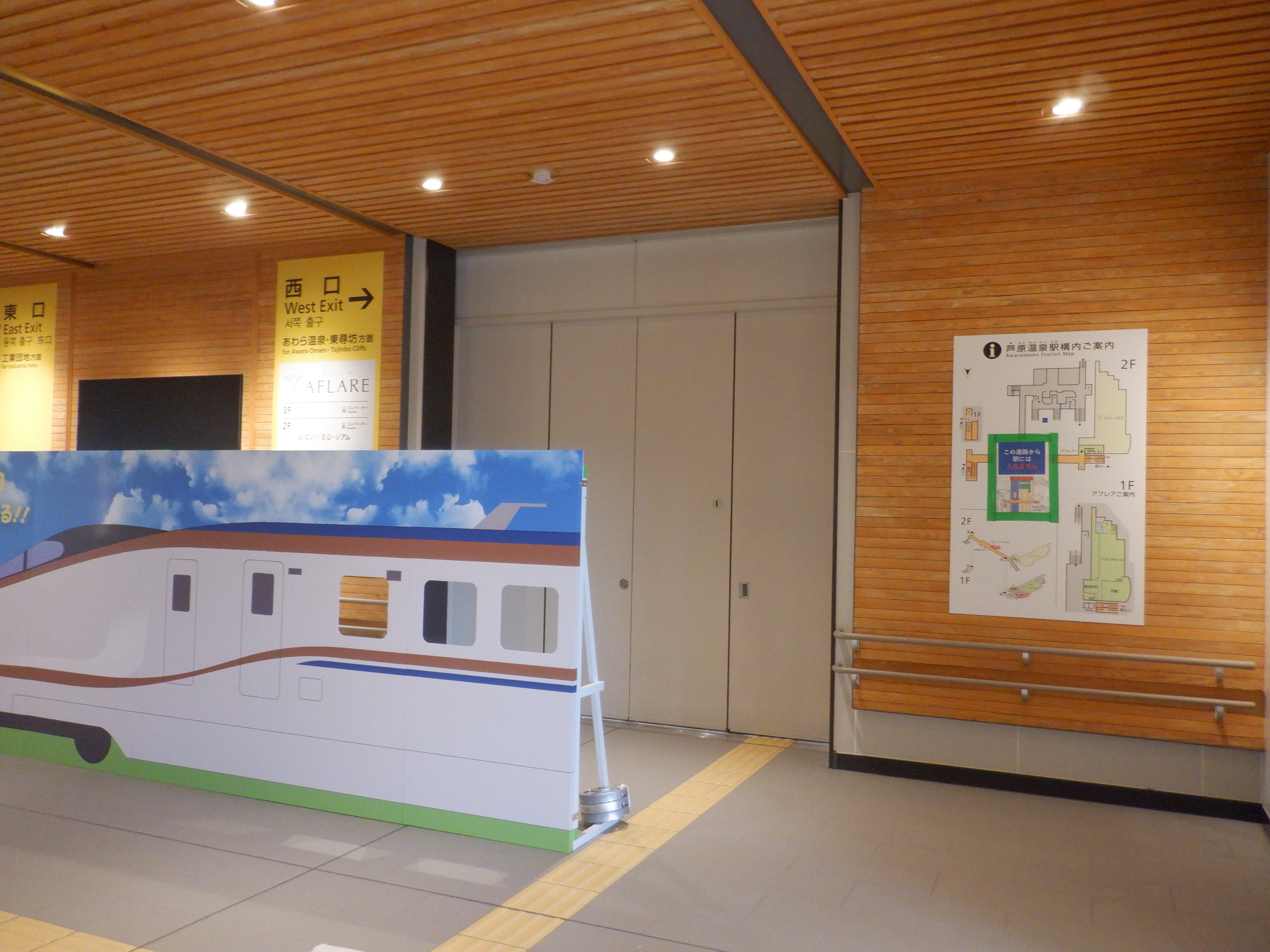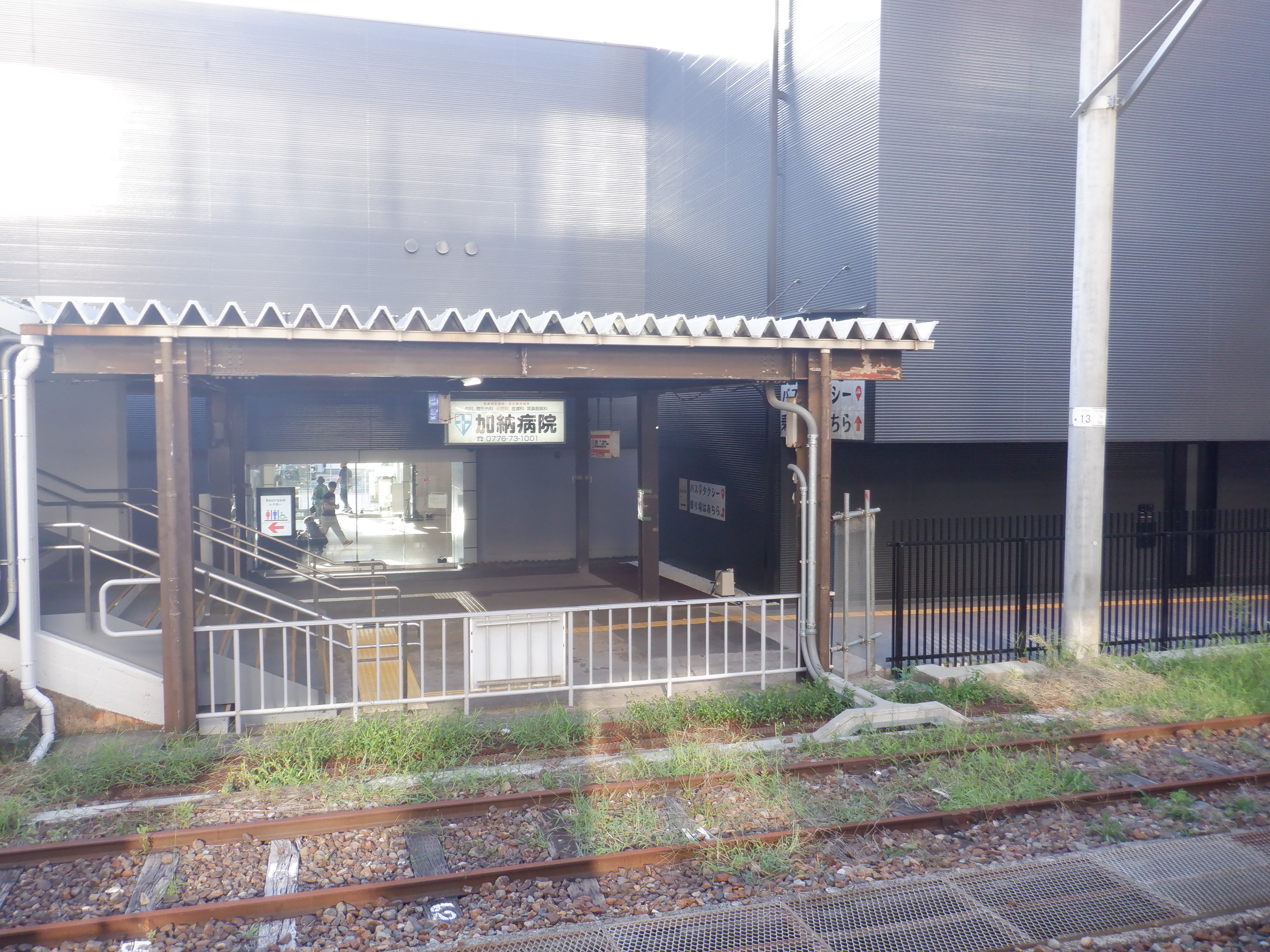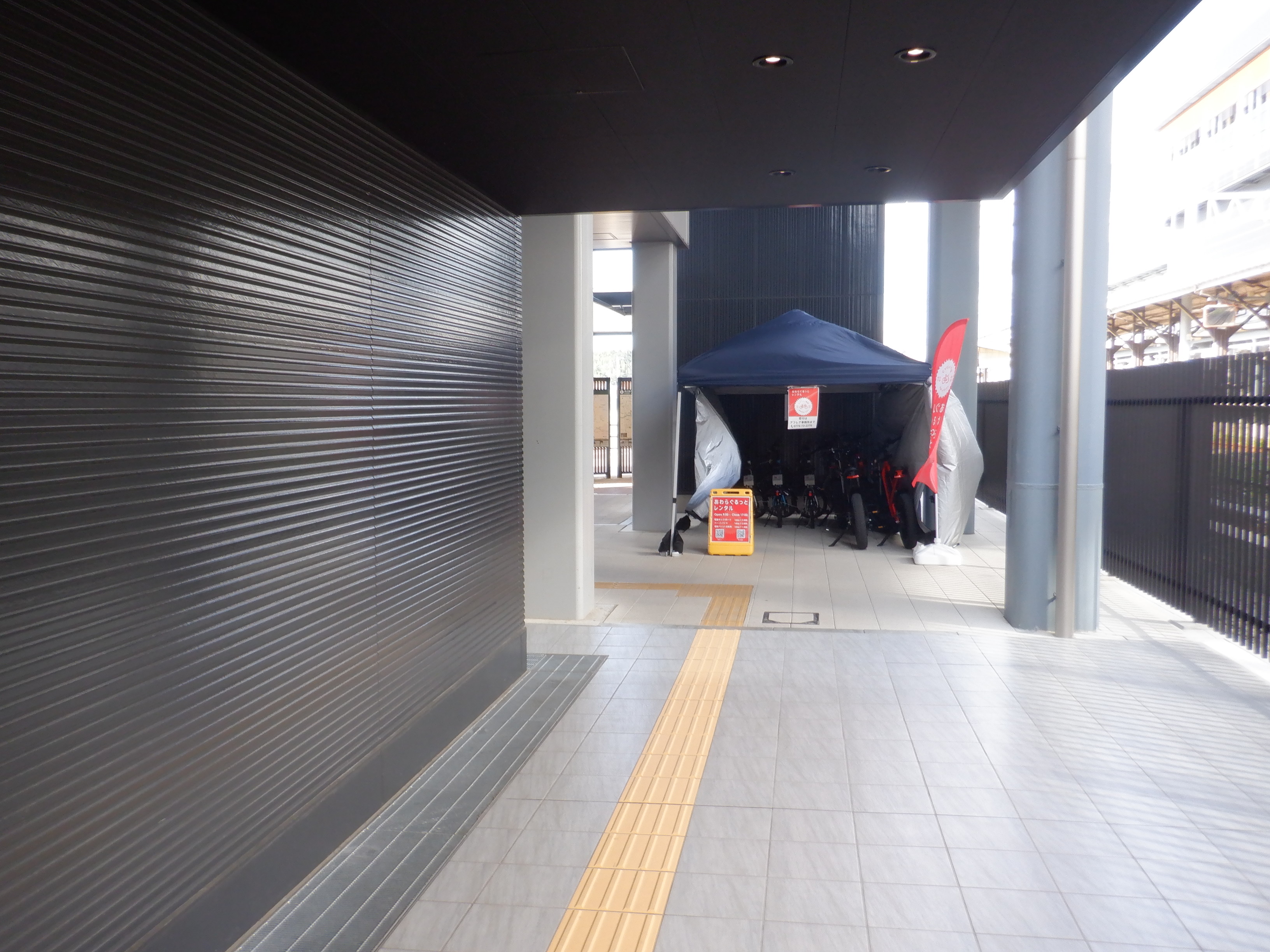 西口の丸岡駅側の出入口。