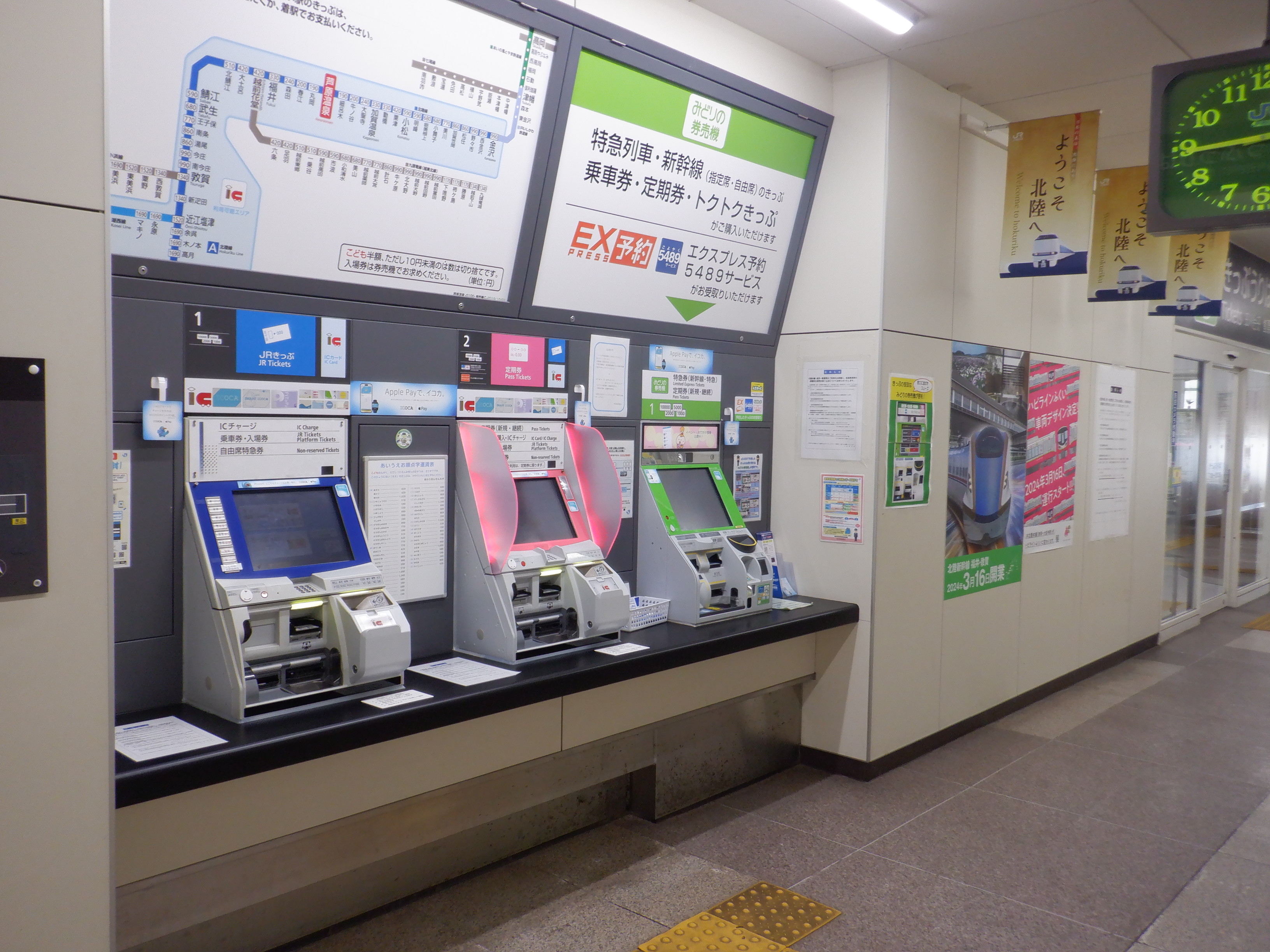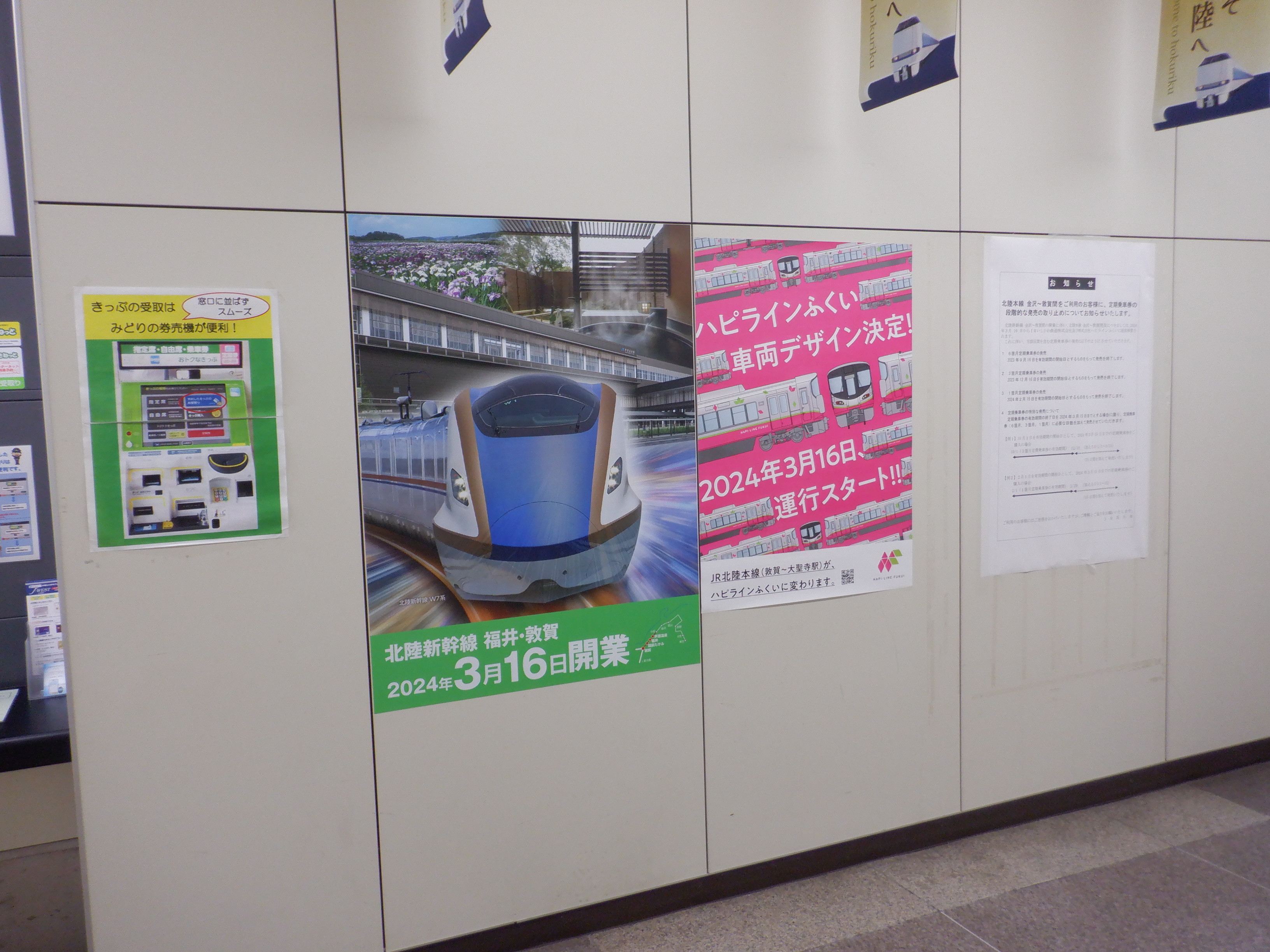 券売機とハピラインふくいのポスター。