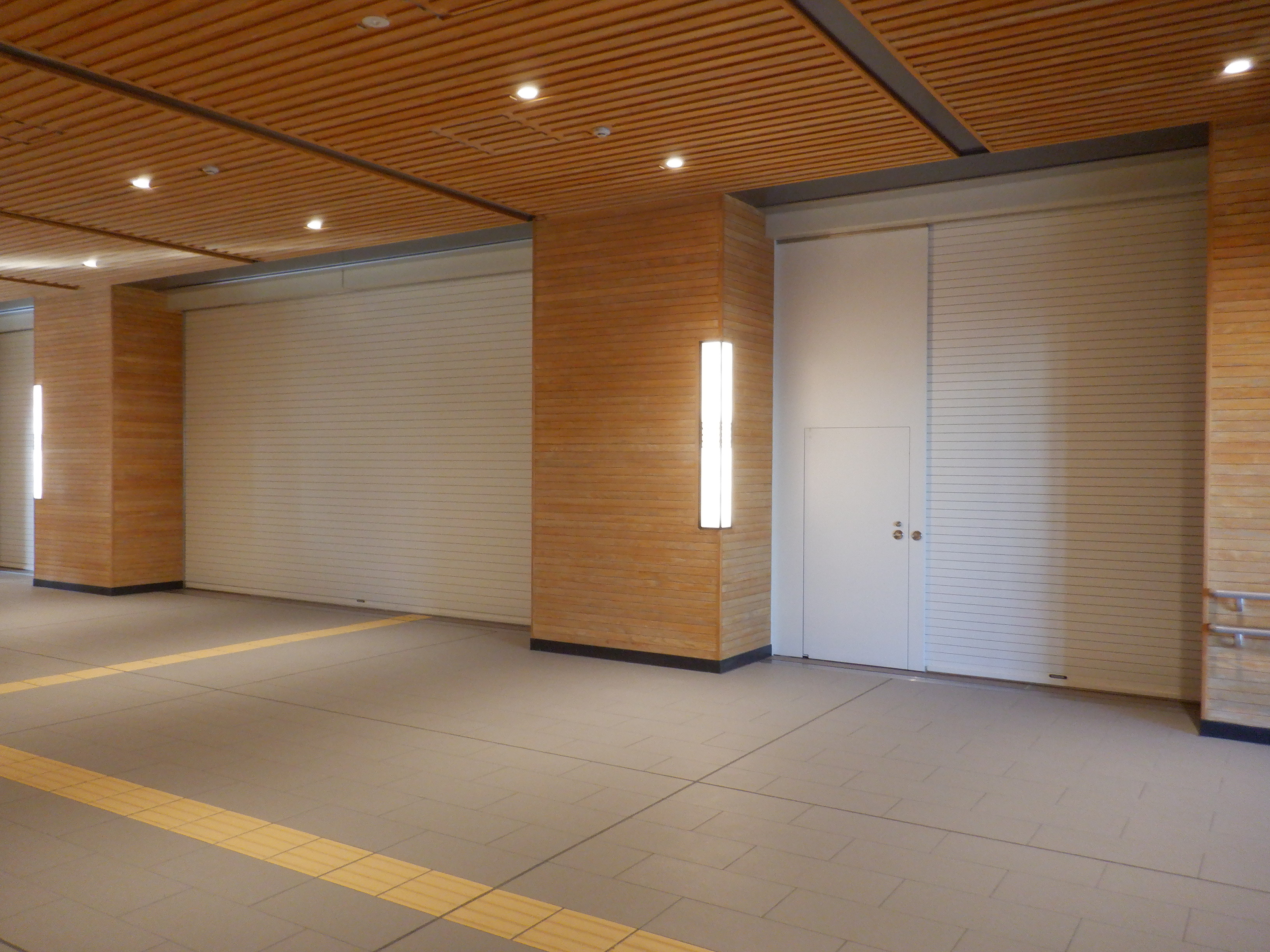 新幹線改札から出てくると正面になる部分。こちらのドアの部分が在来線のりばとの連絡通路になりますが、ここは開業まで通ることができないようです。