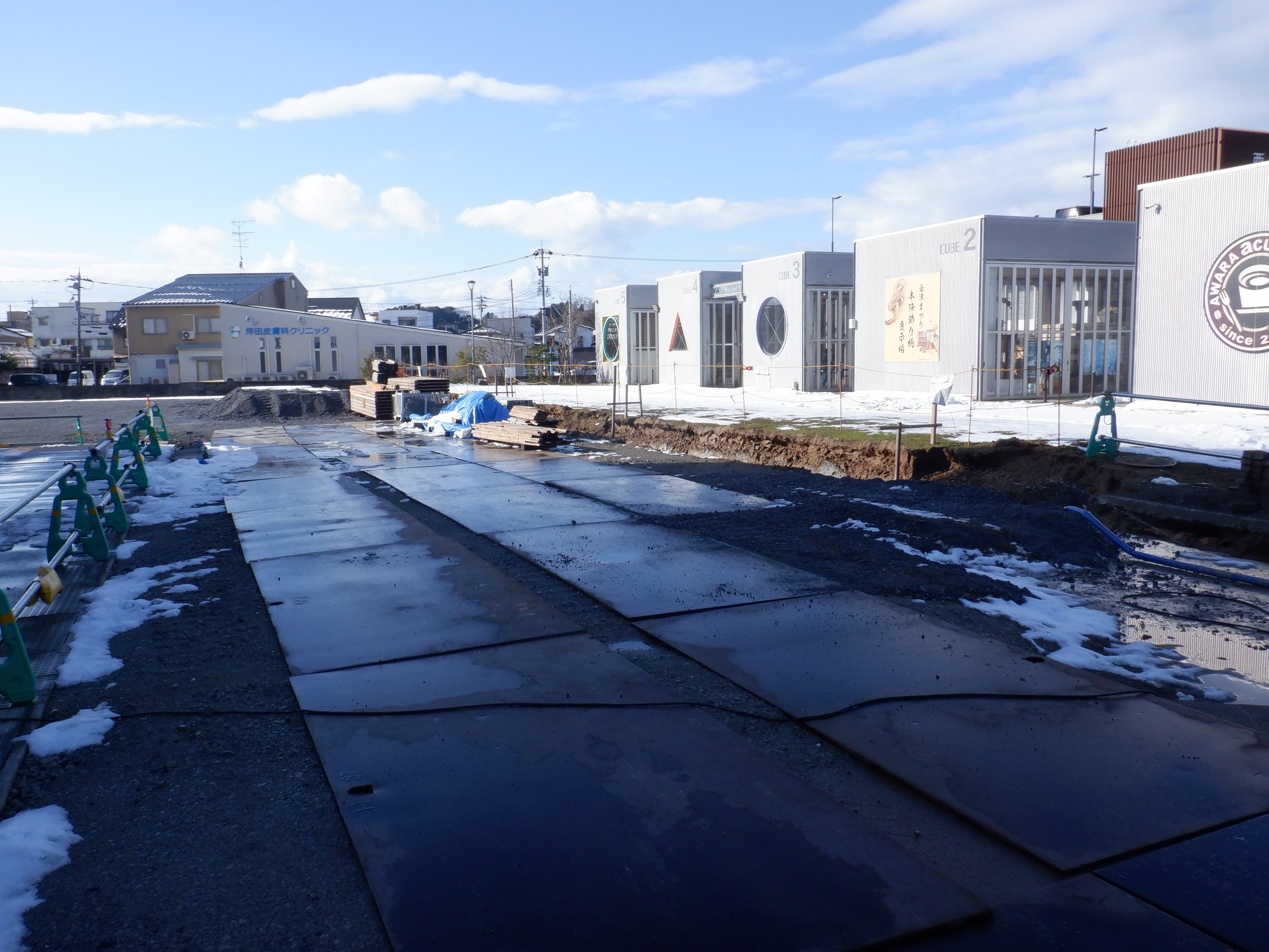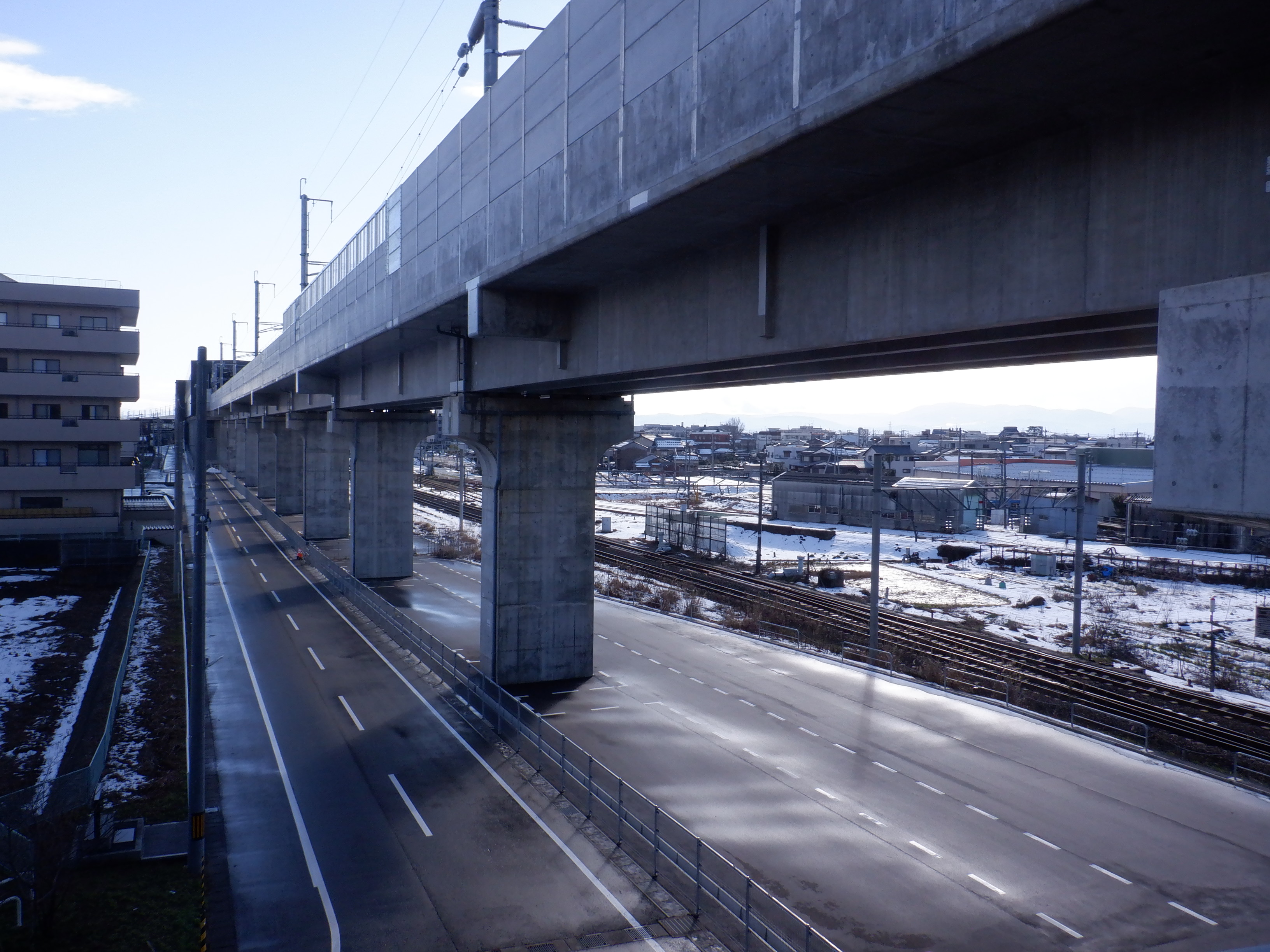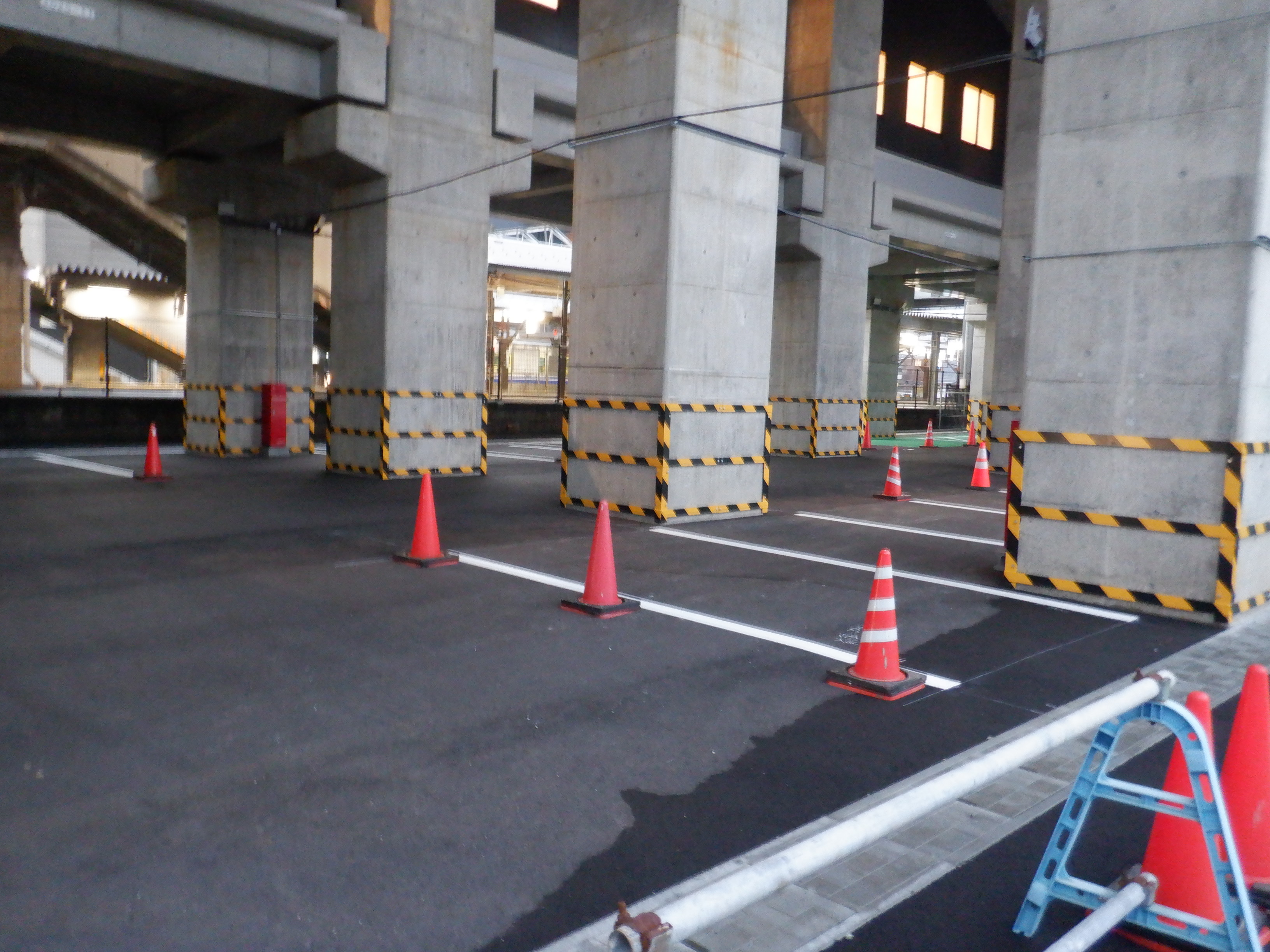 3番のりばから見た新幹線高架下。前回から2日しか経っていませんが、一部白線が引かれているなど、この間に少しだけ変化が見られました。