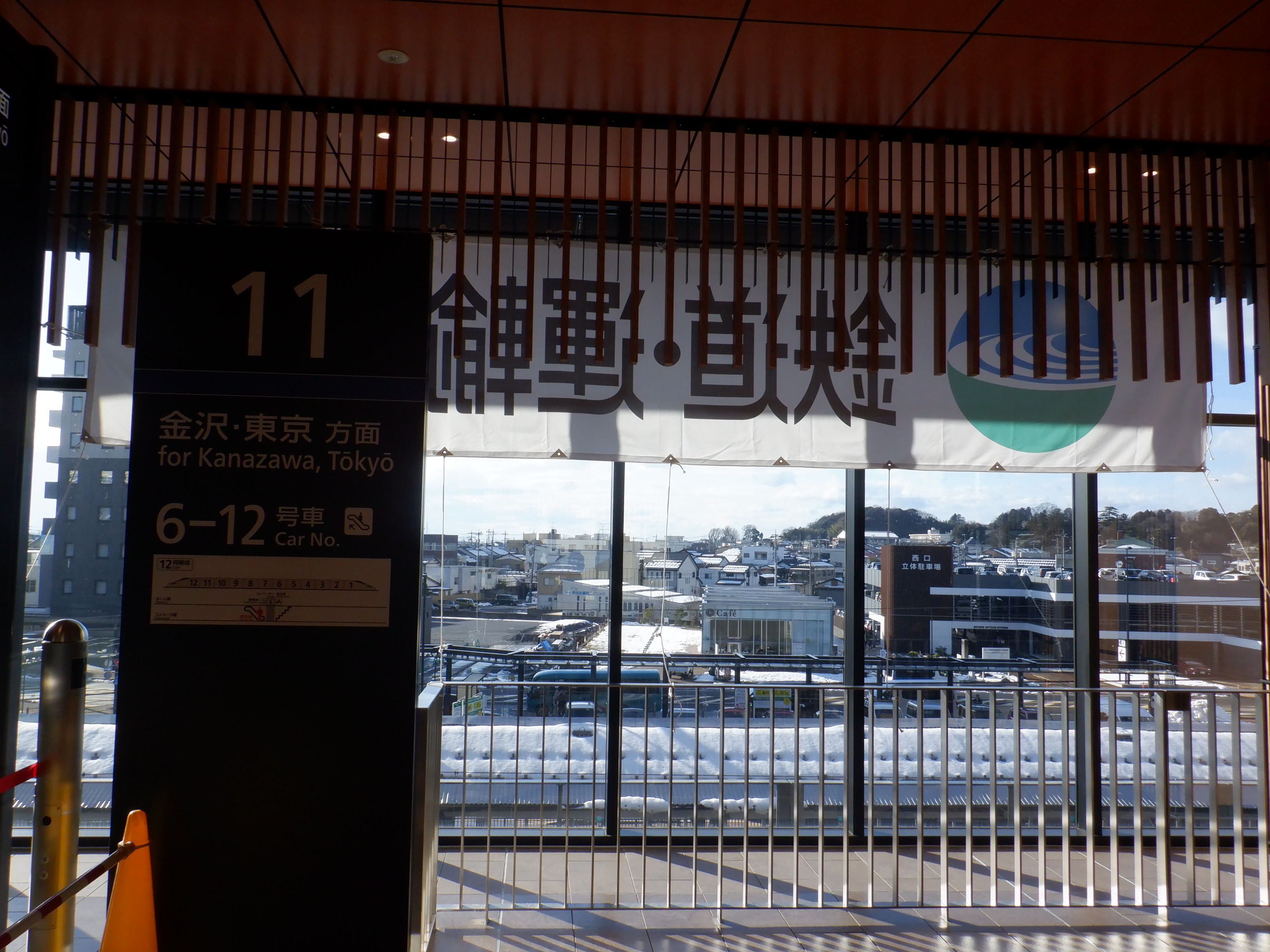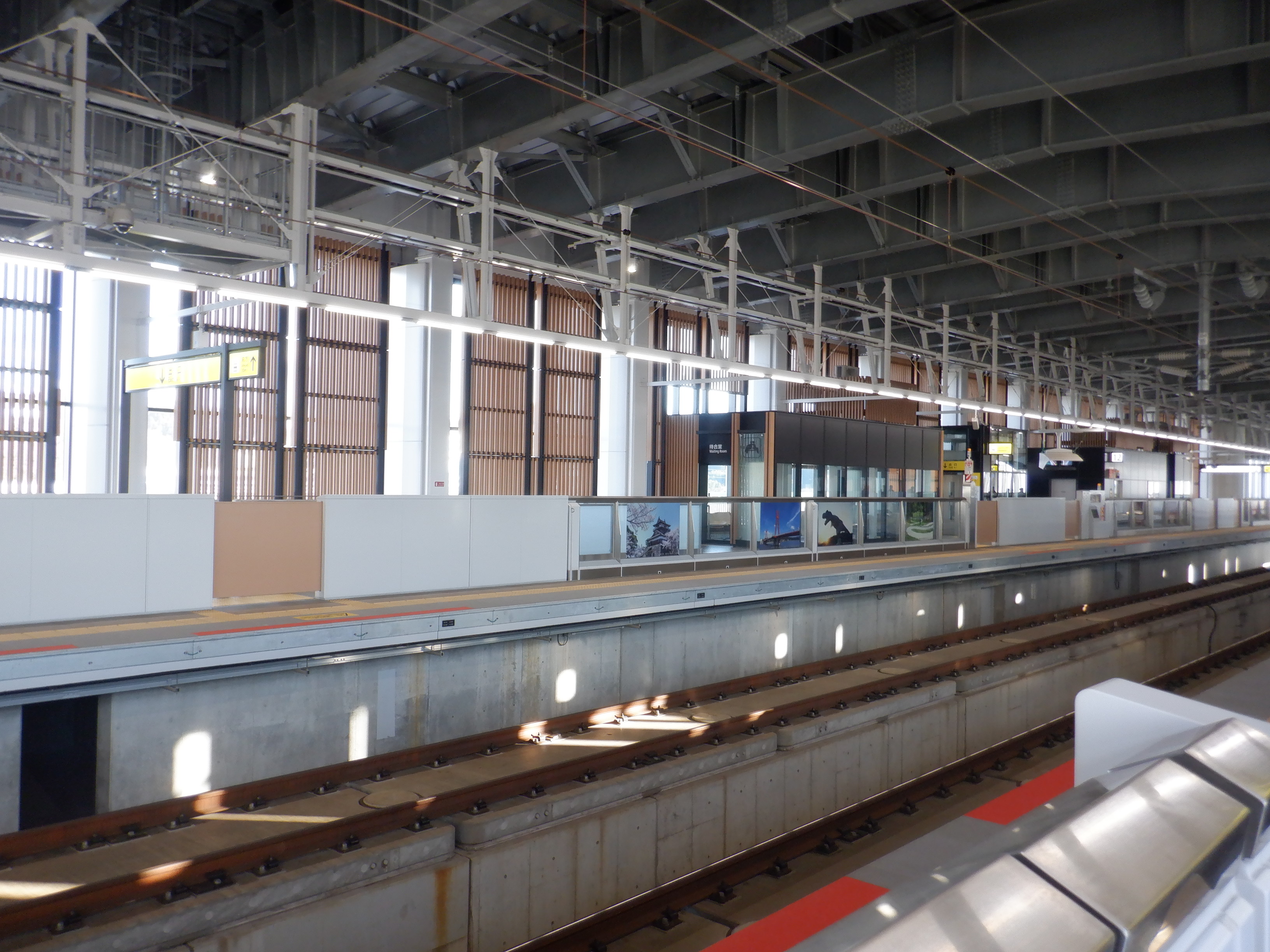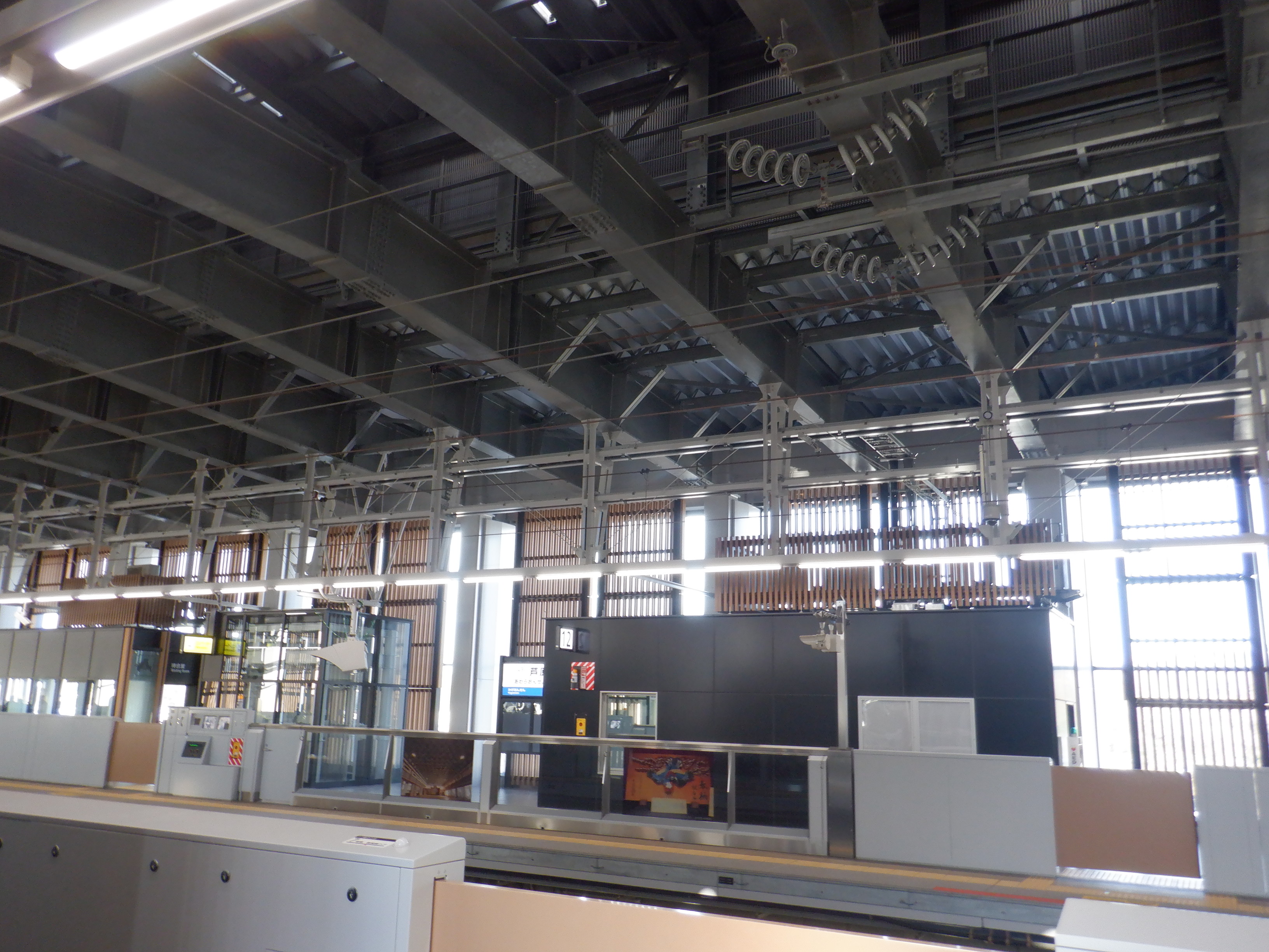 新幹線駅舎見学会を、越前たけふ駅に引き続きこの駅でも見ています。そのため今回は車で来ているため、在来線ホームからの様子は撮っていません。通常見ているものを見た後、新幹線見学会の様子、という流れになっています。