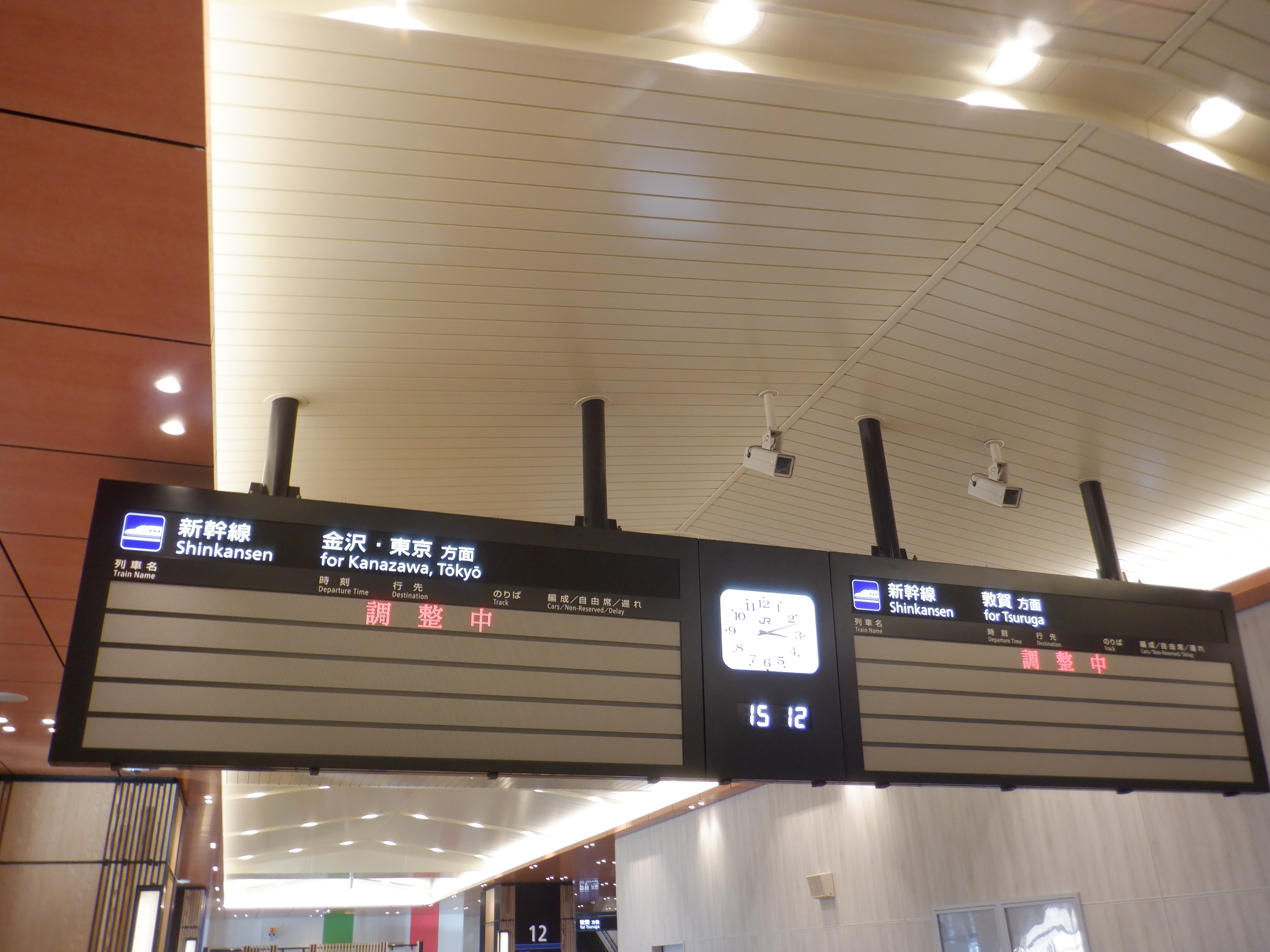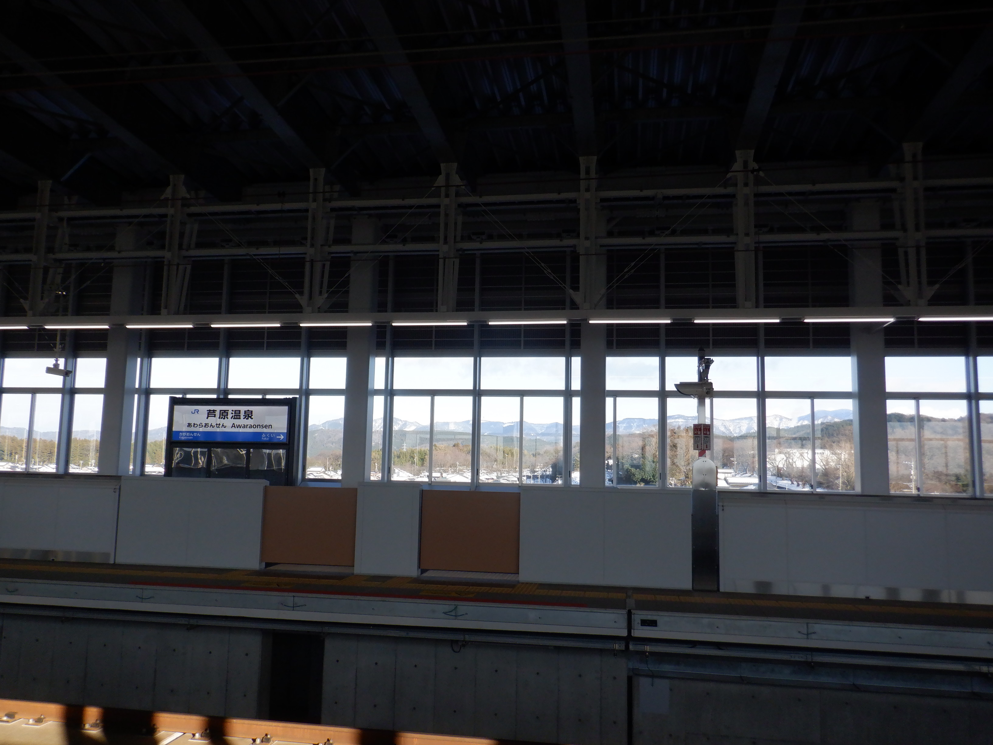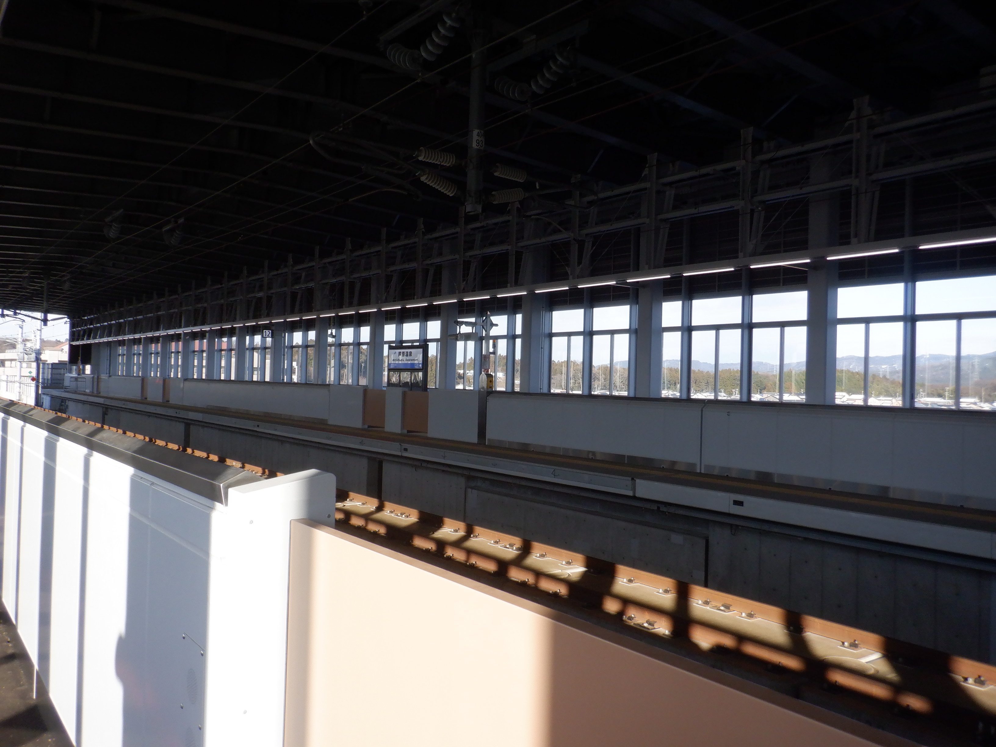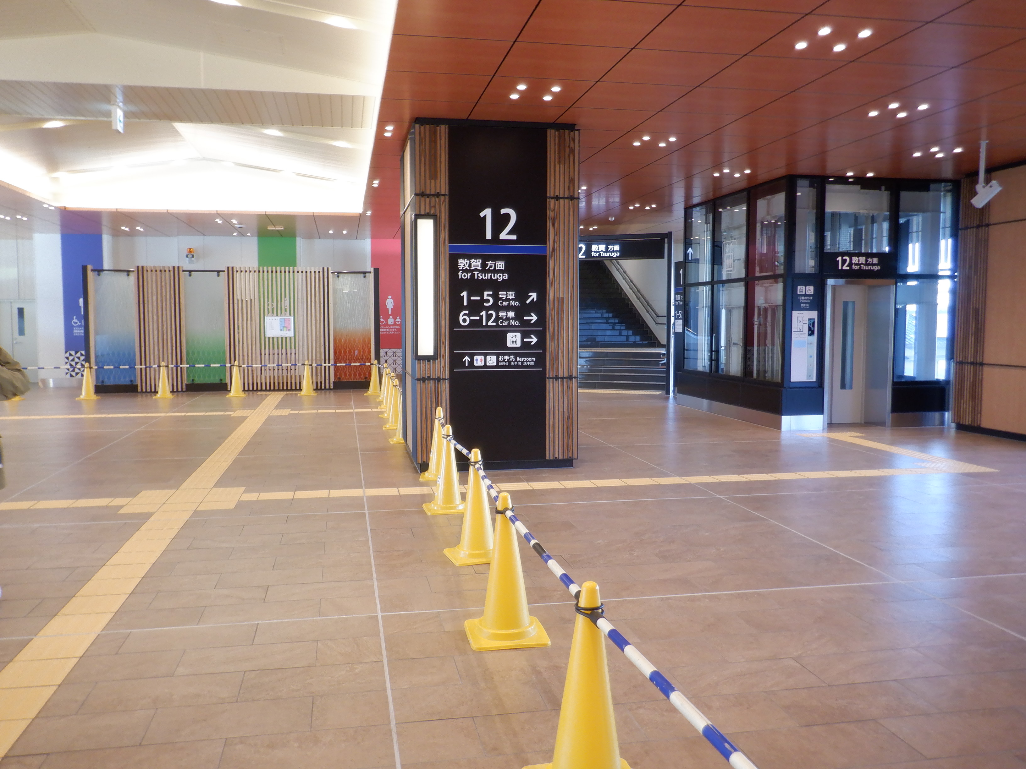 新幹線駅舎見学会を、越前たけふ駅に引き続きこの駅でも見ています。そのため今回は車で来ているため、在来線ホームからの様子は撮っていません。通常見ているものを見た後、新幹線見学会の様子、という流れになっています。
