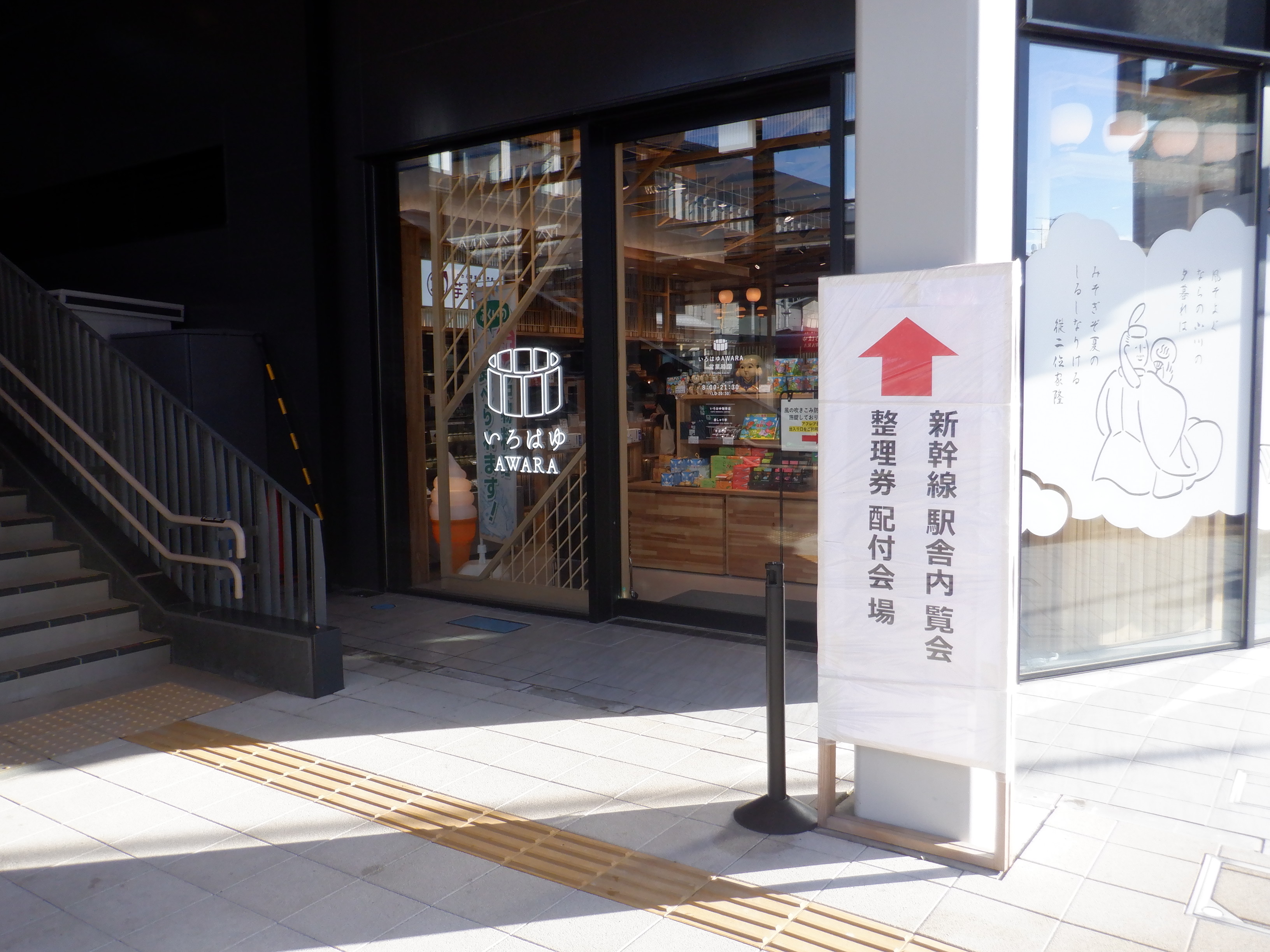 ということで、アフレア内で新幹線駅舎見学会の整理券を受け取り(本当はすぐに受け取っていました)、芦原温泉駅の新幹線駅舎見学会を見に行きます。