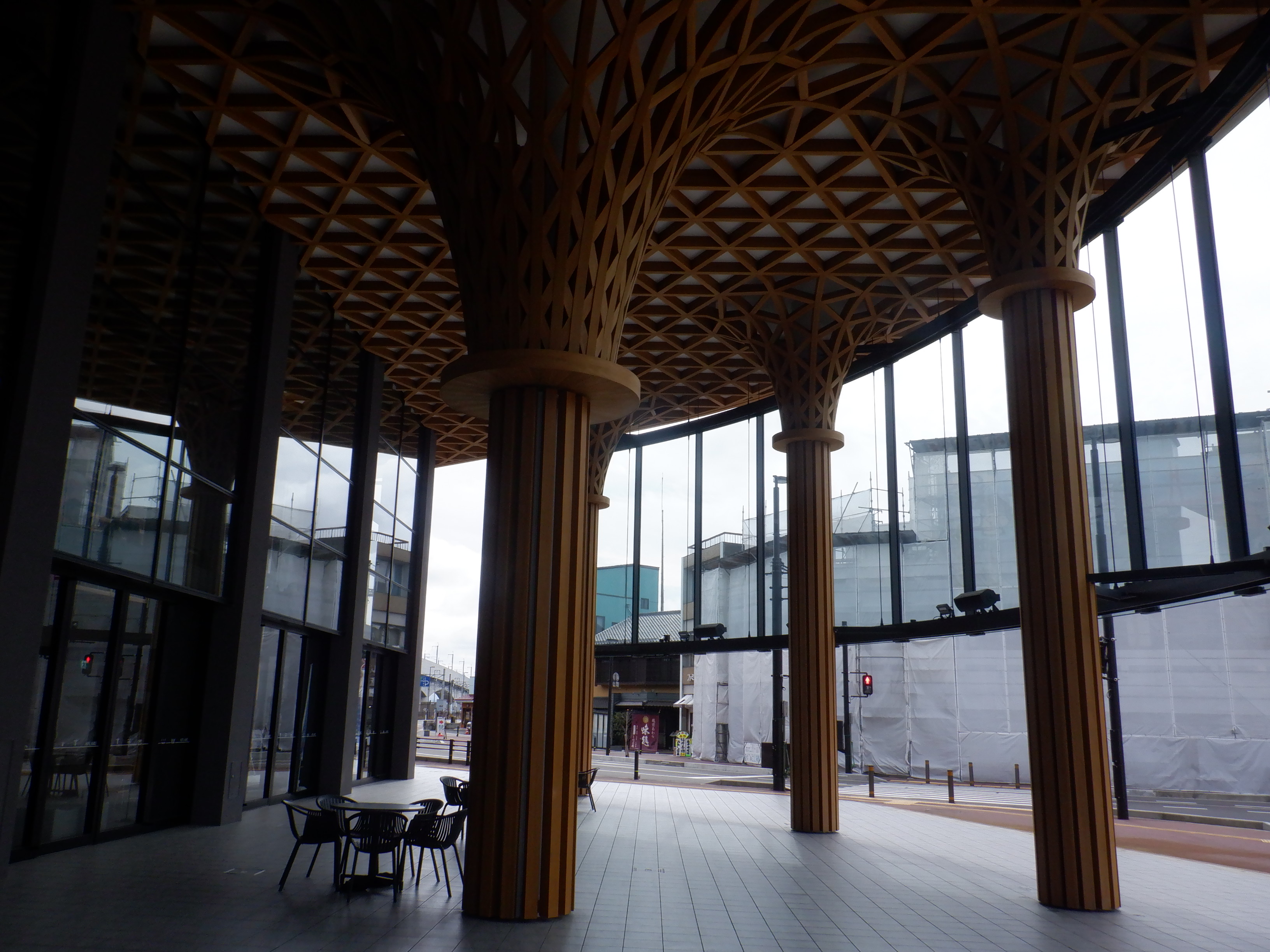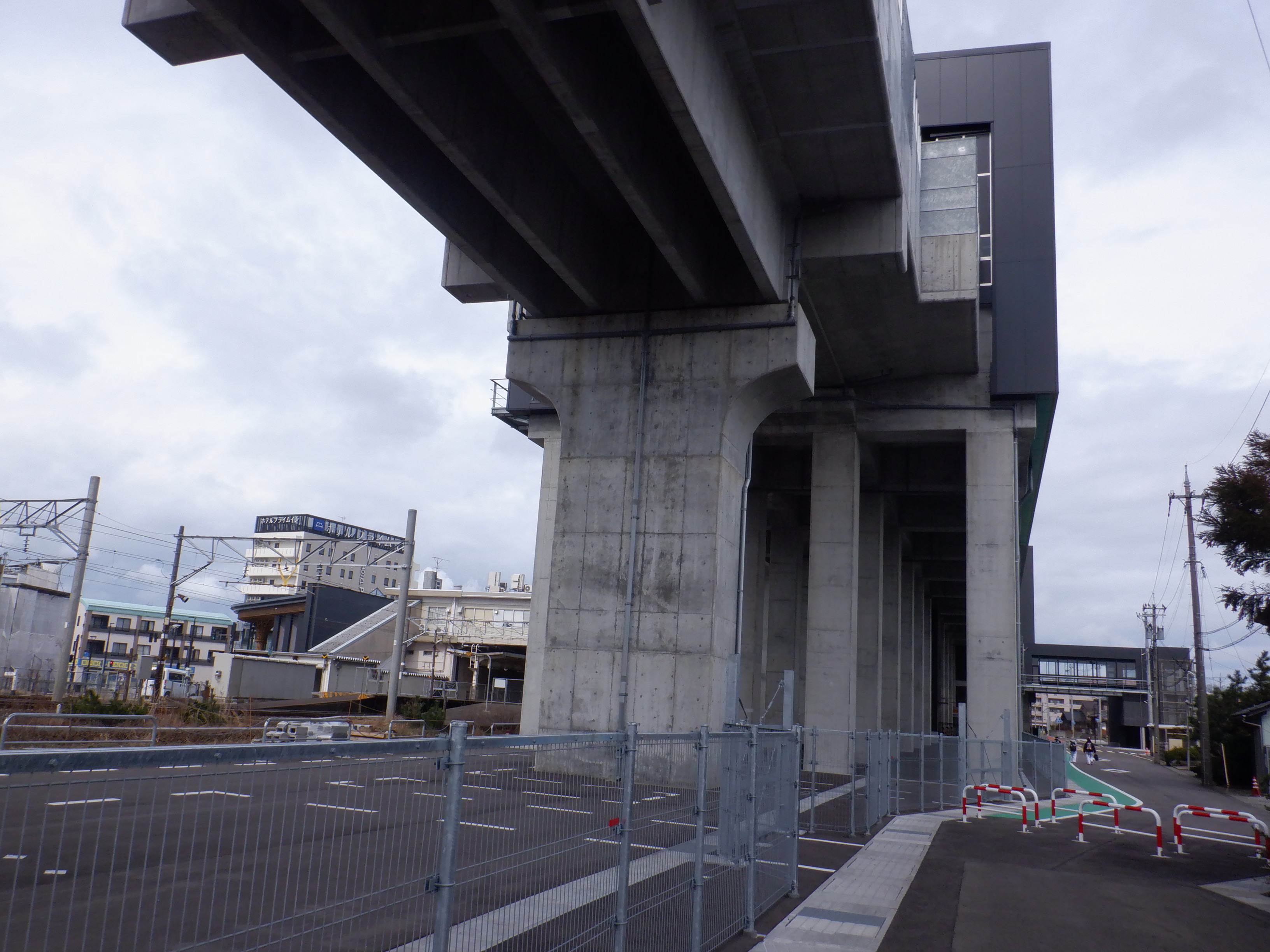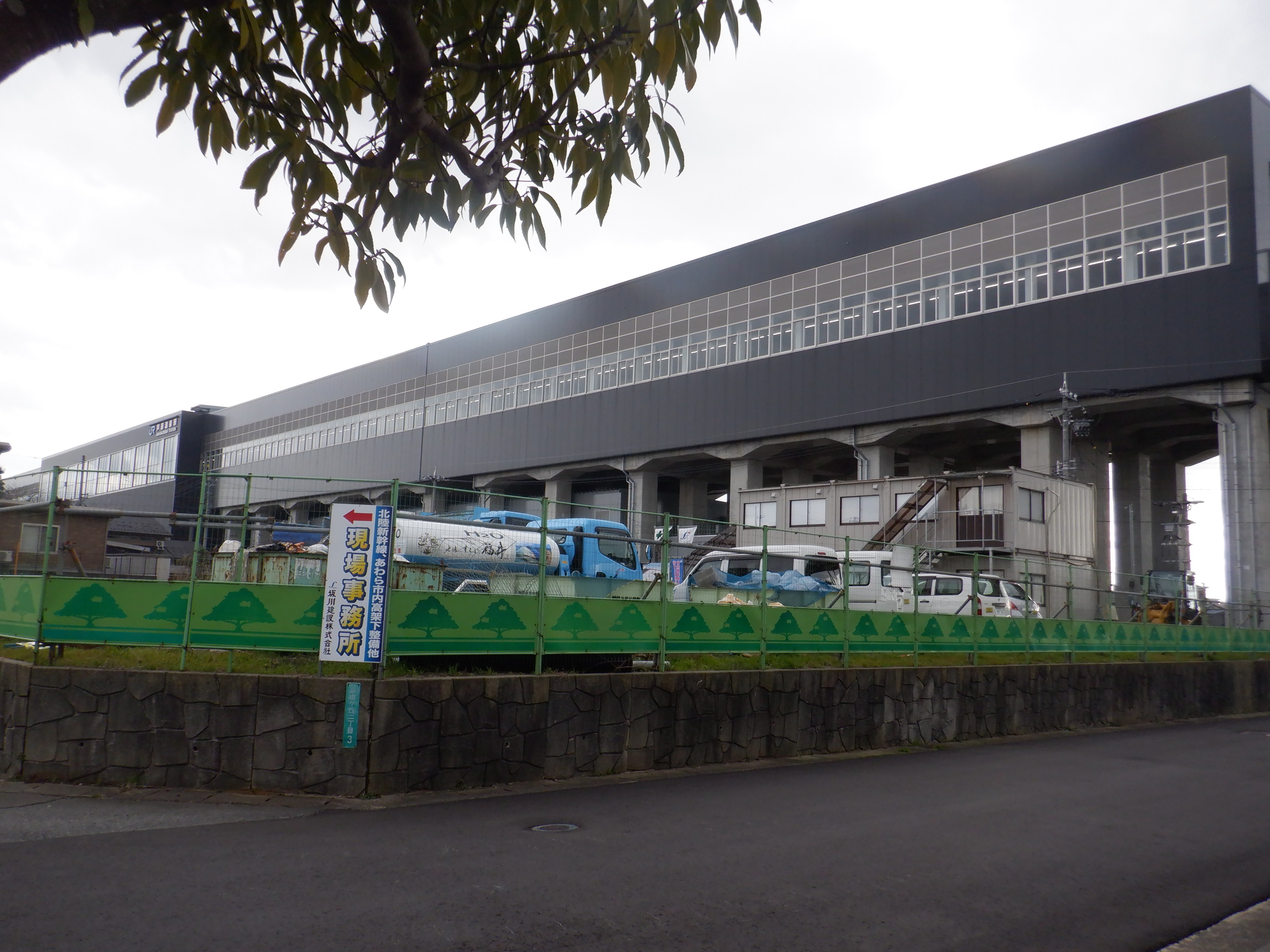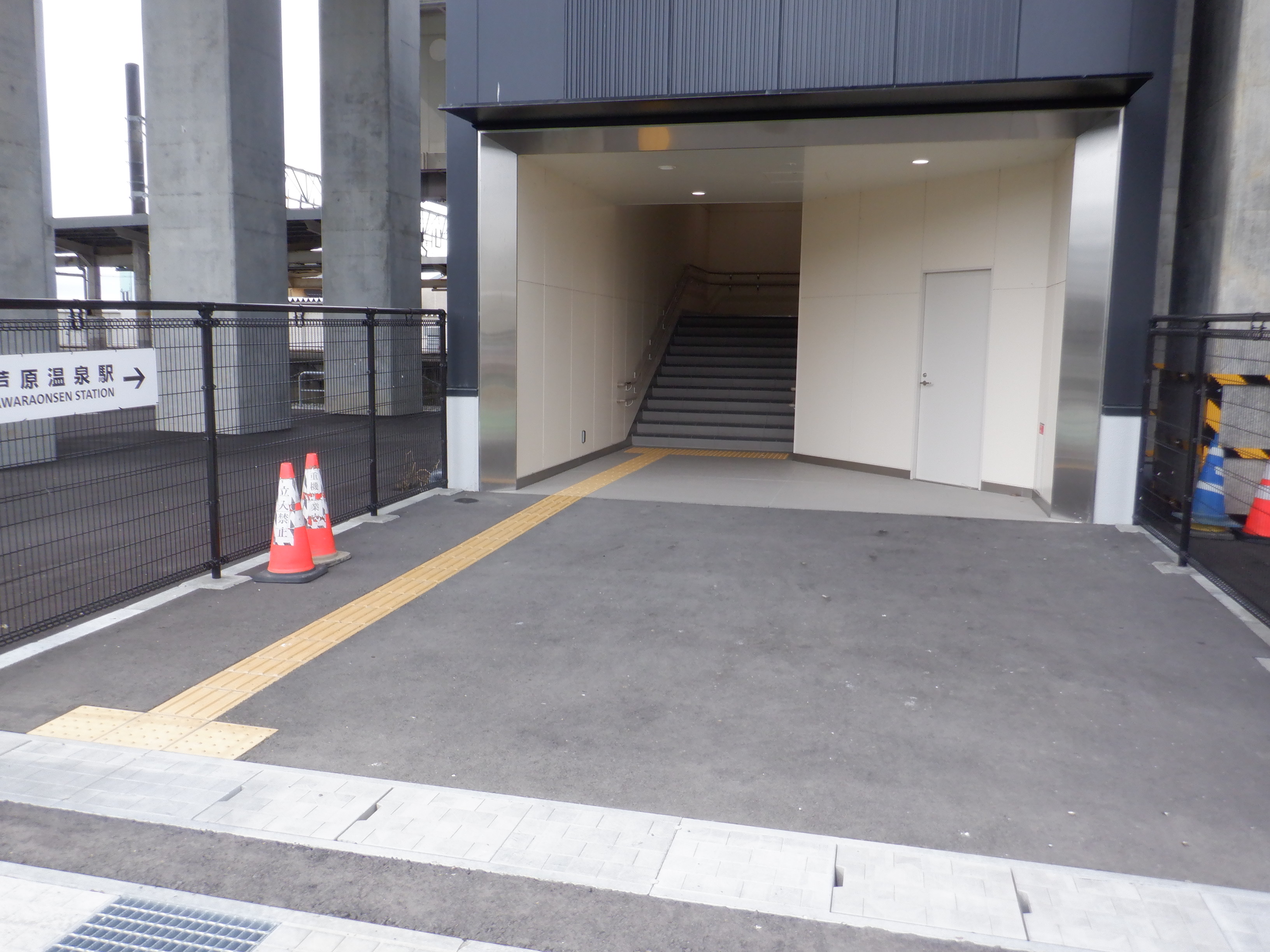囲いがされていた駅前の飲食店だったところ。新幹線開業を前に閉店し、表を整備して誤解を与えない形になったようです。