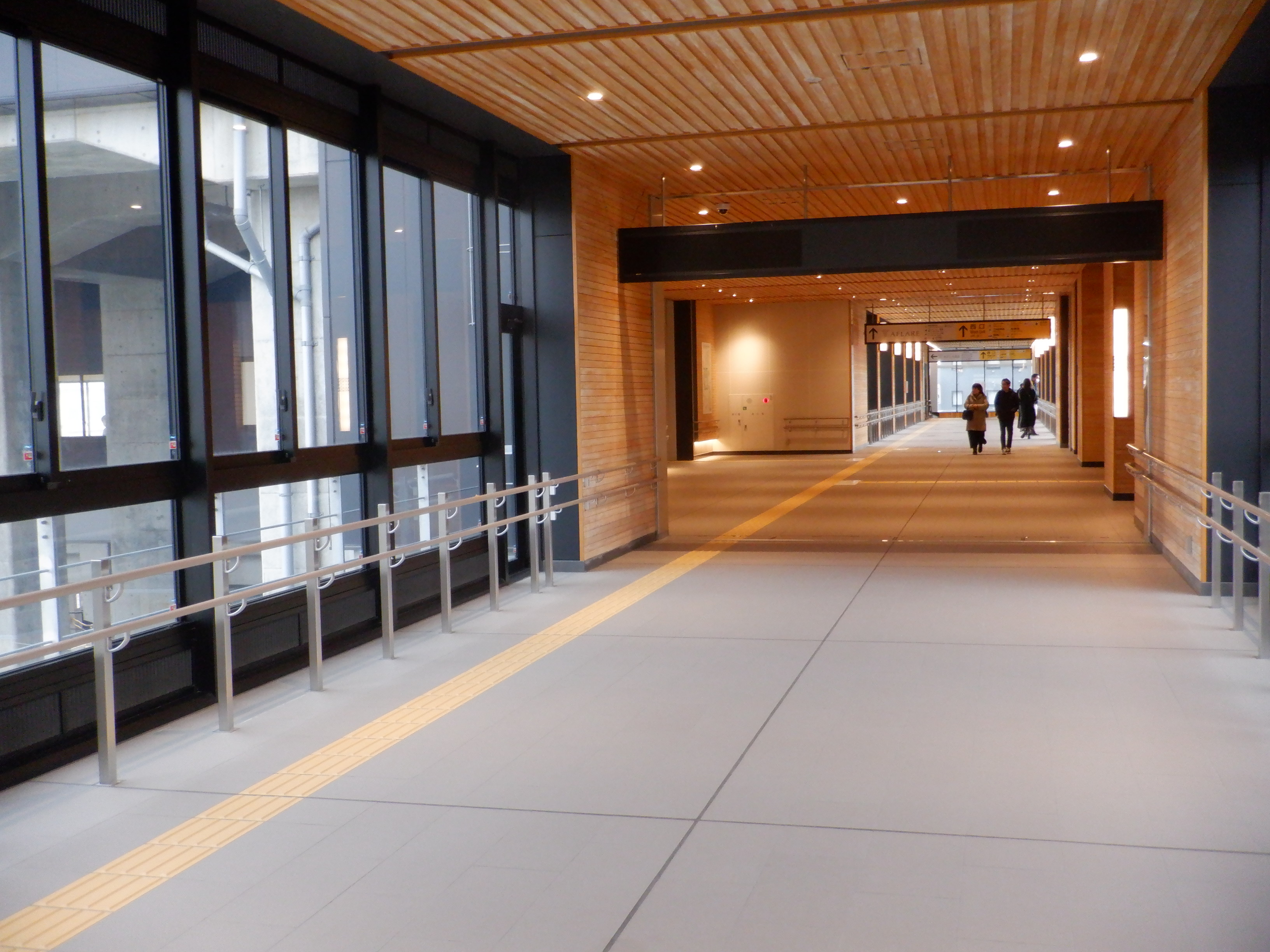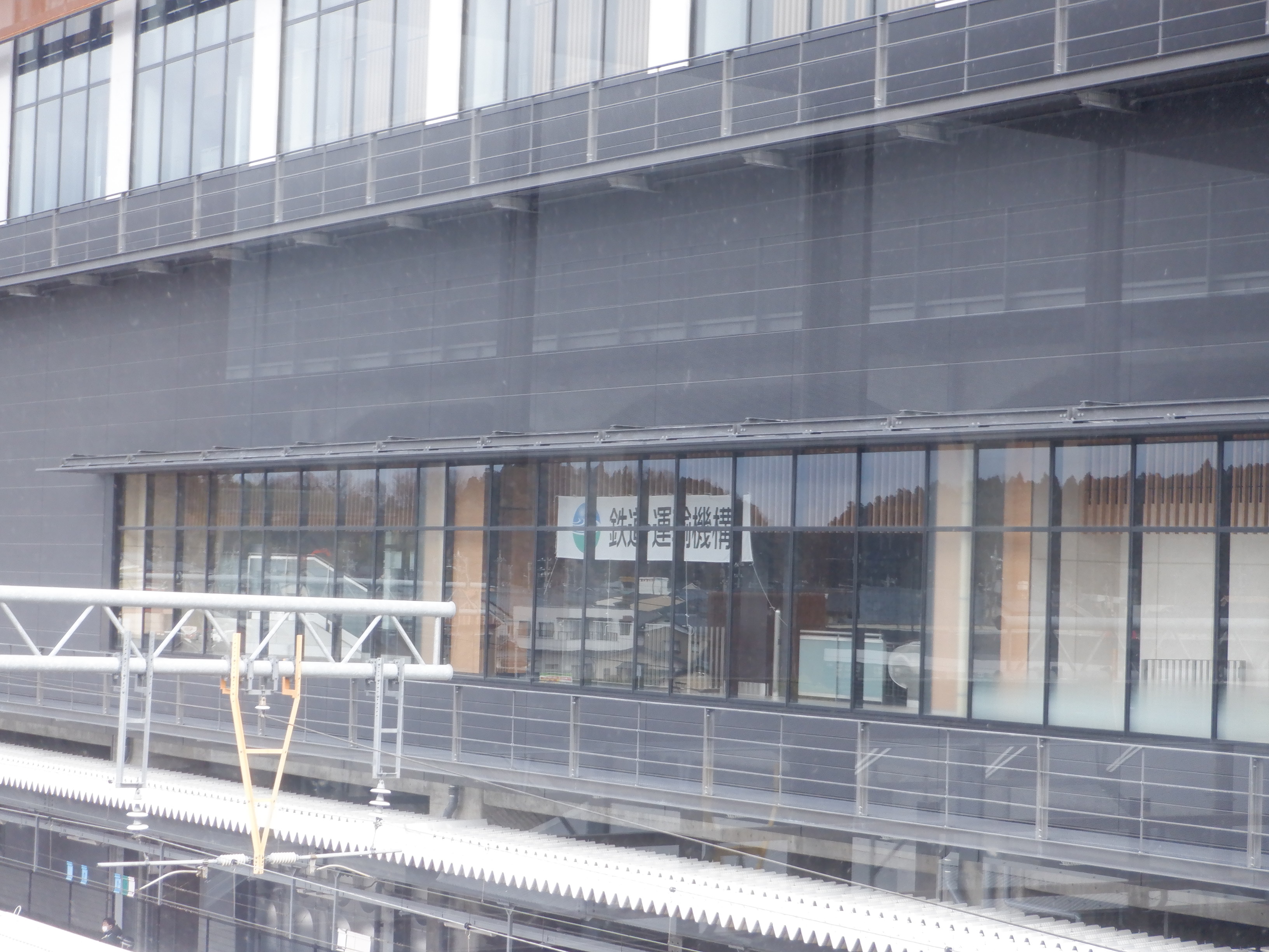 自由通路を通ります。新幹線のりばには「鉄道・運輸機構」の表示があります。