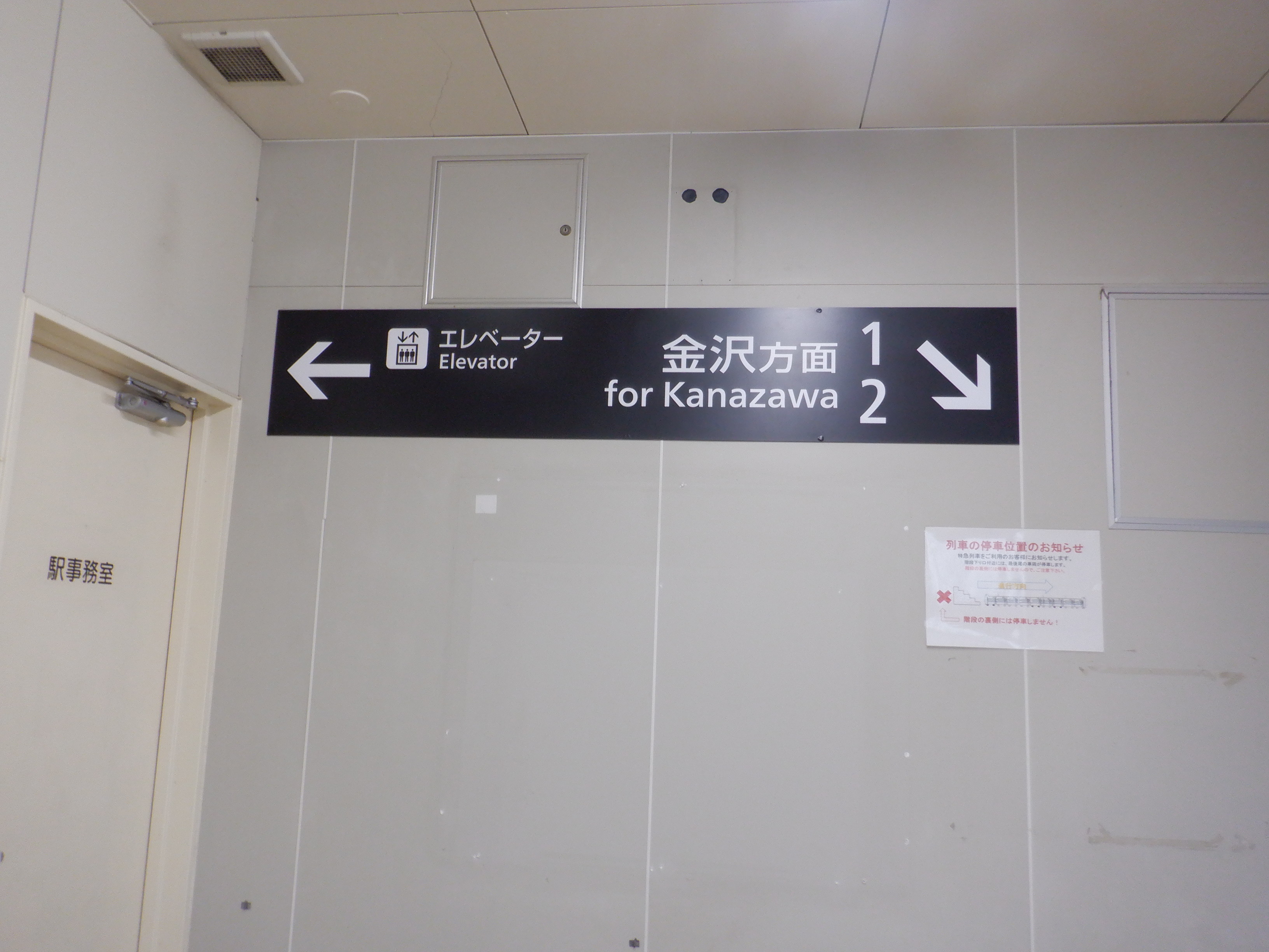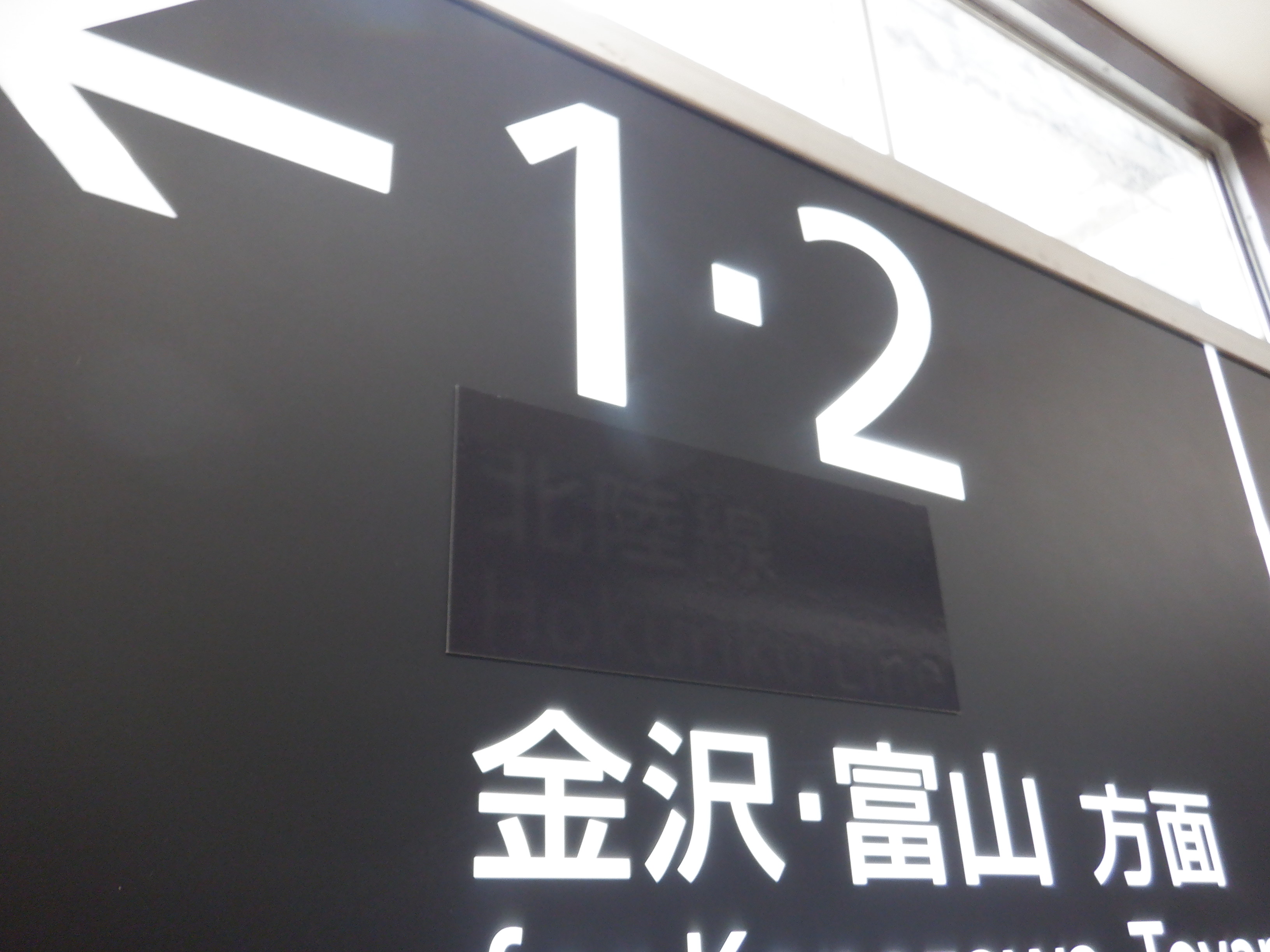 改札口から入ったところの案内も「北陸線」が隠されています。