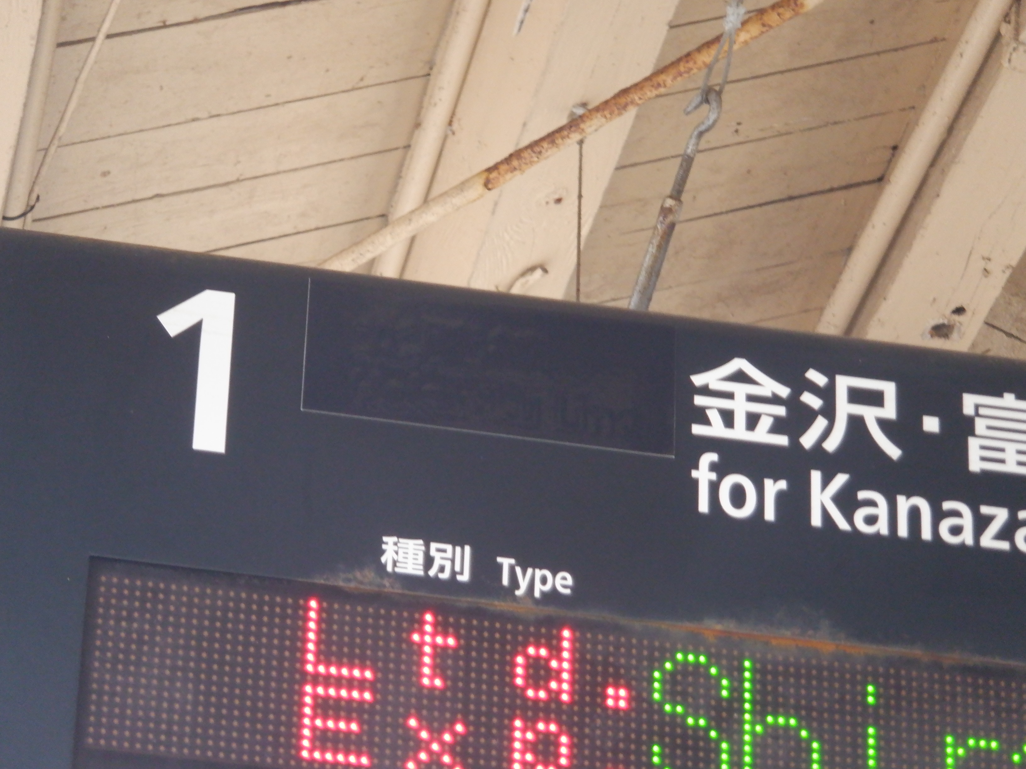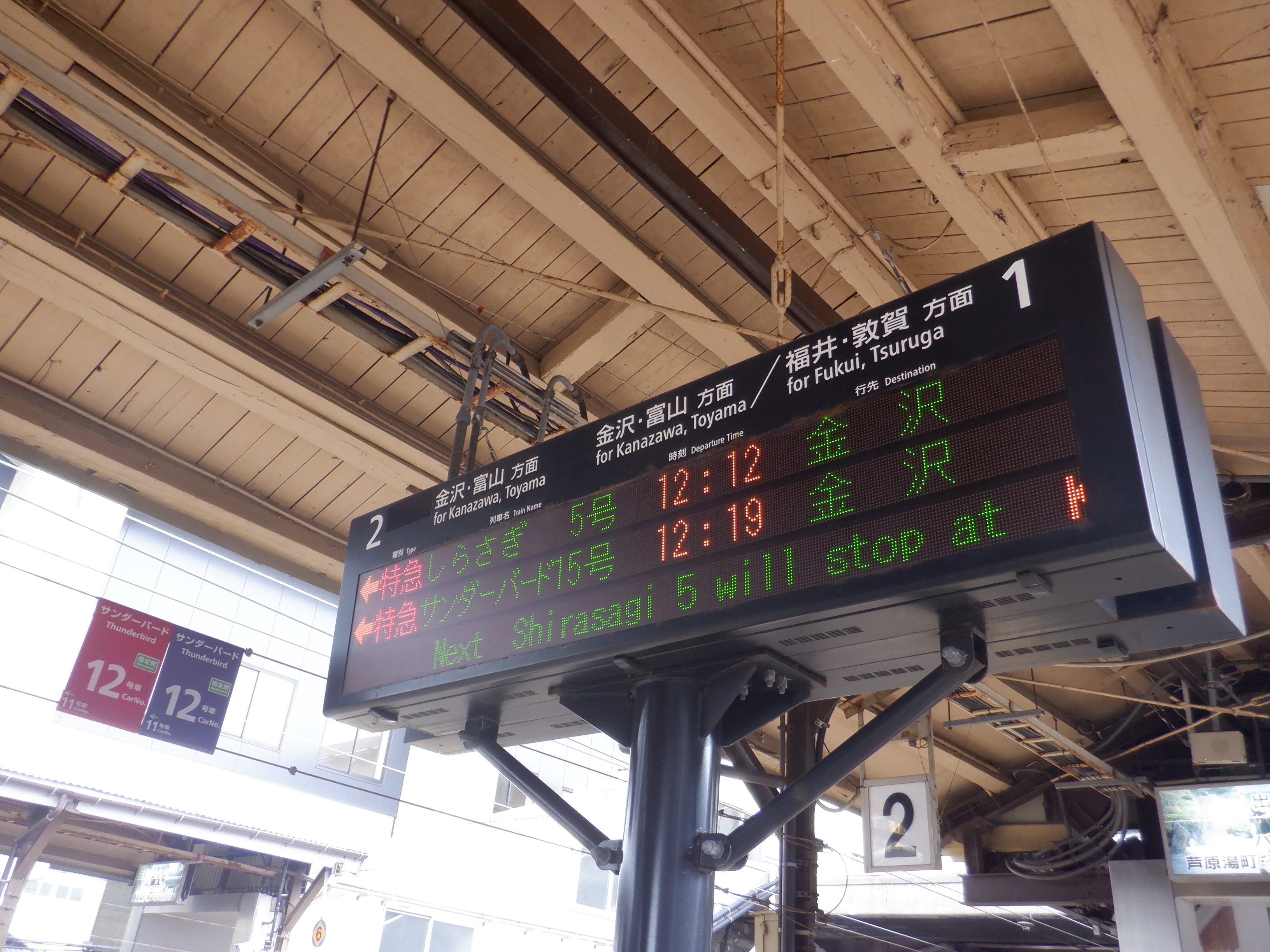 1・2番のりば発車標も「北陸線」が隠されています。(前回気づかずに片方だけ撮っていました)