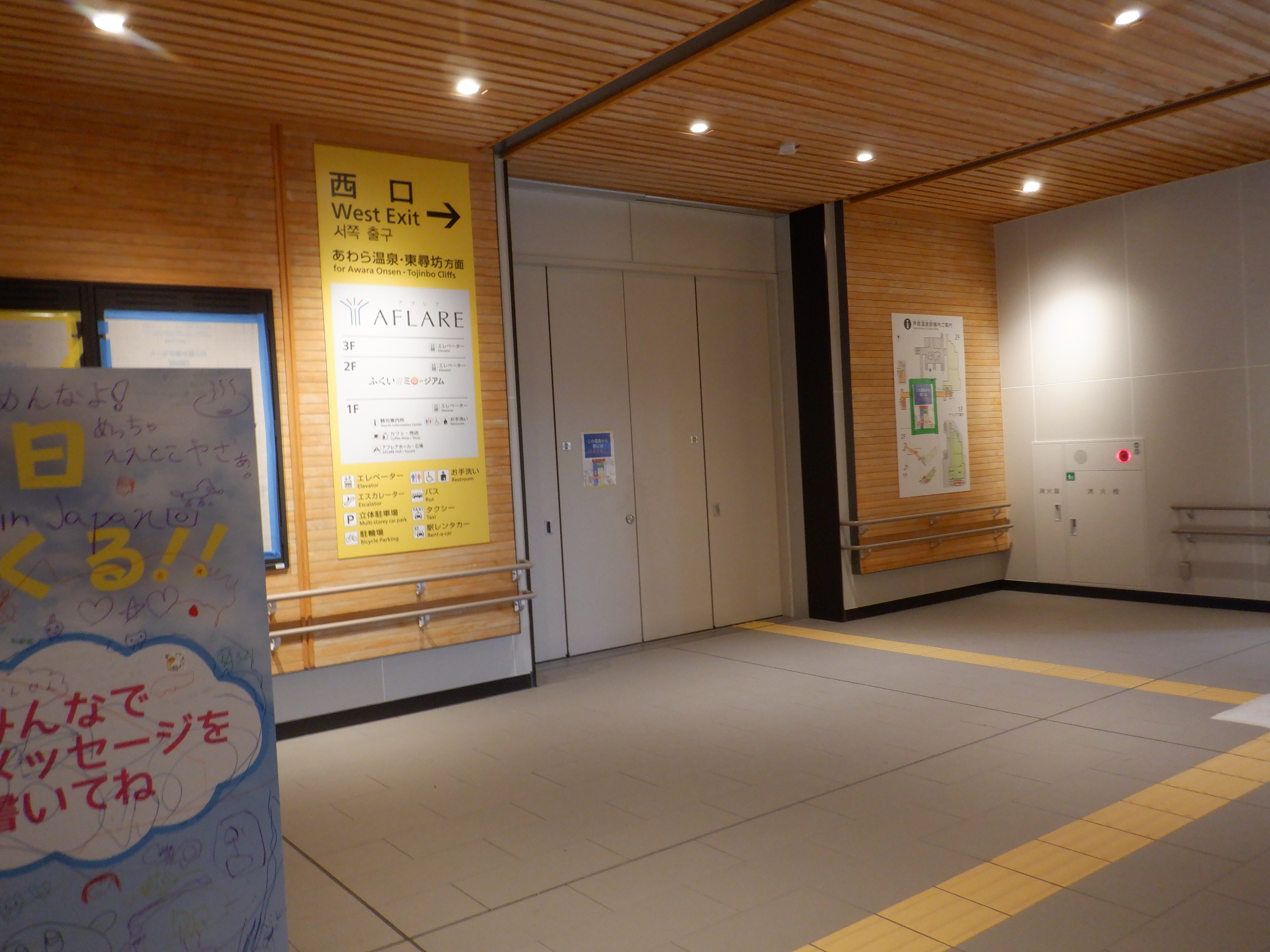 西口の丸岡駅側出入口。ここにハピラインふくいの第一種駅名標が設置されました。