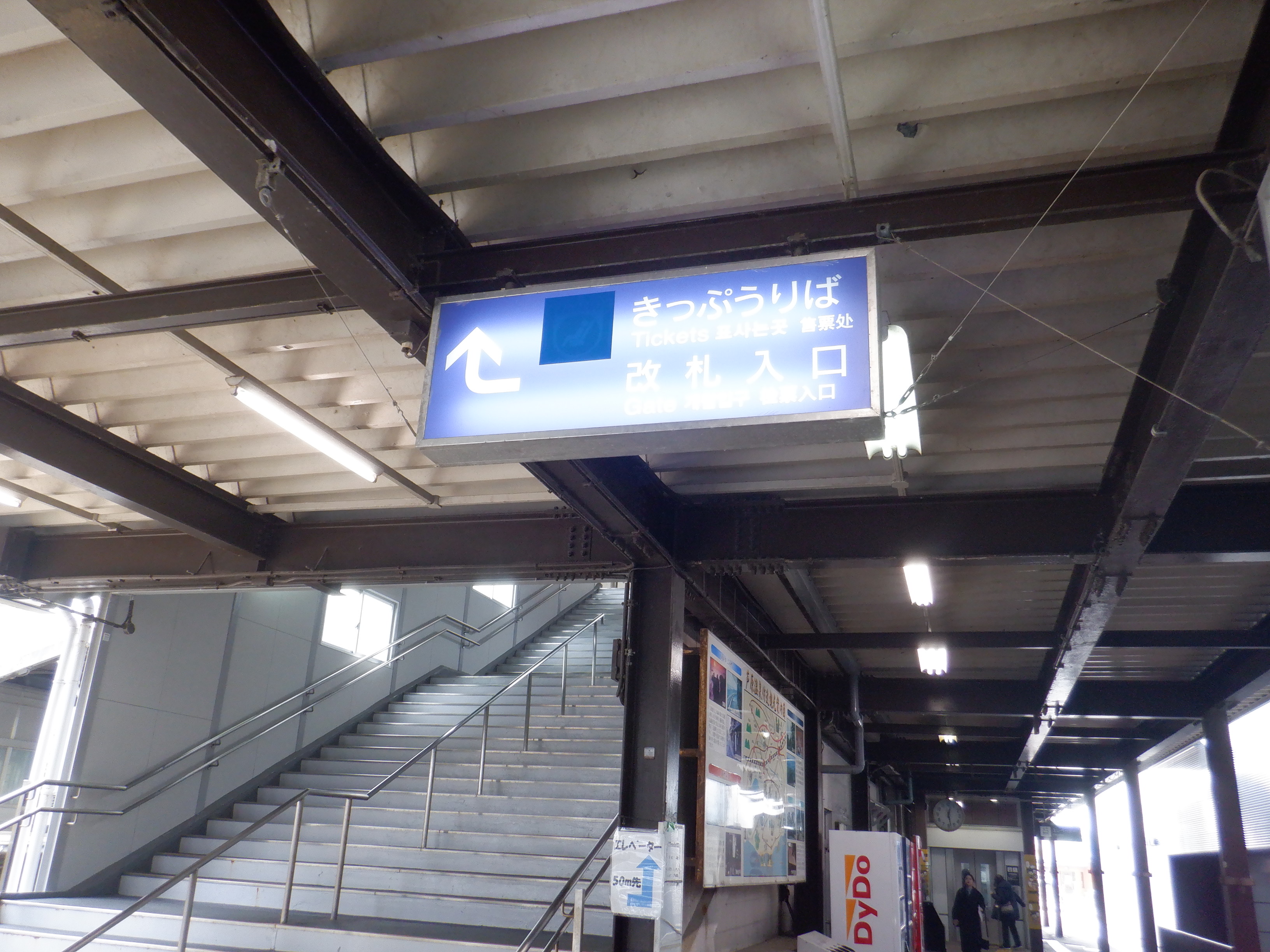 東口の出入口付近。「きっぷうりば」のみどりの窓口のマークが隠されています。
