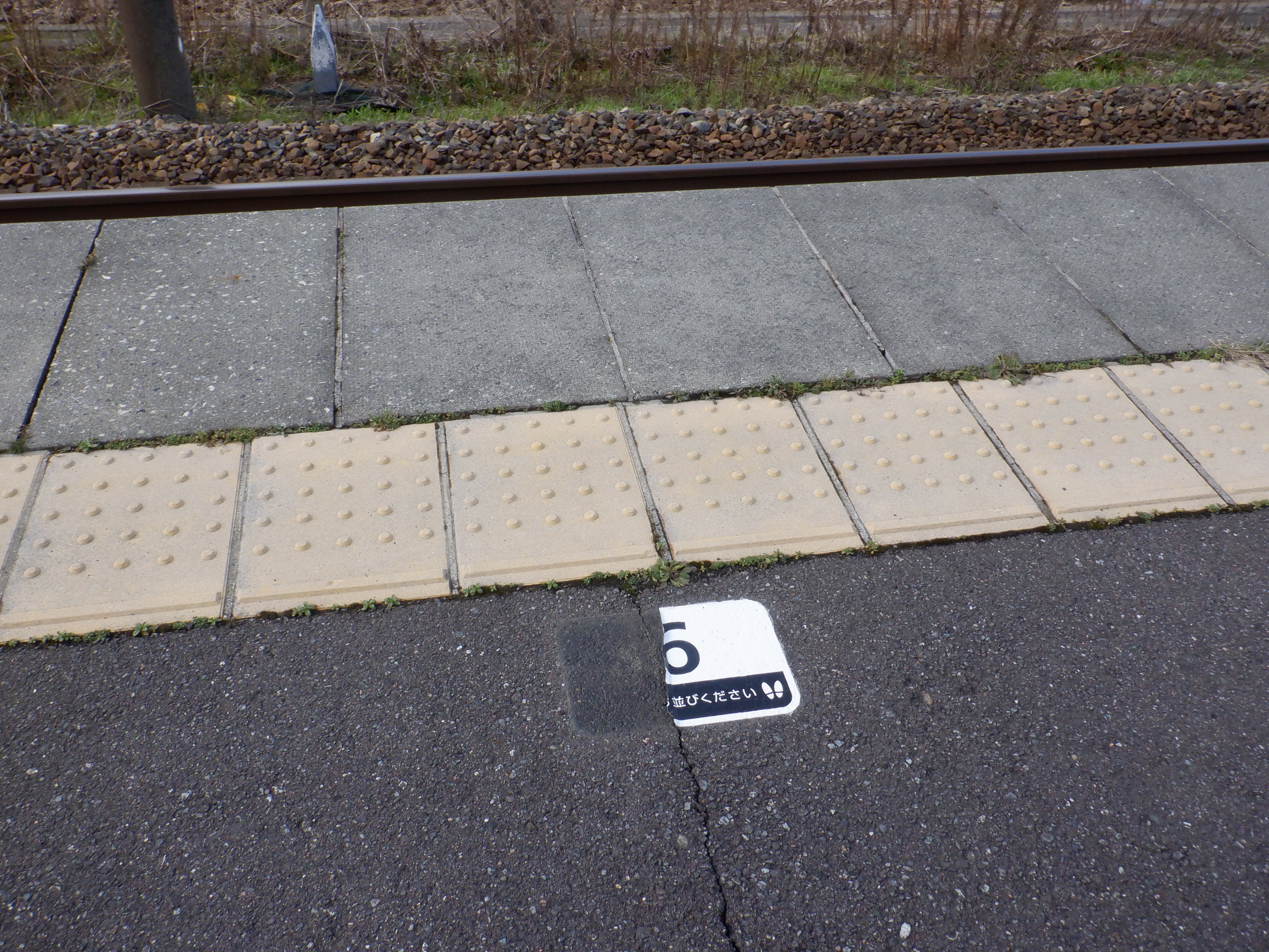 先日取れかけていた乗車位置案内6(6両編成用なので不使用)ですが、取れかけていた部分だけ取れていました。
