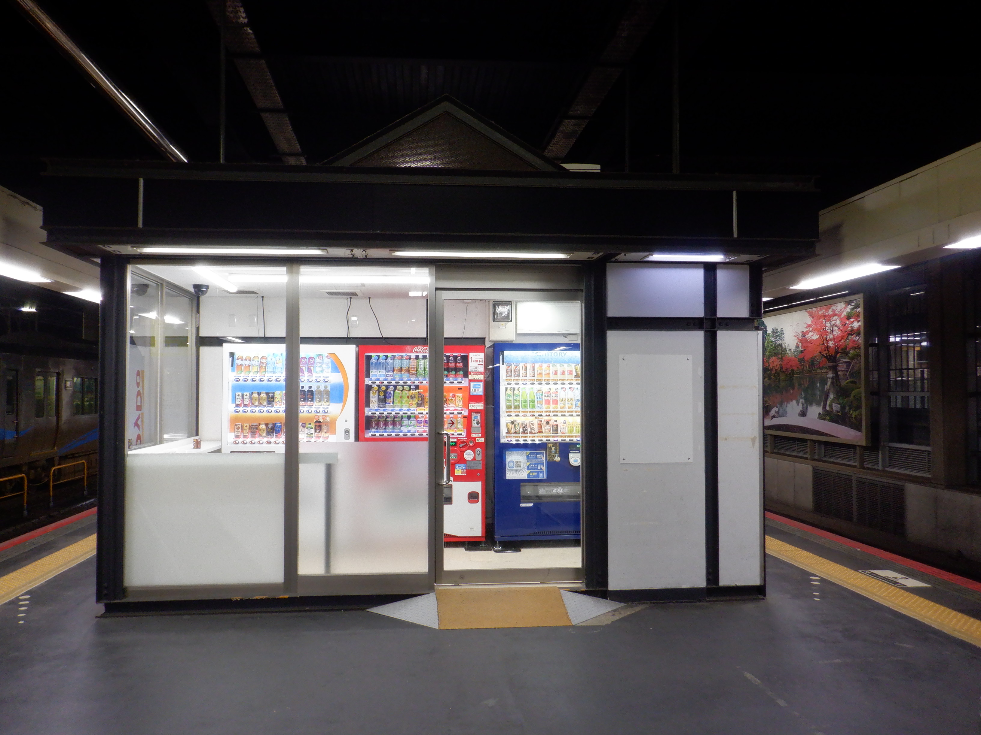 1・2番のりばのセブンイレブンの自販機だったところは通常の飲料自販機が入り、大友楼さんだったところは蓋がされました。