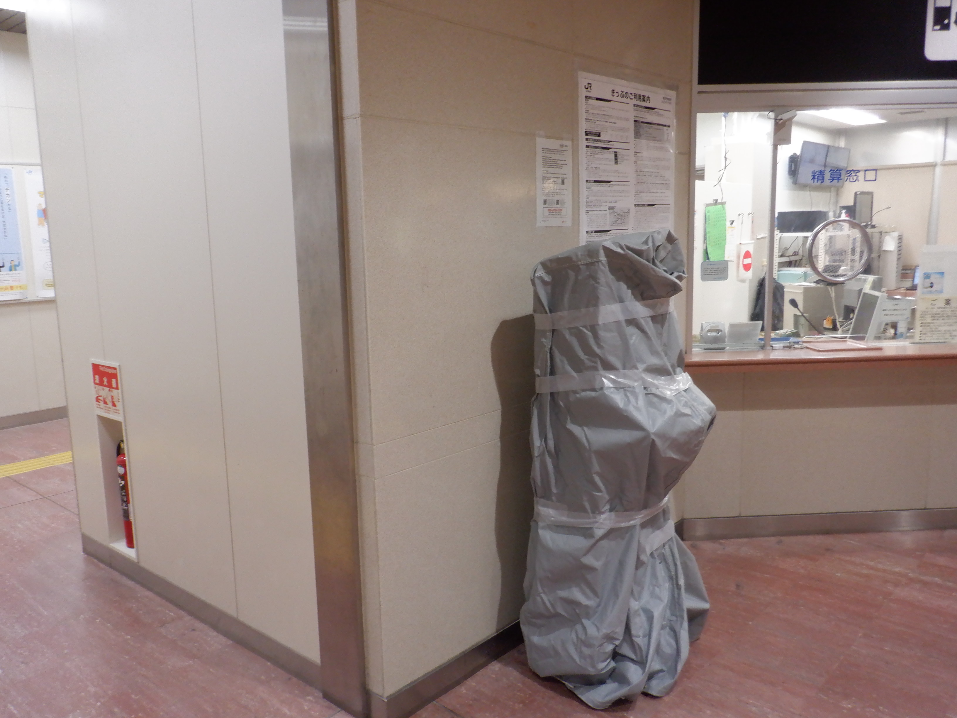 あんと改札口閉鎖の案内と券売機があったところ。