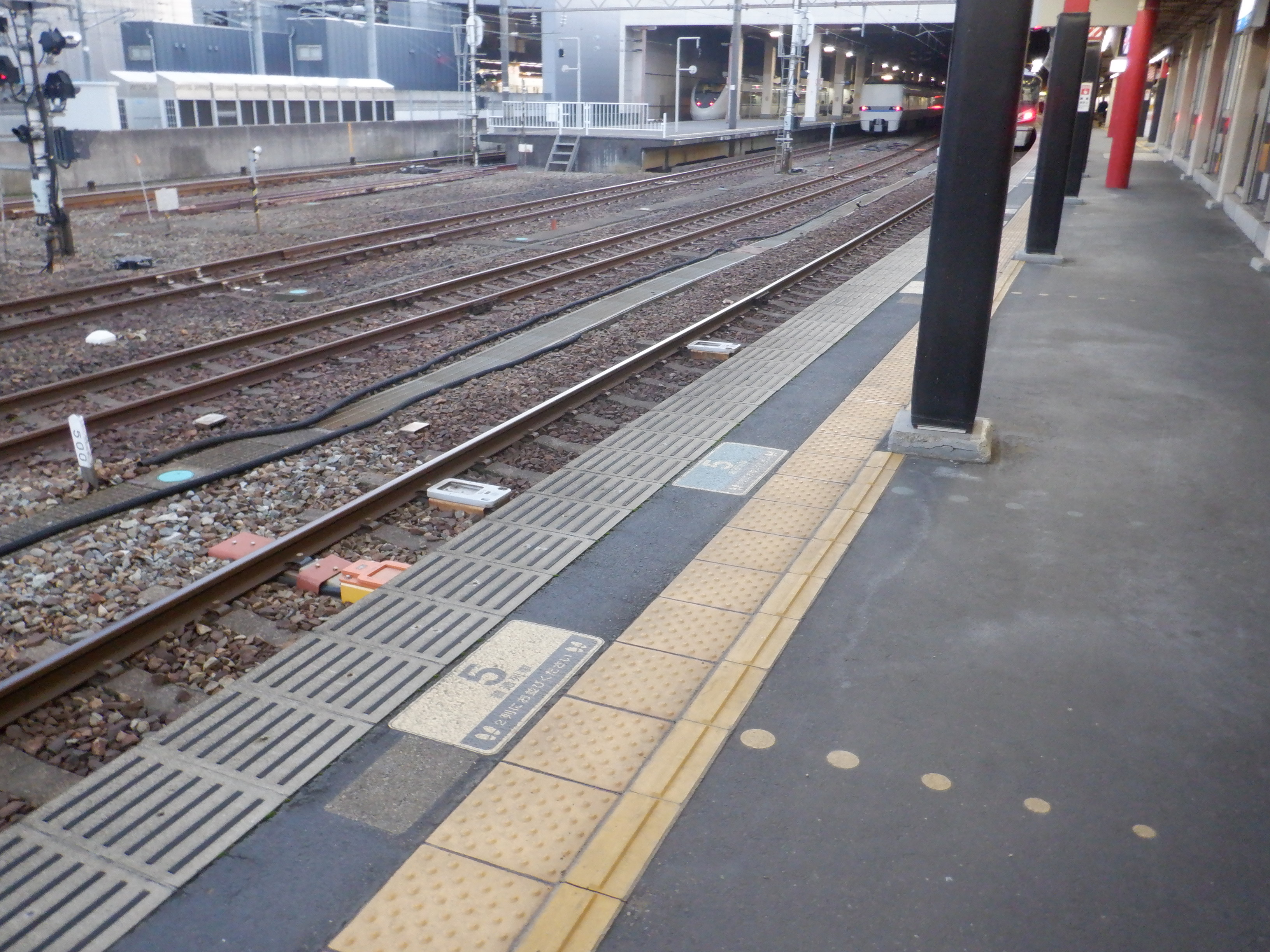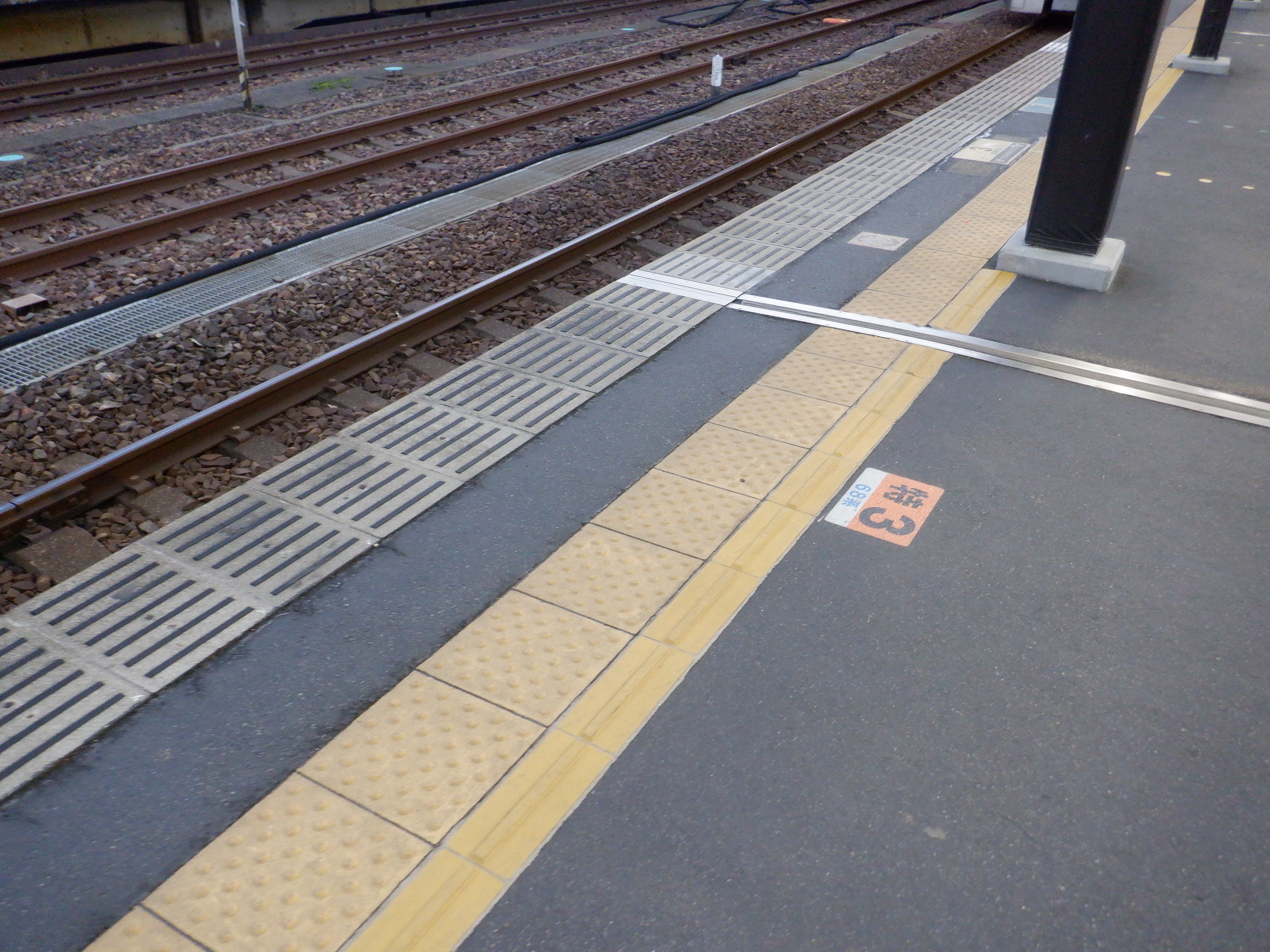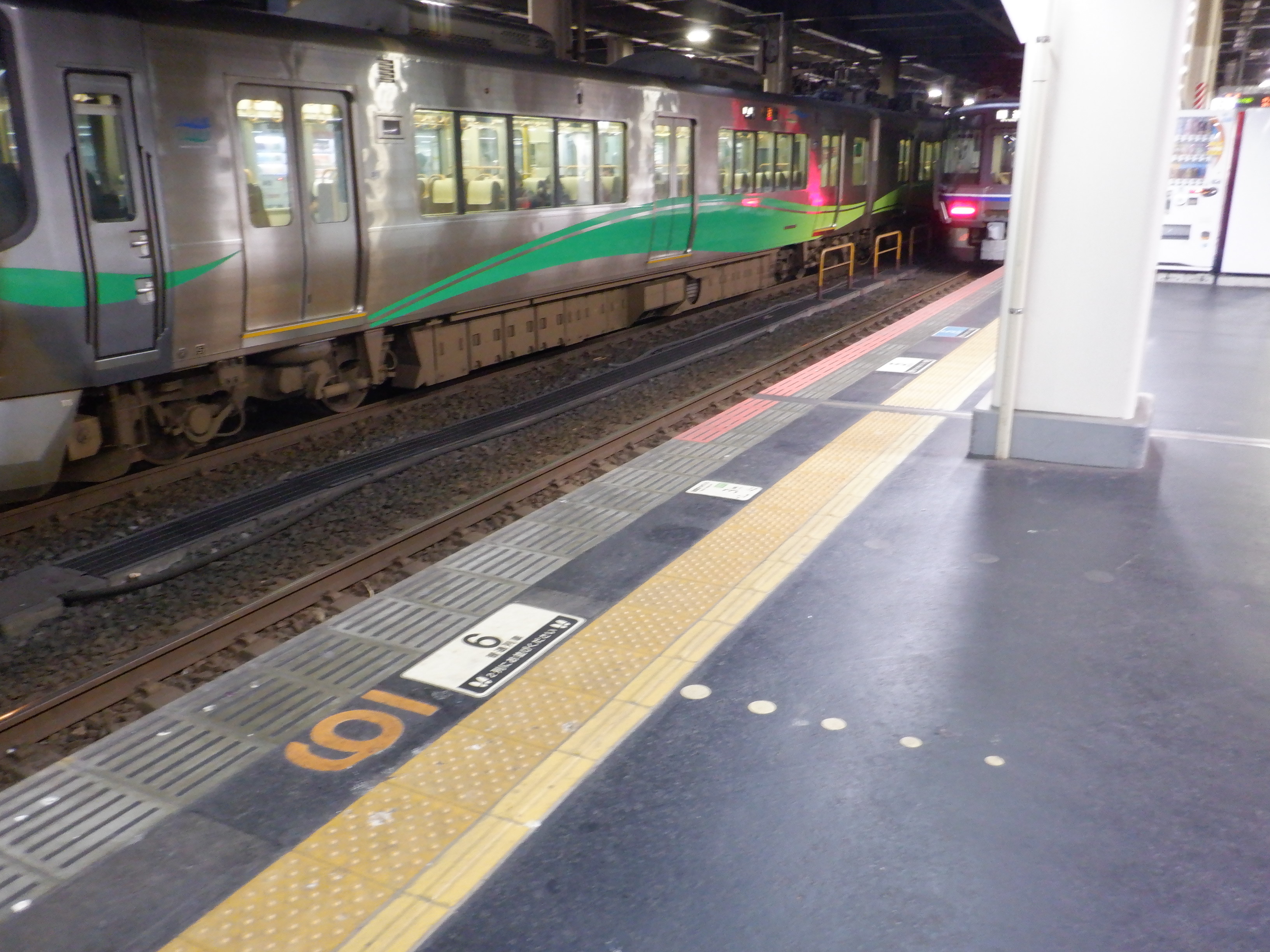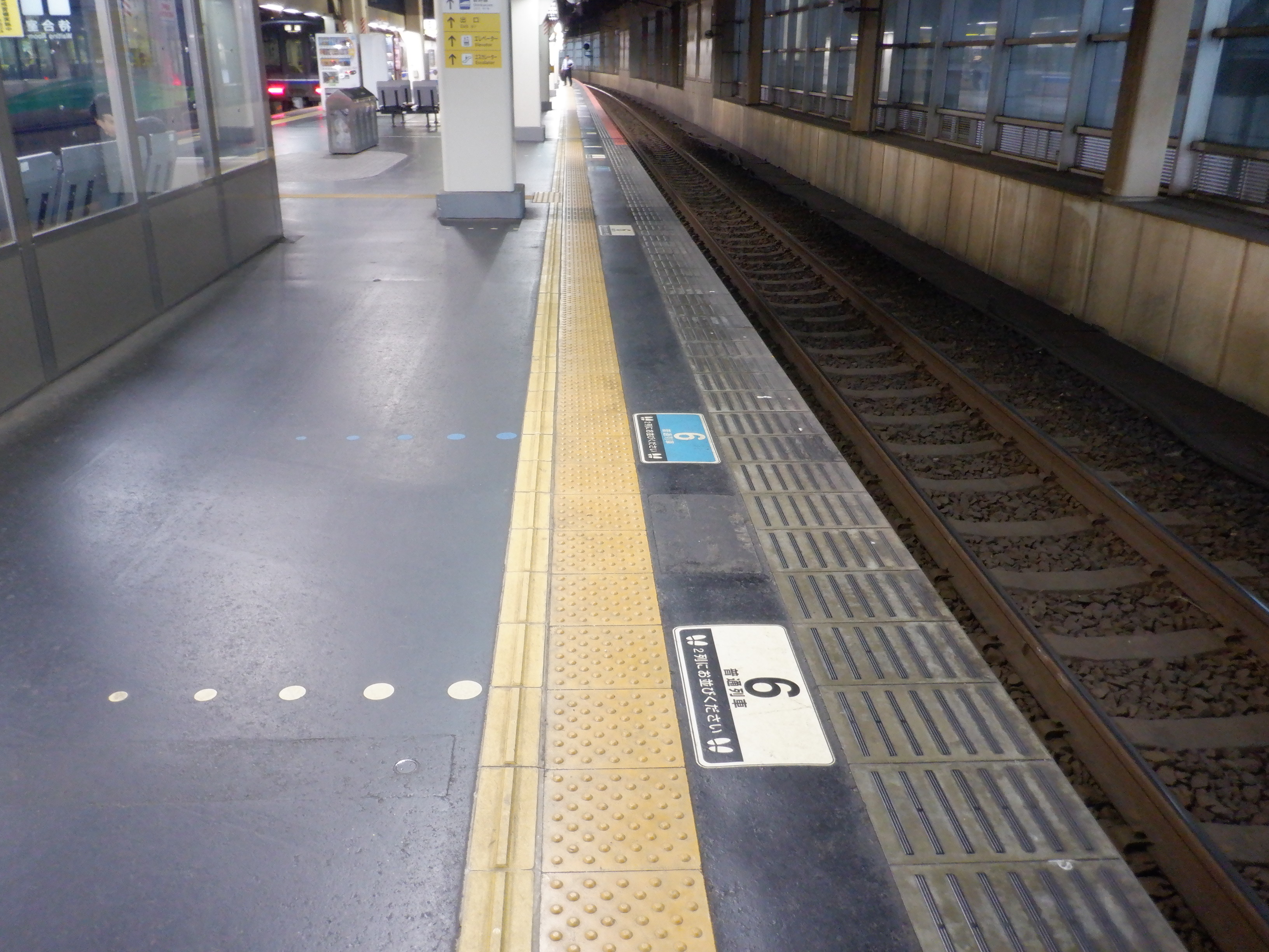 6番のりば中程の普通列車乗車位置案内。