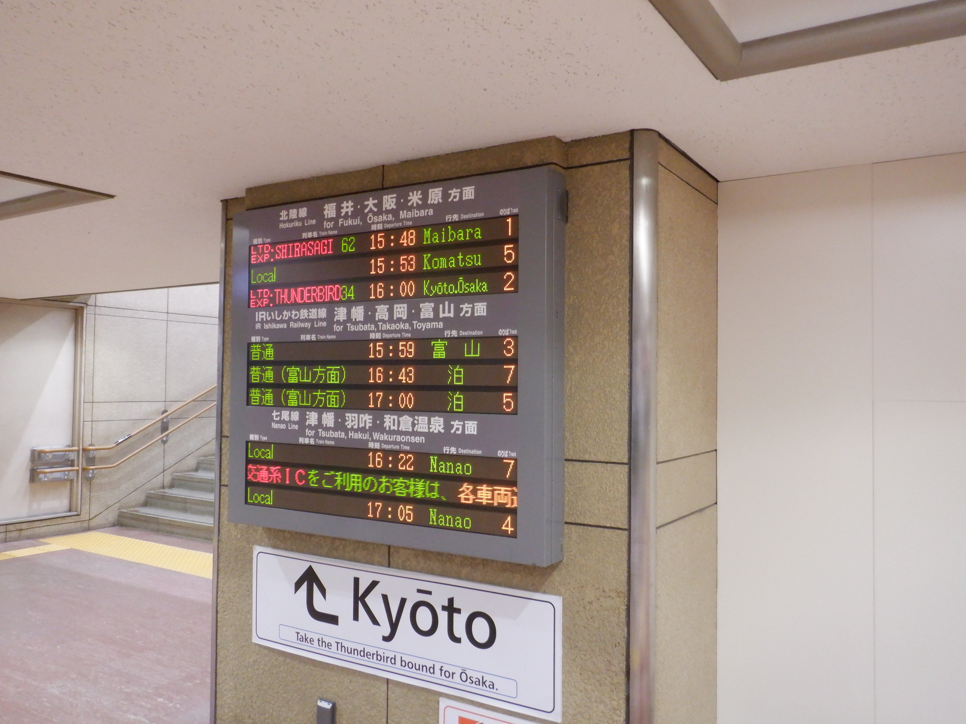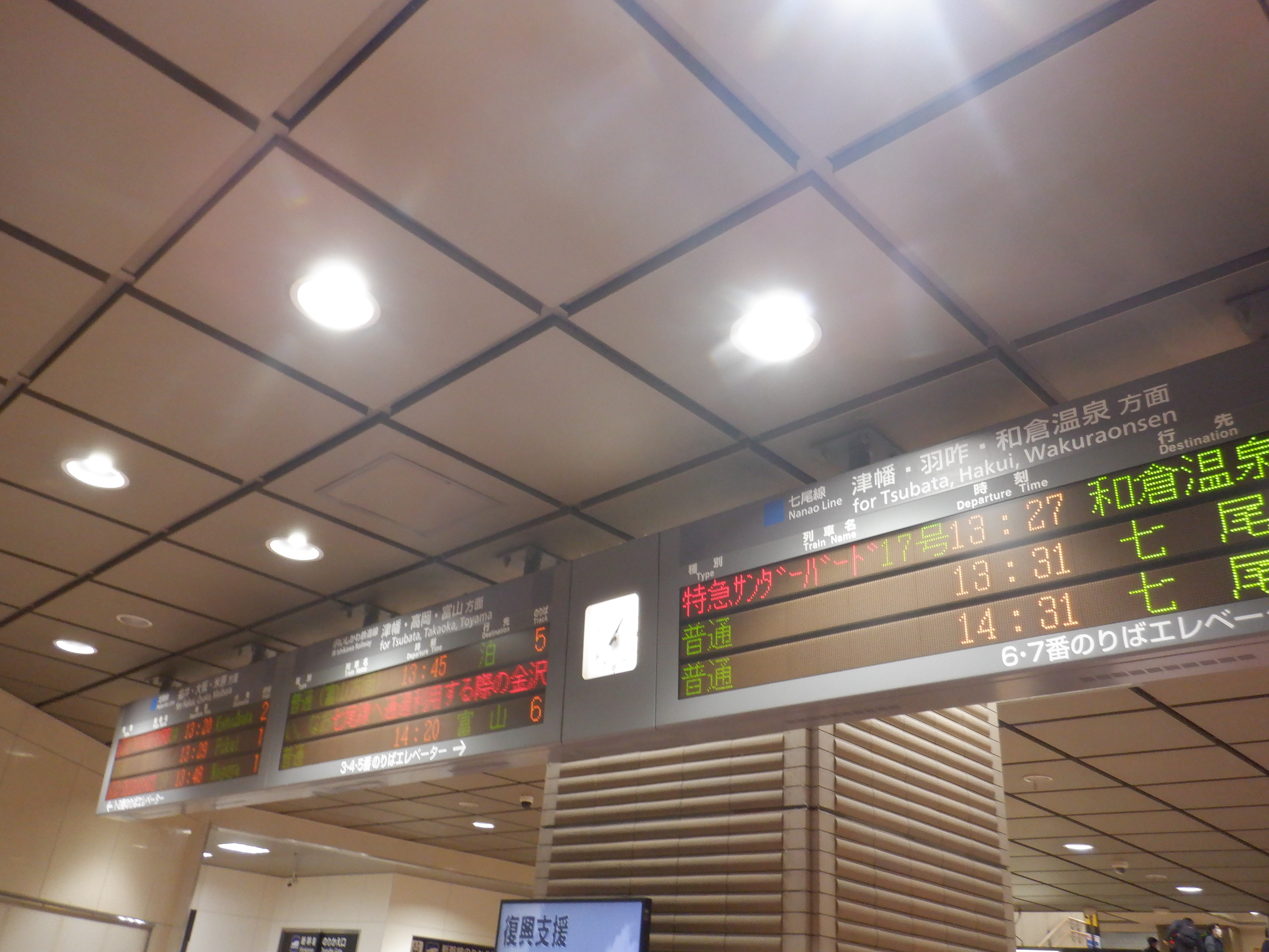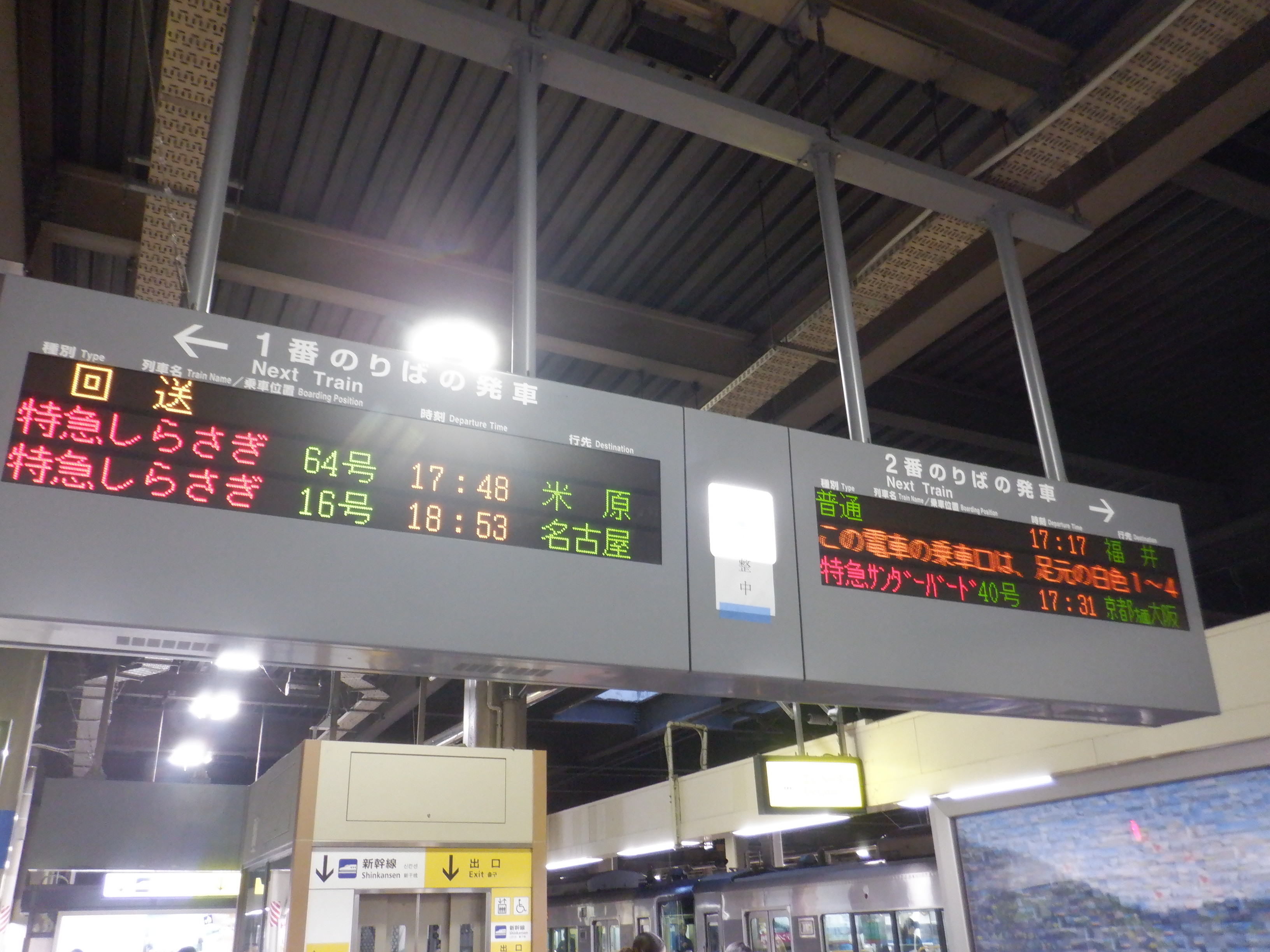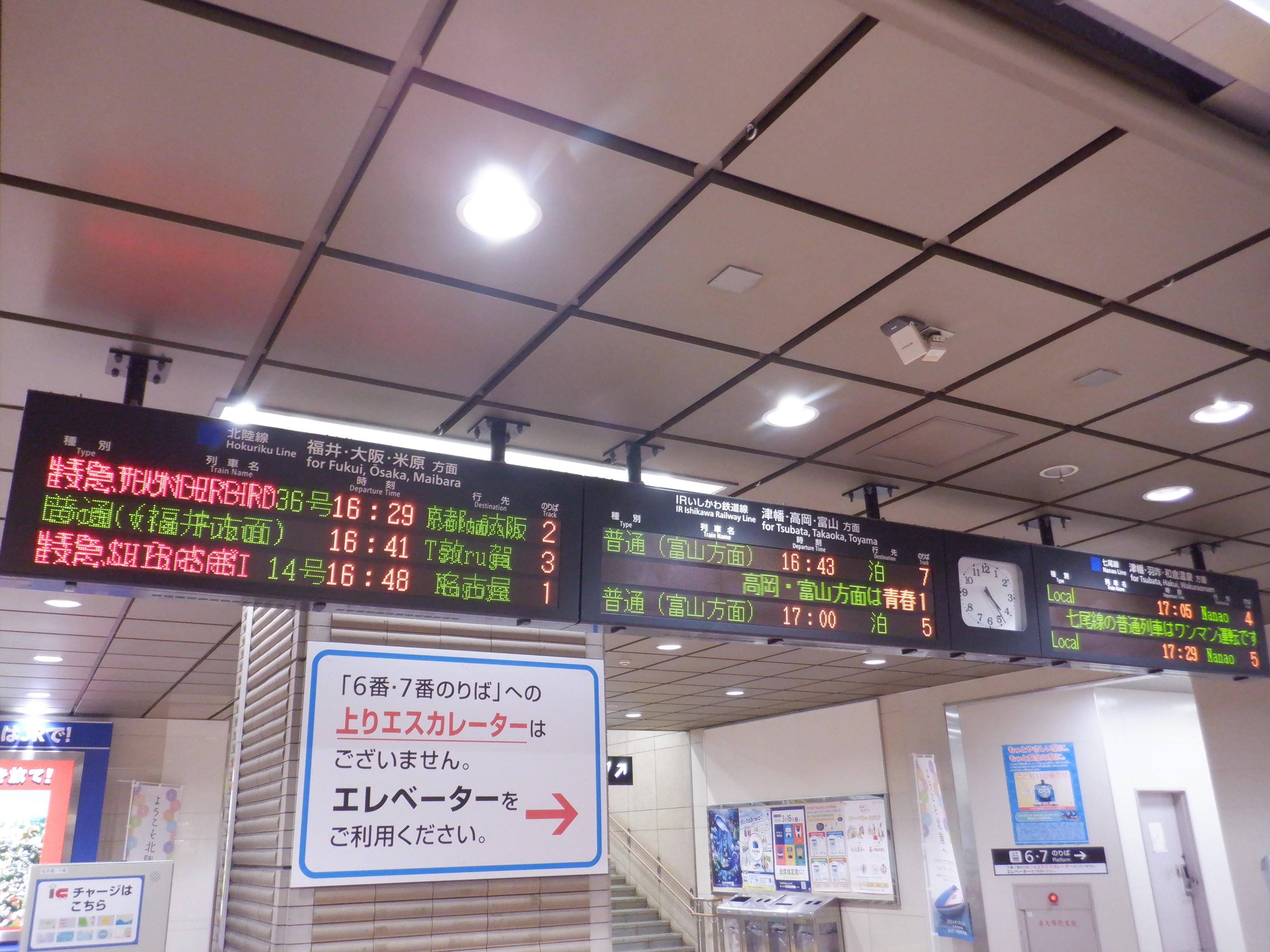 この時点では混乱しているため、サンダーバード17号和倉温泉行きの案内はそのまま掛かっています。(この後変化があります)