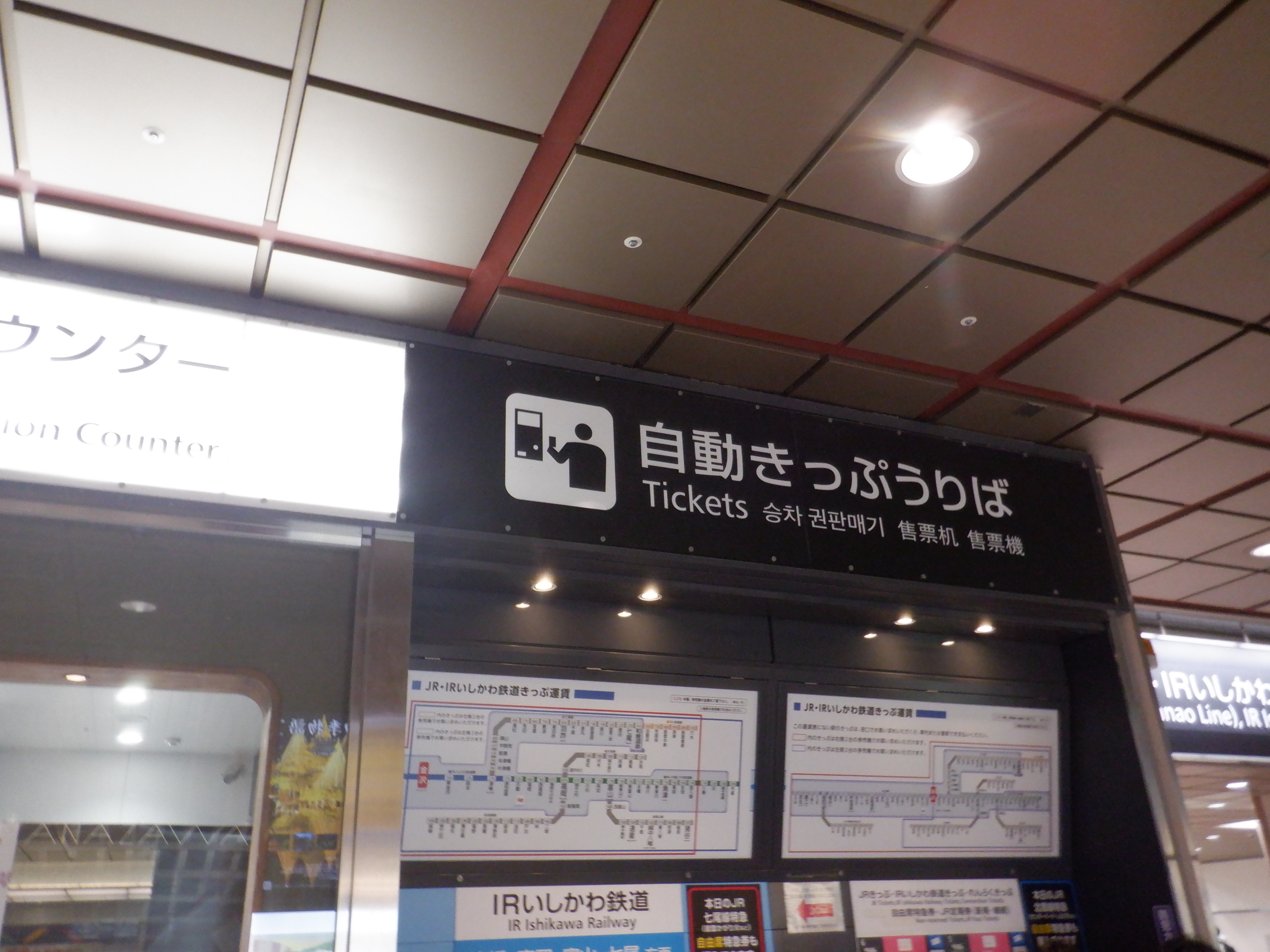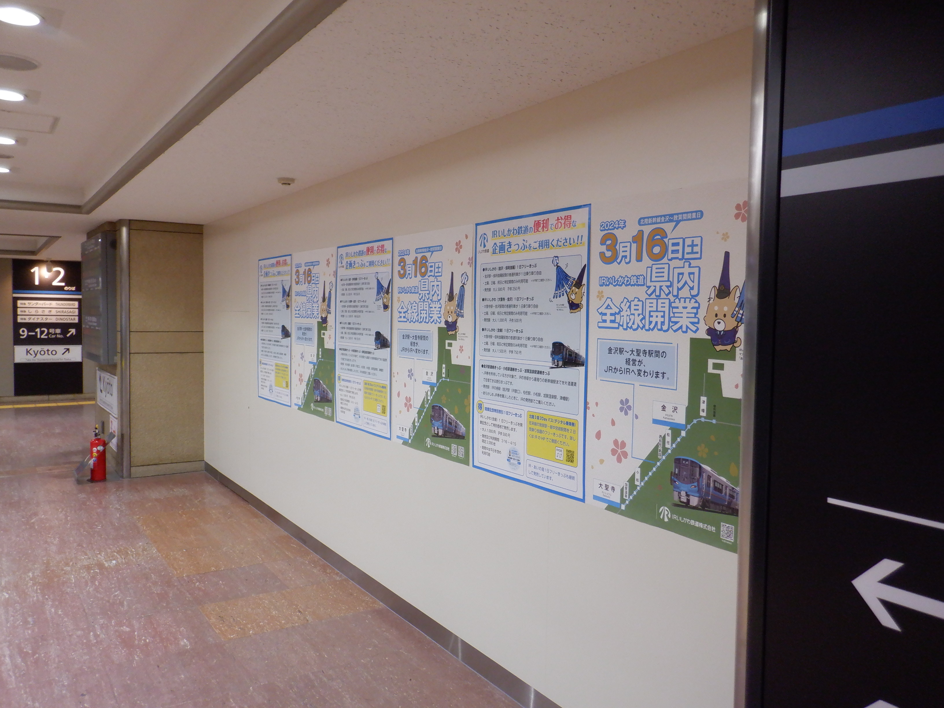 あんと改札だったところはカラーコーンが撤去され、IRいしかわ鉄道県内全線開業ポスターが貼られていました。また、発車標のタイトルのところも何か貼られているようです。