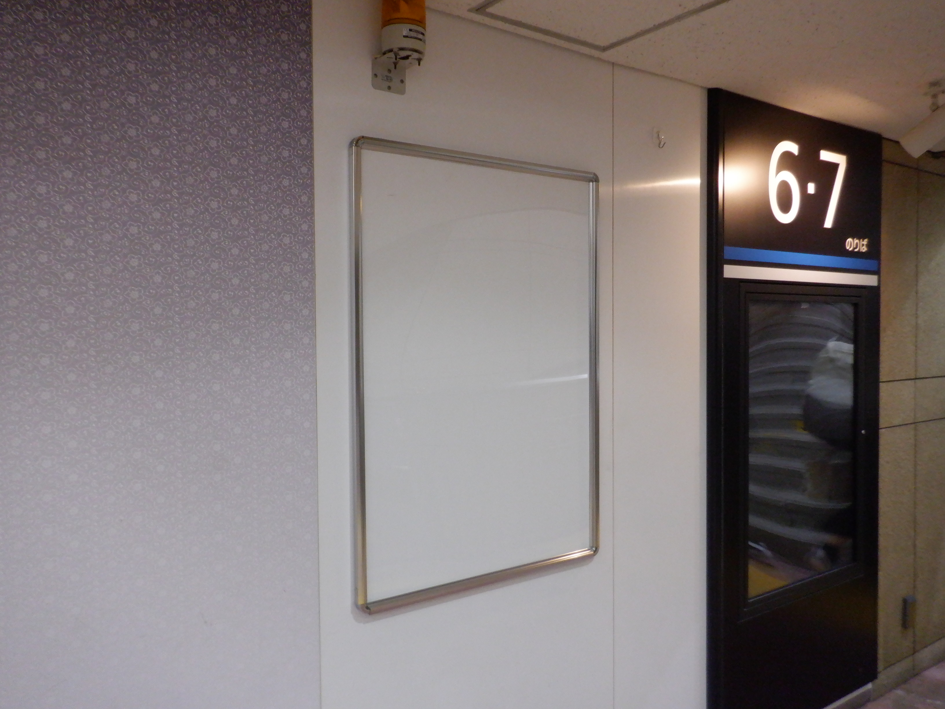 改札口のところの案内。何か貼られているように見えます。