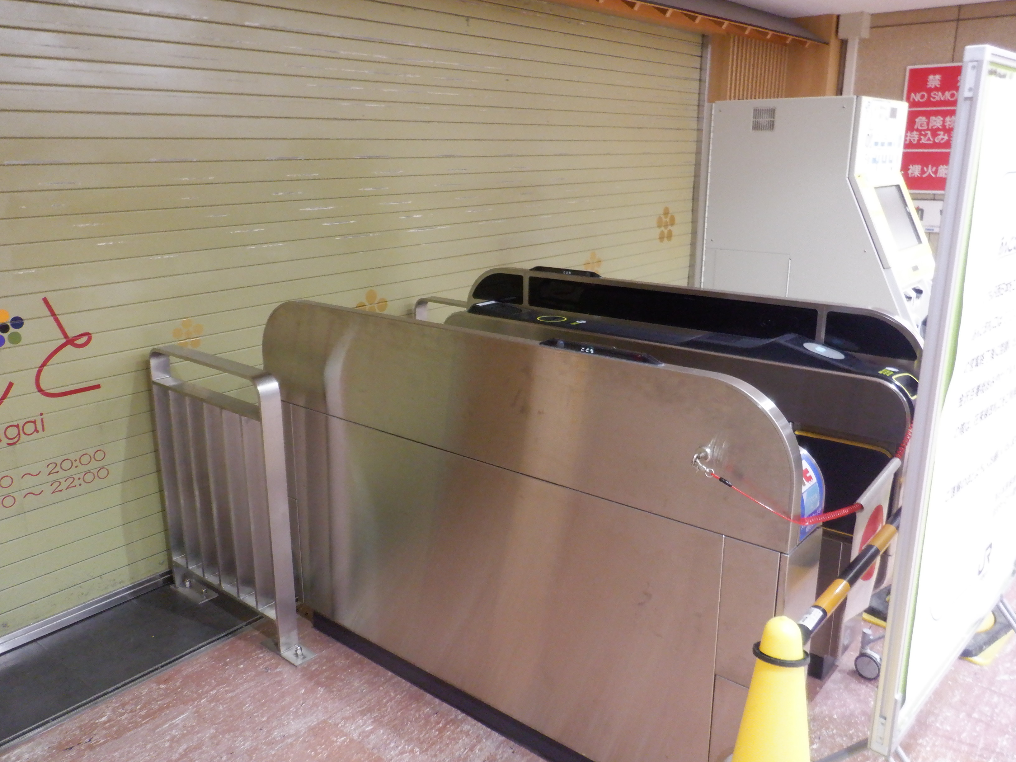 1月14日であんと改札が閉鎖されました。この日は既にあんと側から見ると閉鎖後の工事が終わっていました。改札内は自動改札機・精算機は残っていました。