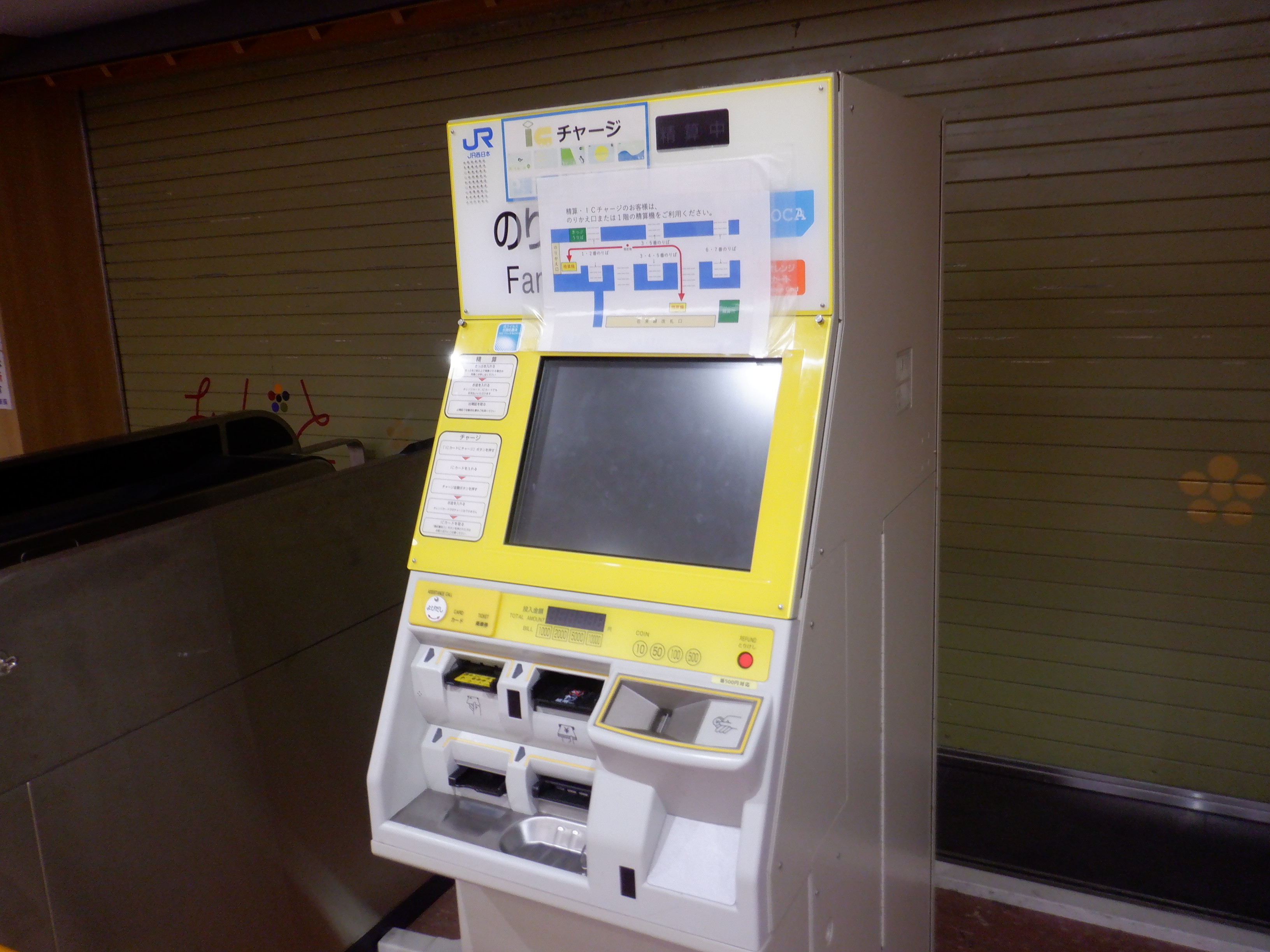 改札口のところの精算機の案内。