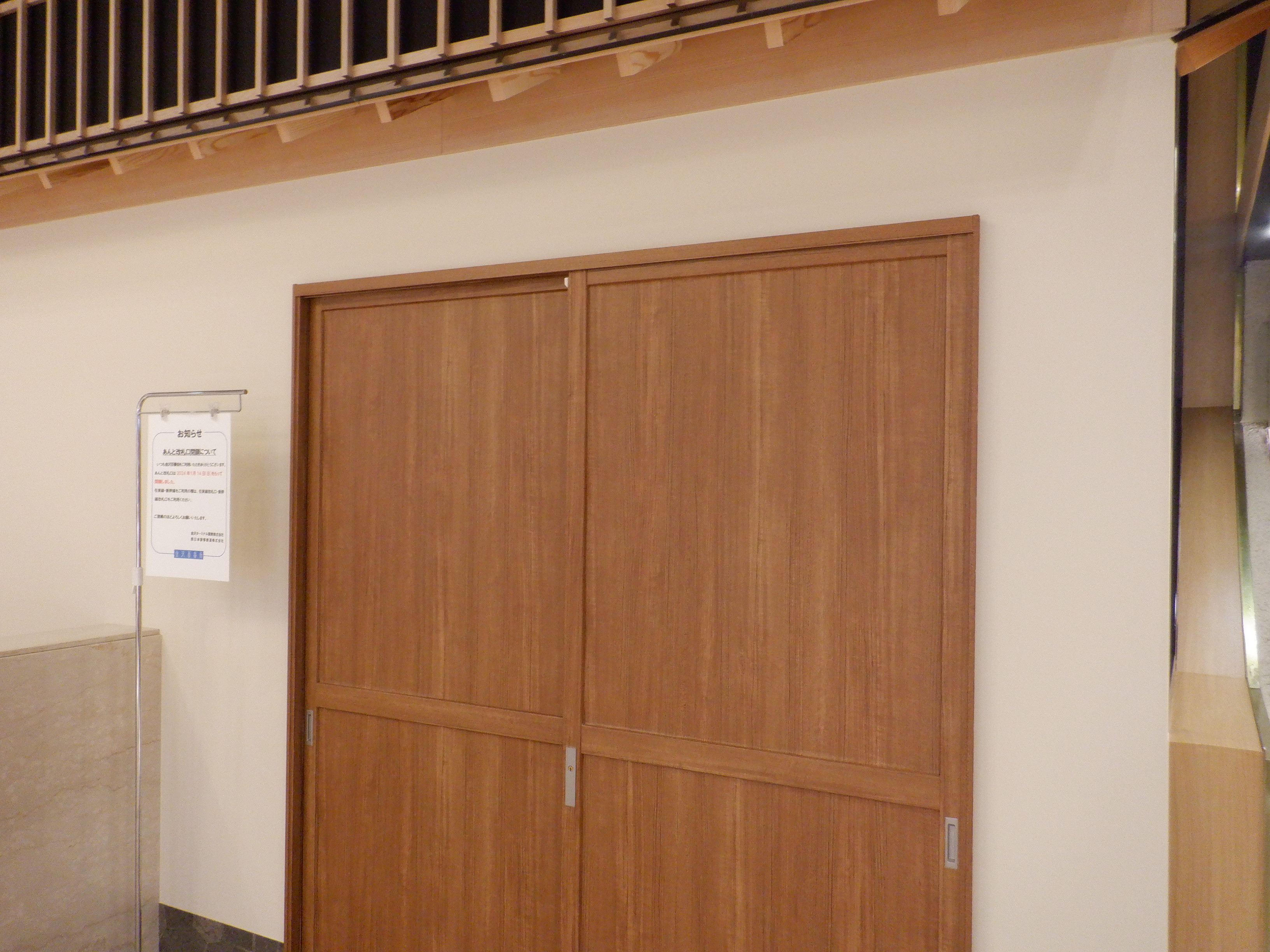 中二階から見たあんと改札。まだあんとの案内が残っています。