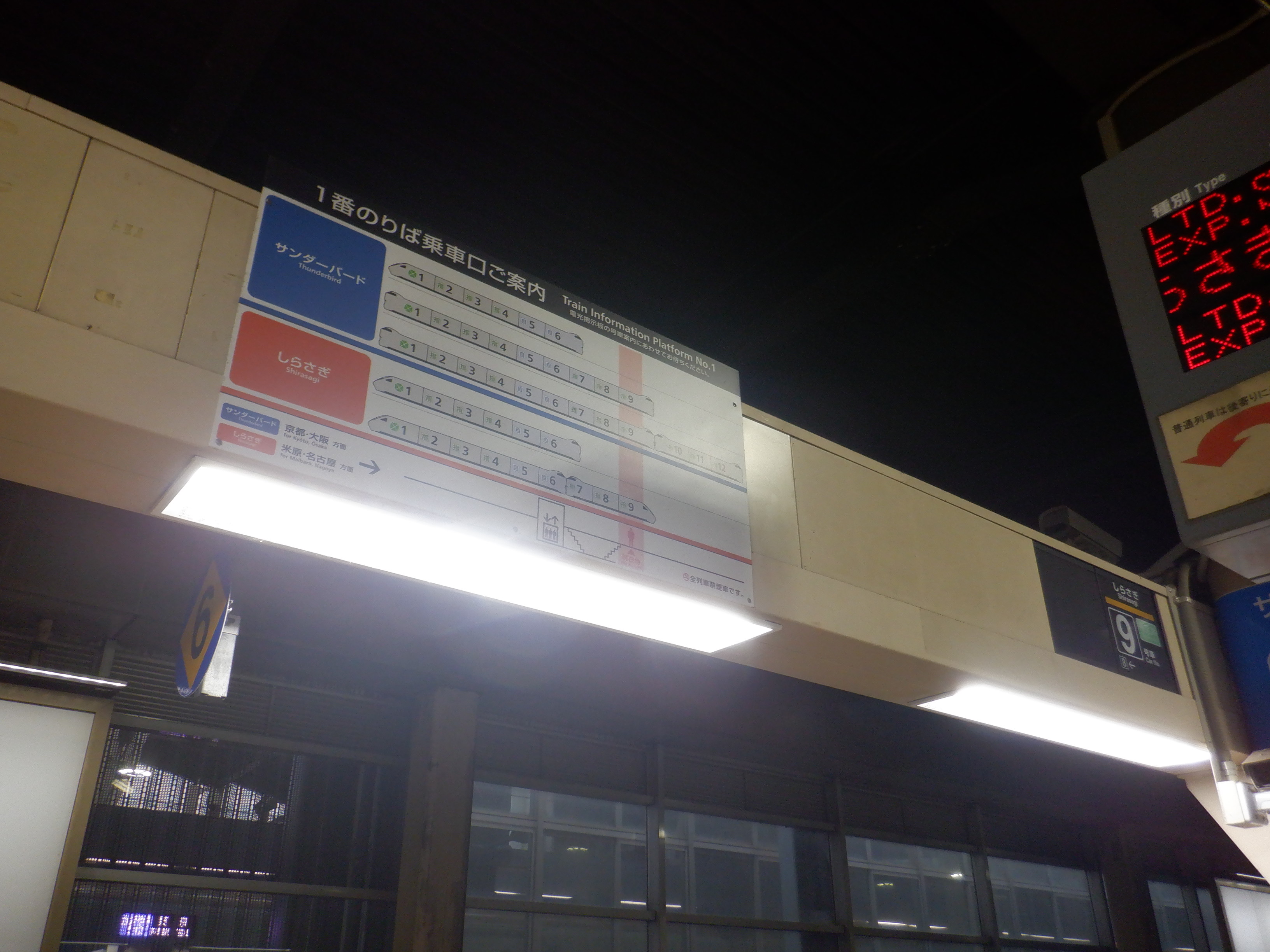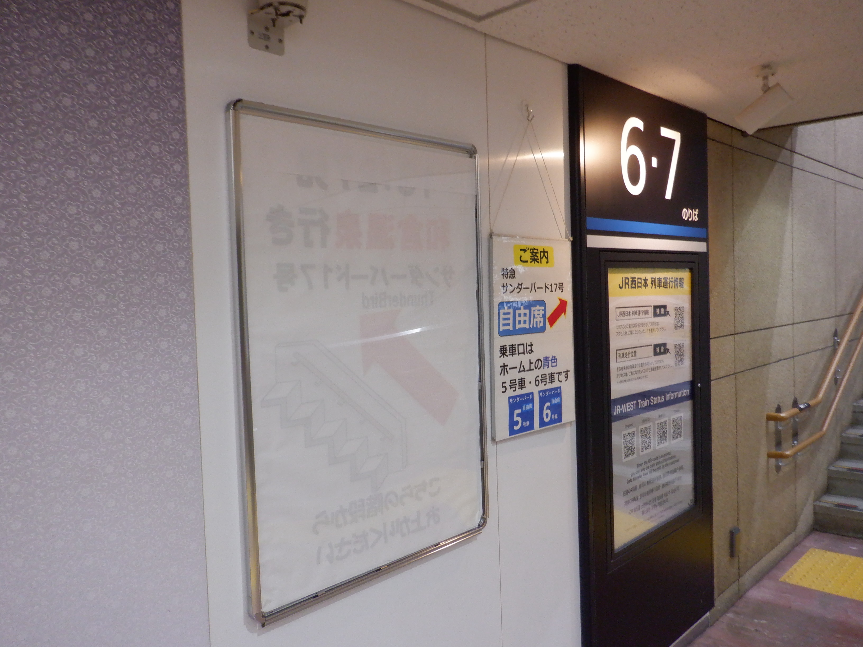 7番のりば入口のサンダーバード17号和倉温泉行きは裏返しになっていました。小さい方の自由席の案内は外されていました。