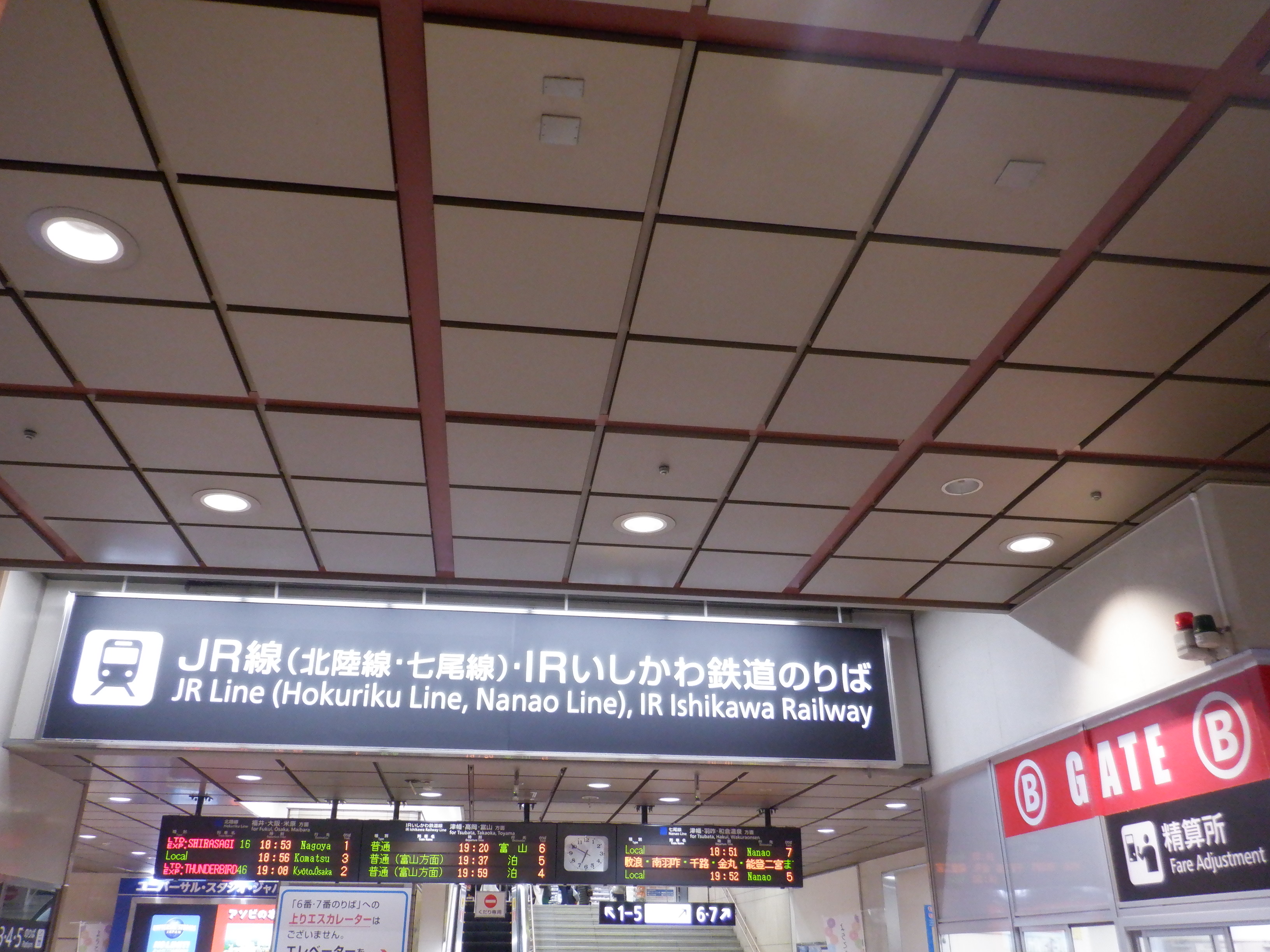金沢百番街「あんと」側から見たあんと改札へ上がって行く階段・エスカレータがあったところ。