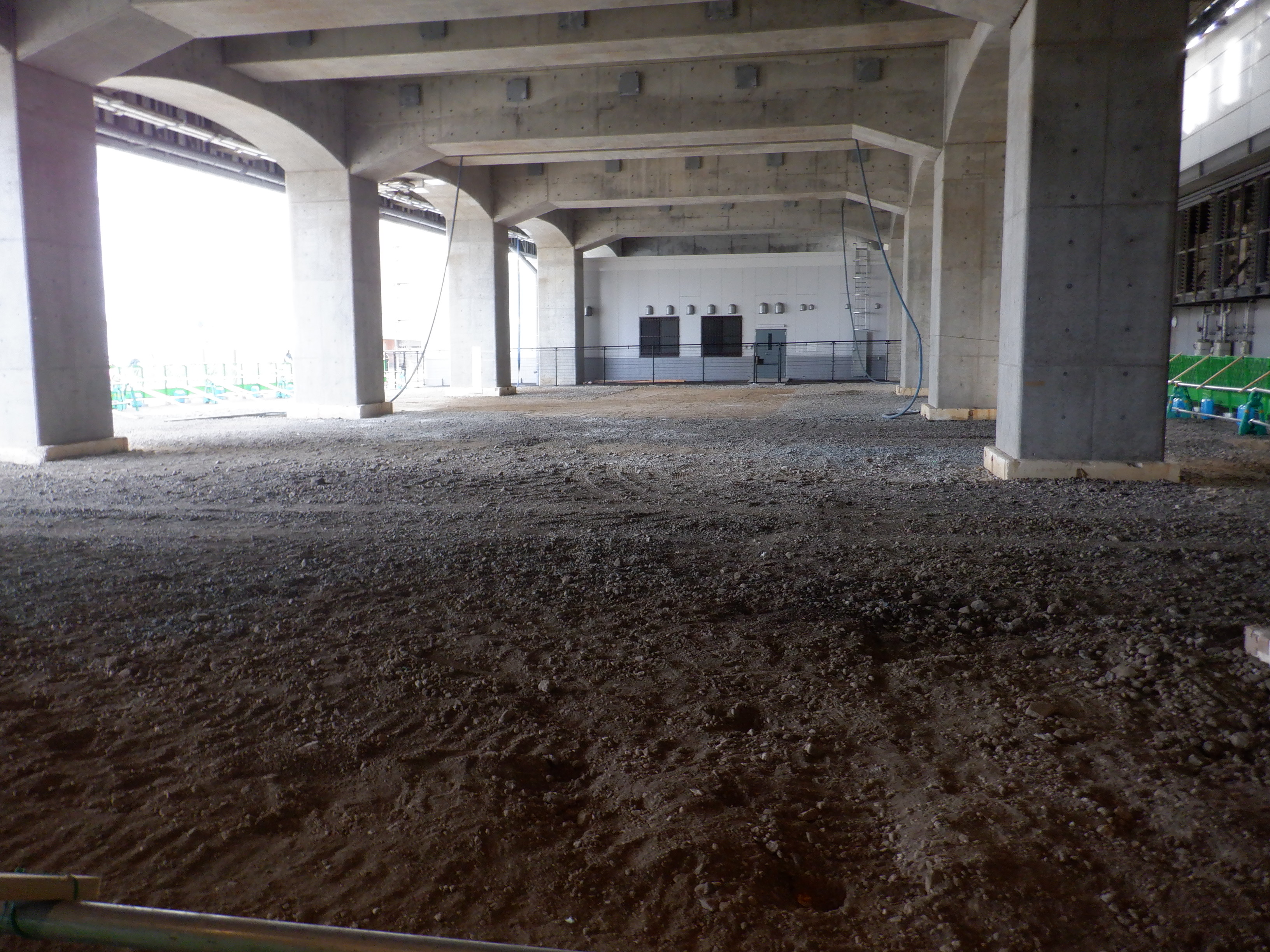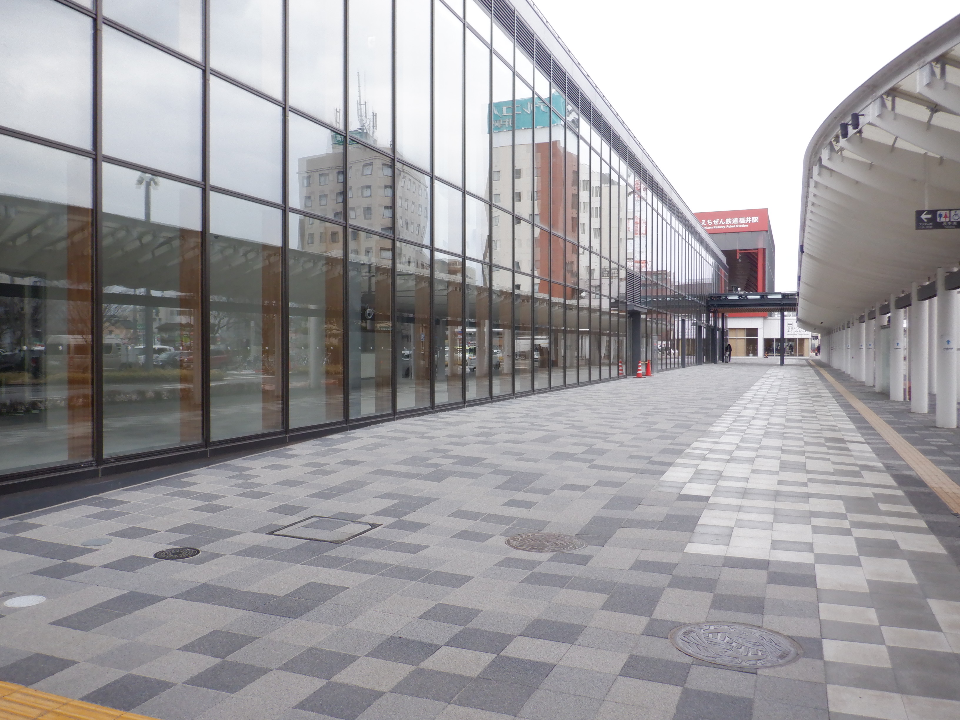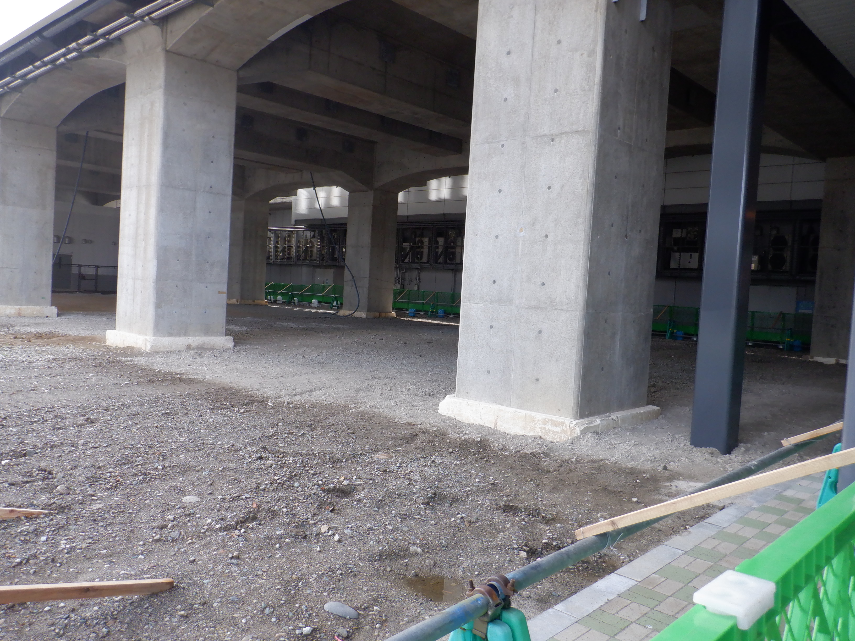 拡張施設〜えちぜん鉄道福井駅の通路の横の整地がされたところ。