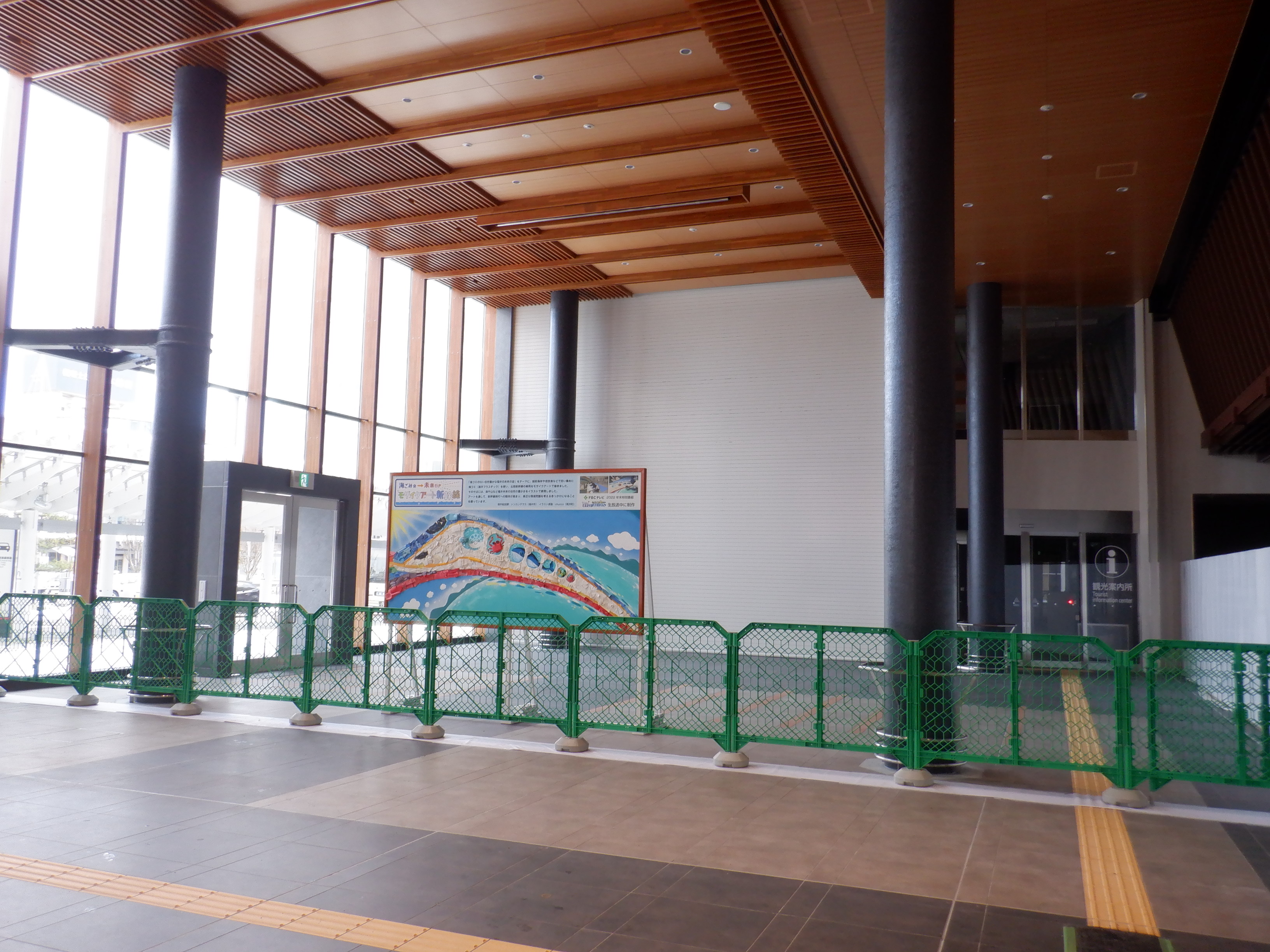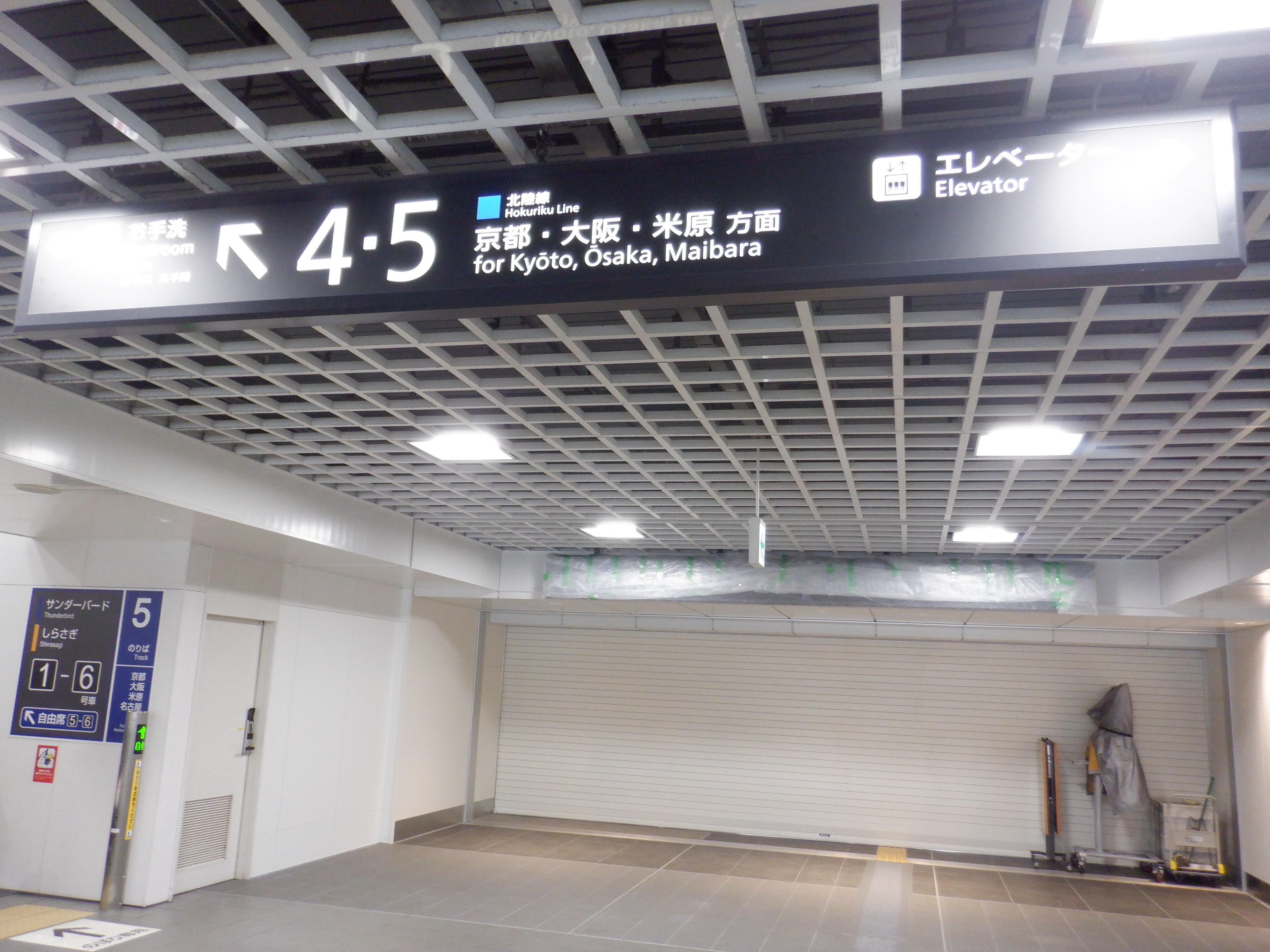 中二階の新幹線乗換改札口になるところ。看板が付けられました。