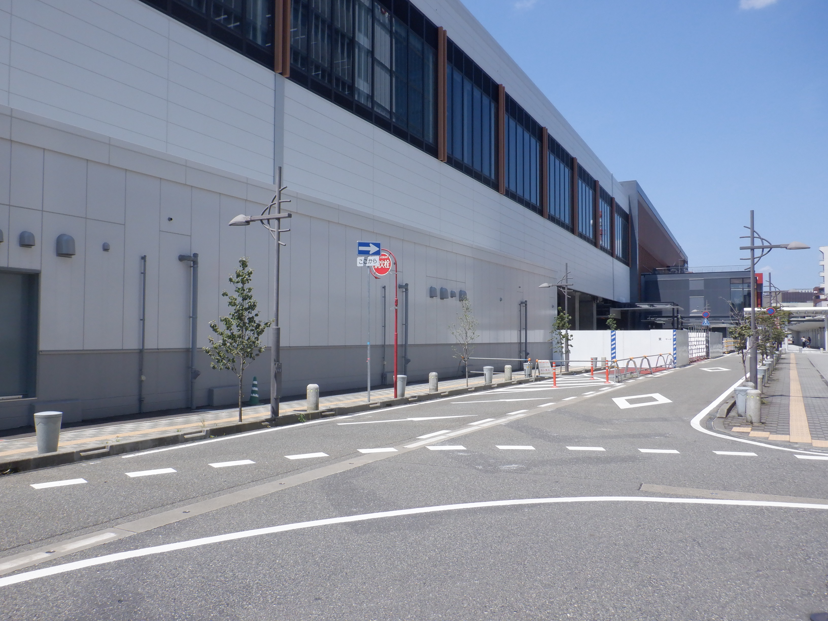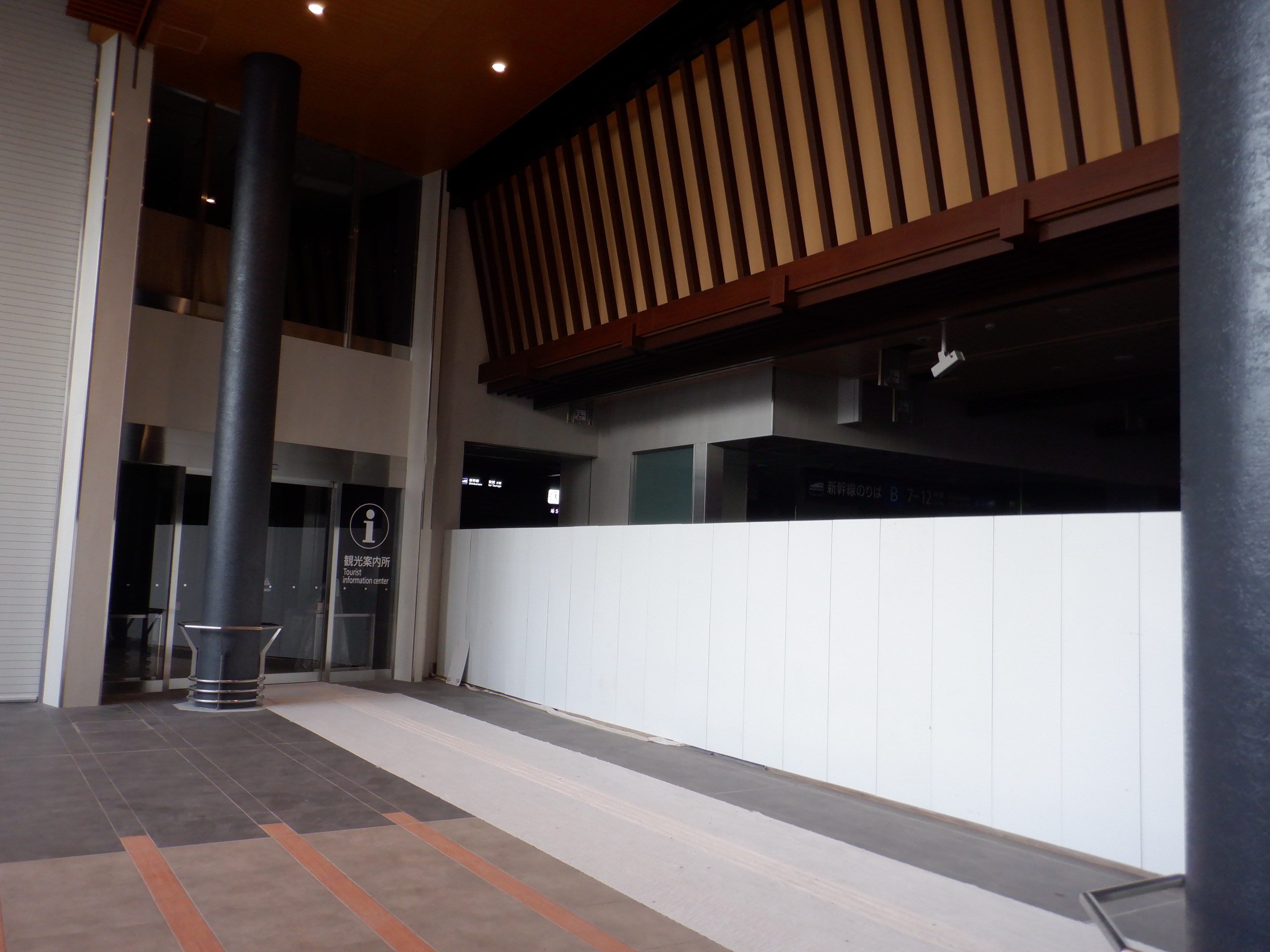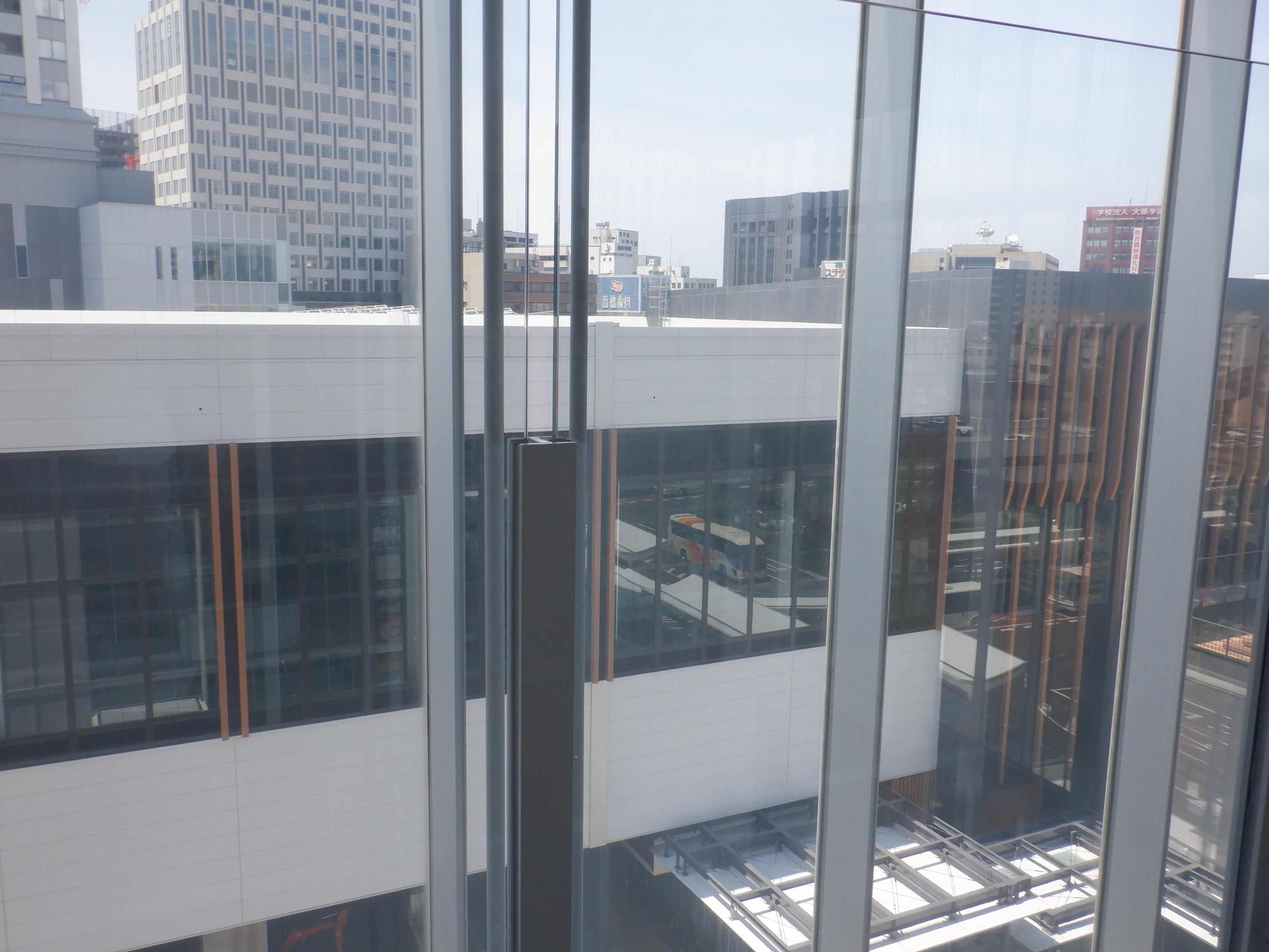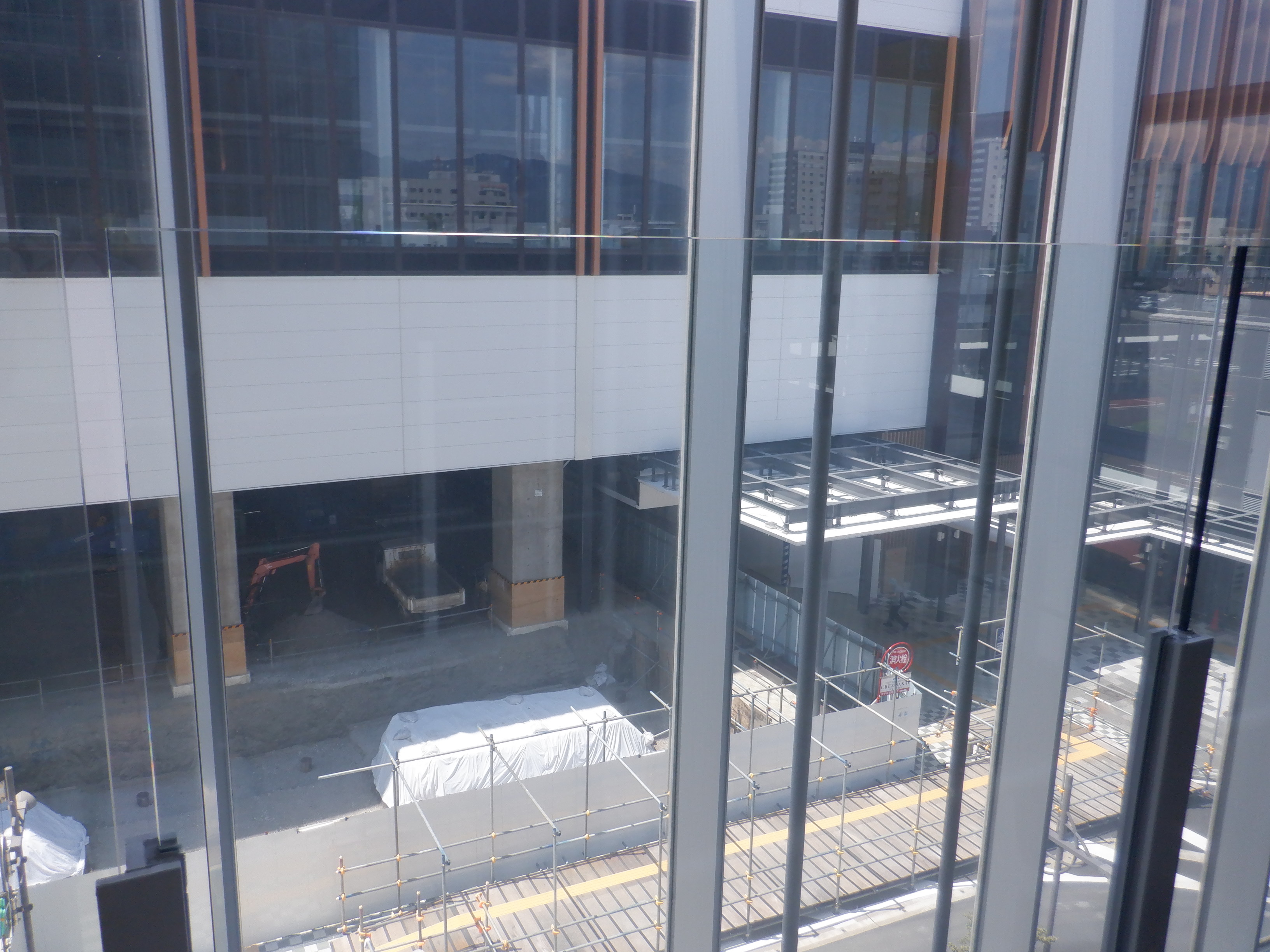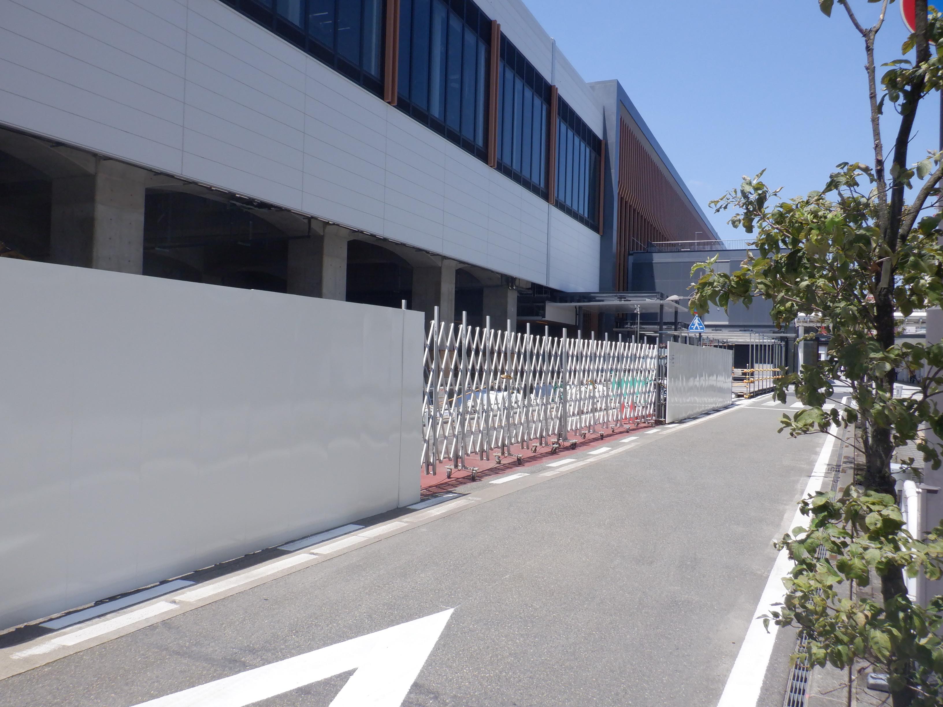 拡張施設とそこから見た新幹線駅の看板類。