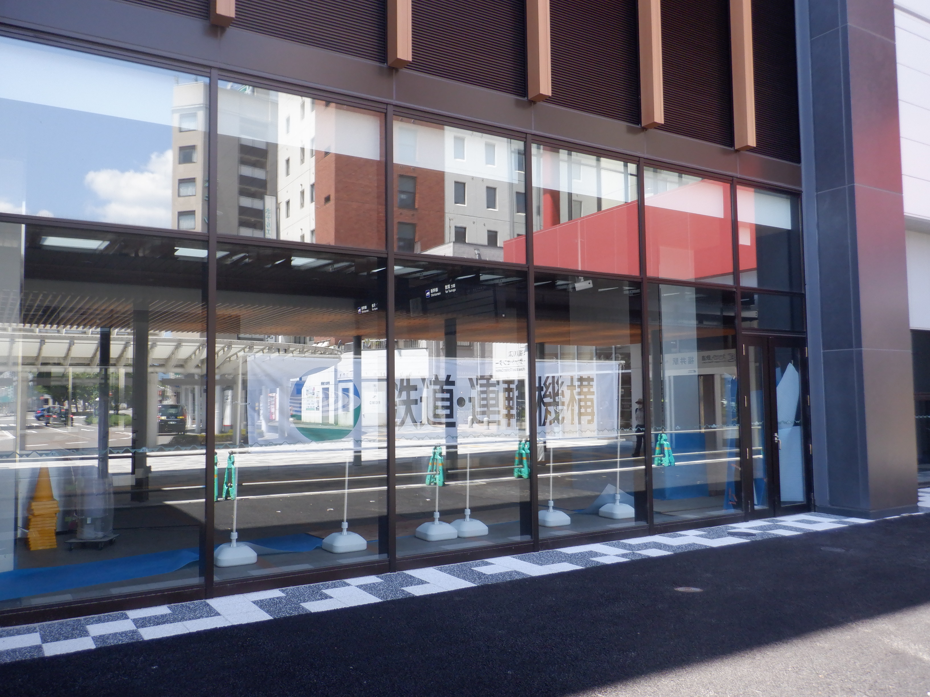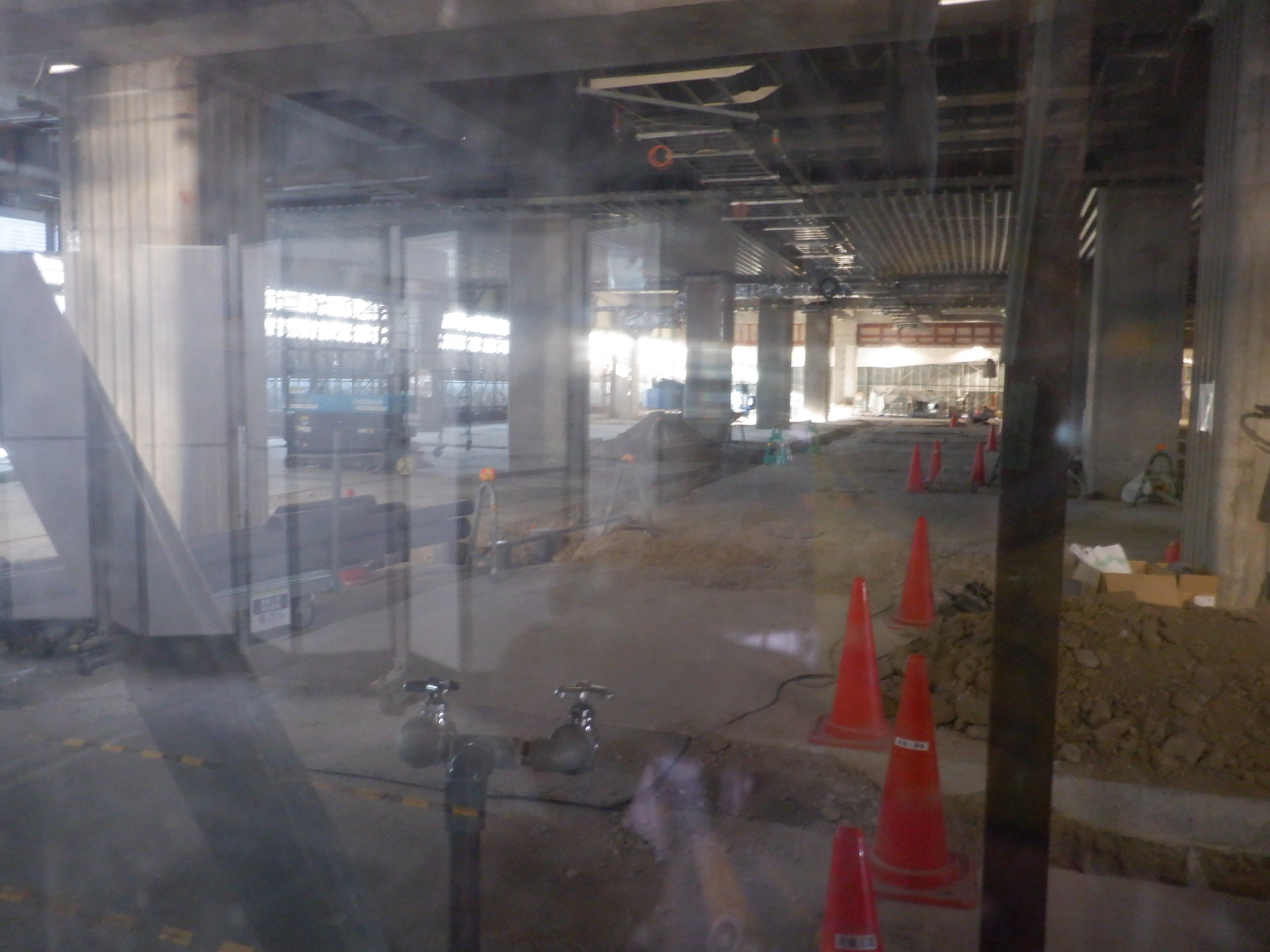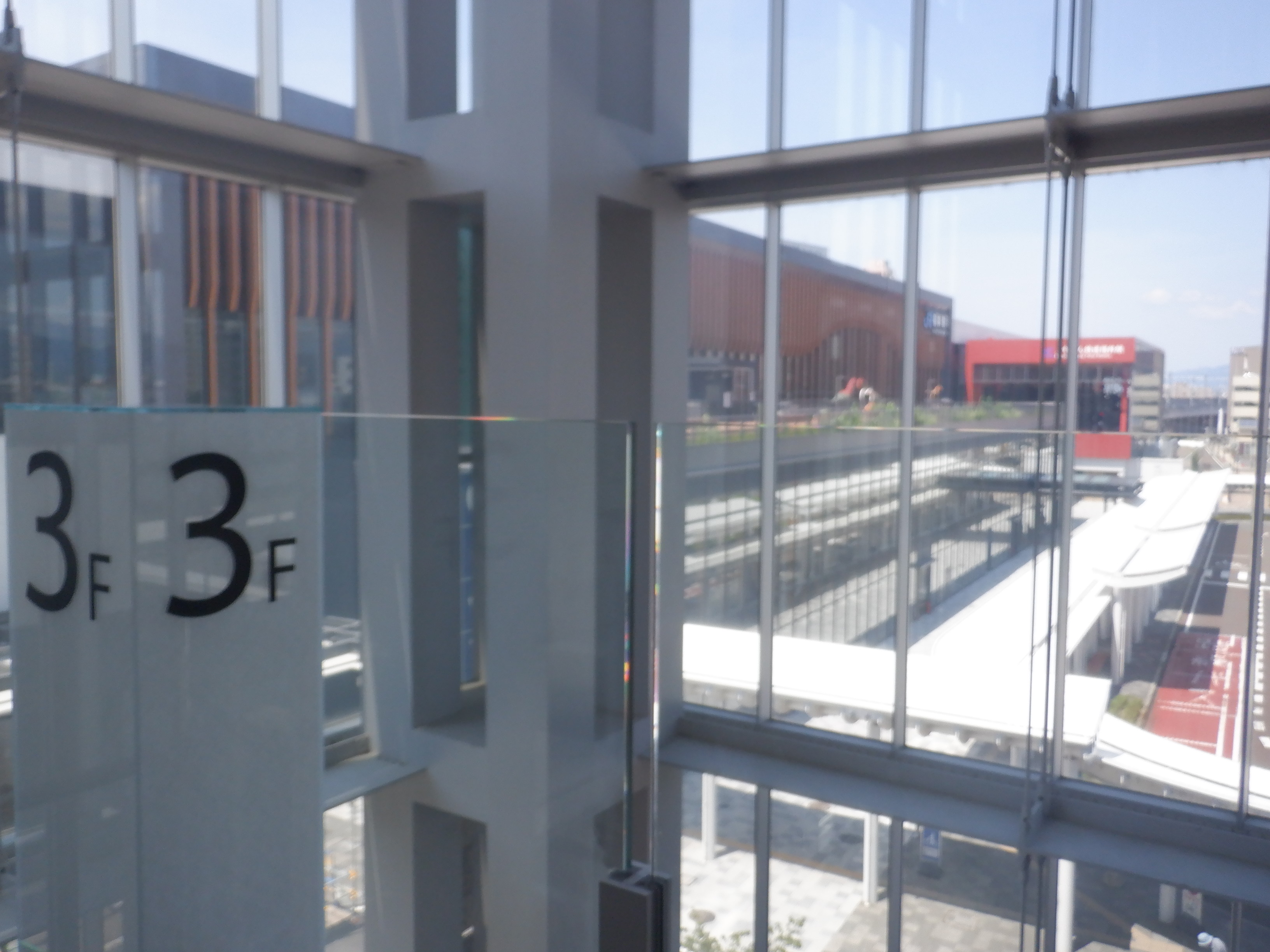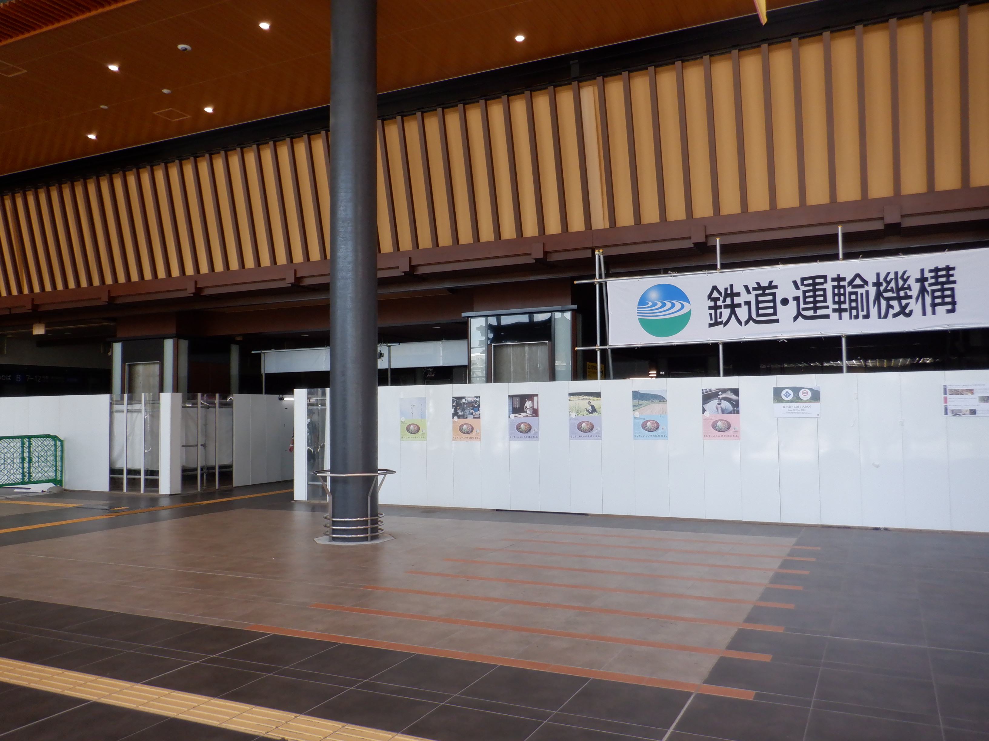 拡張施設とそこから見た新幹線駅の看板類。