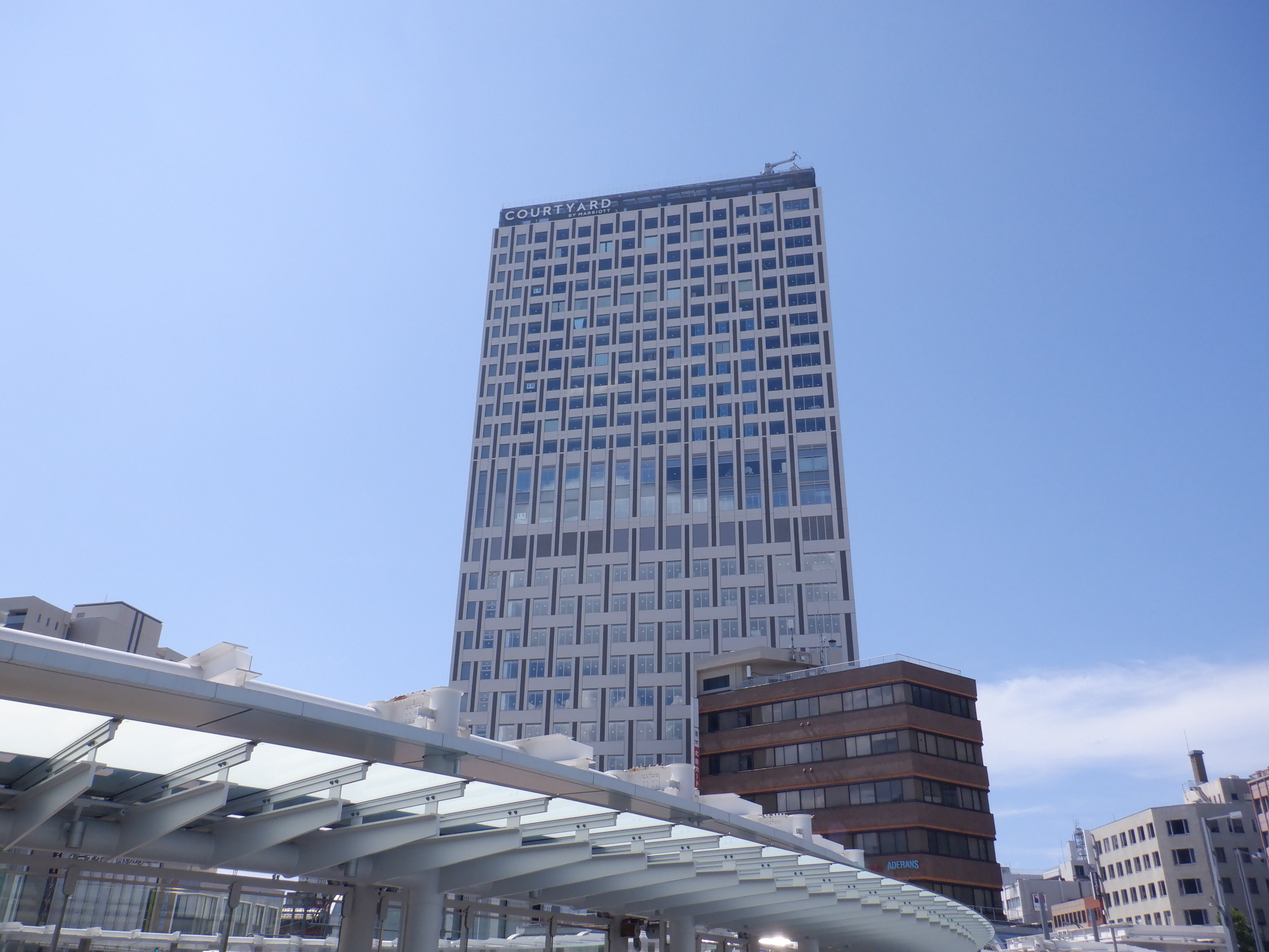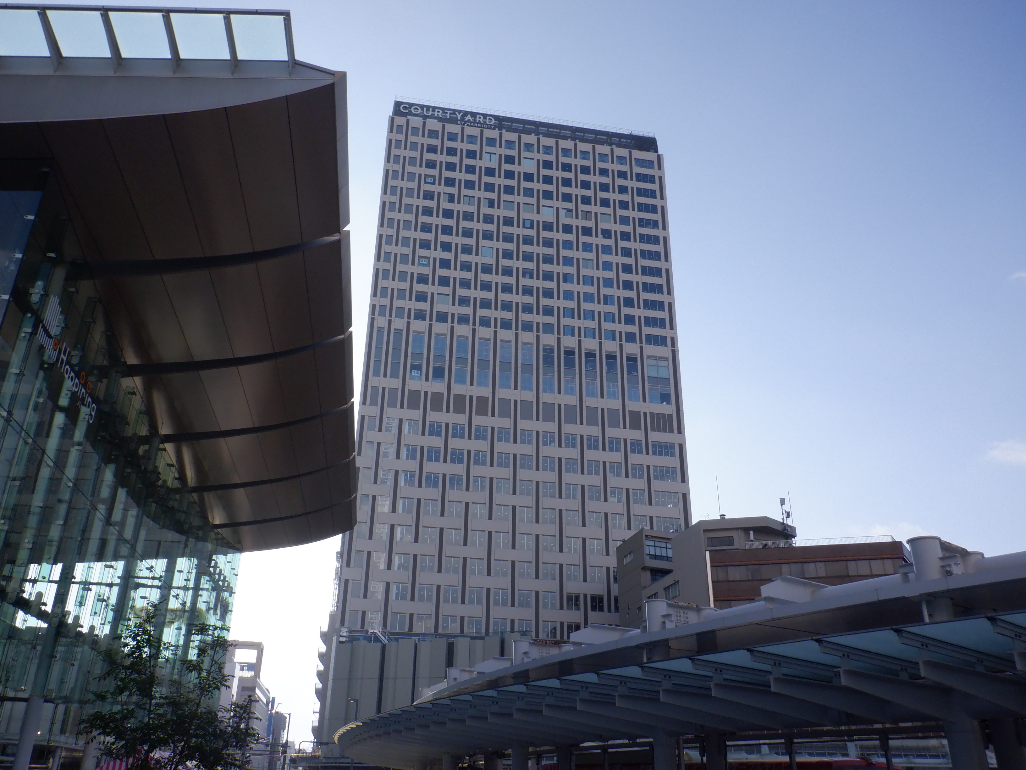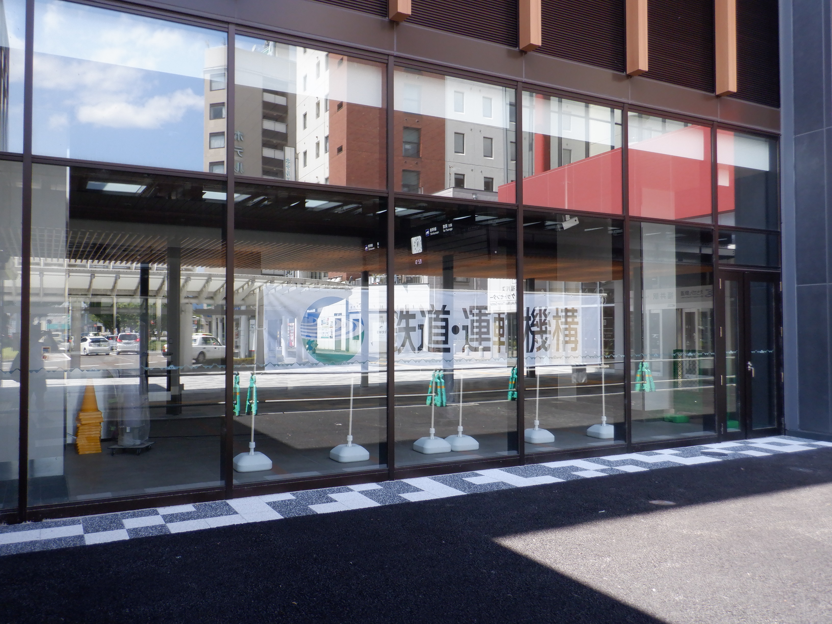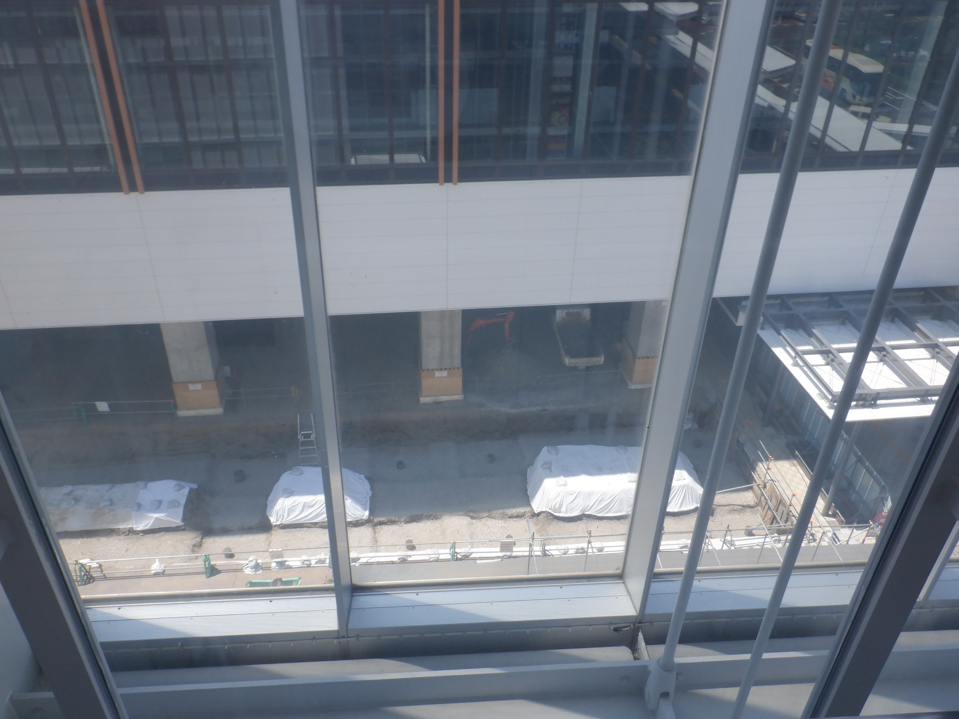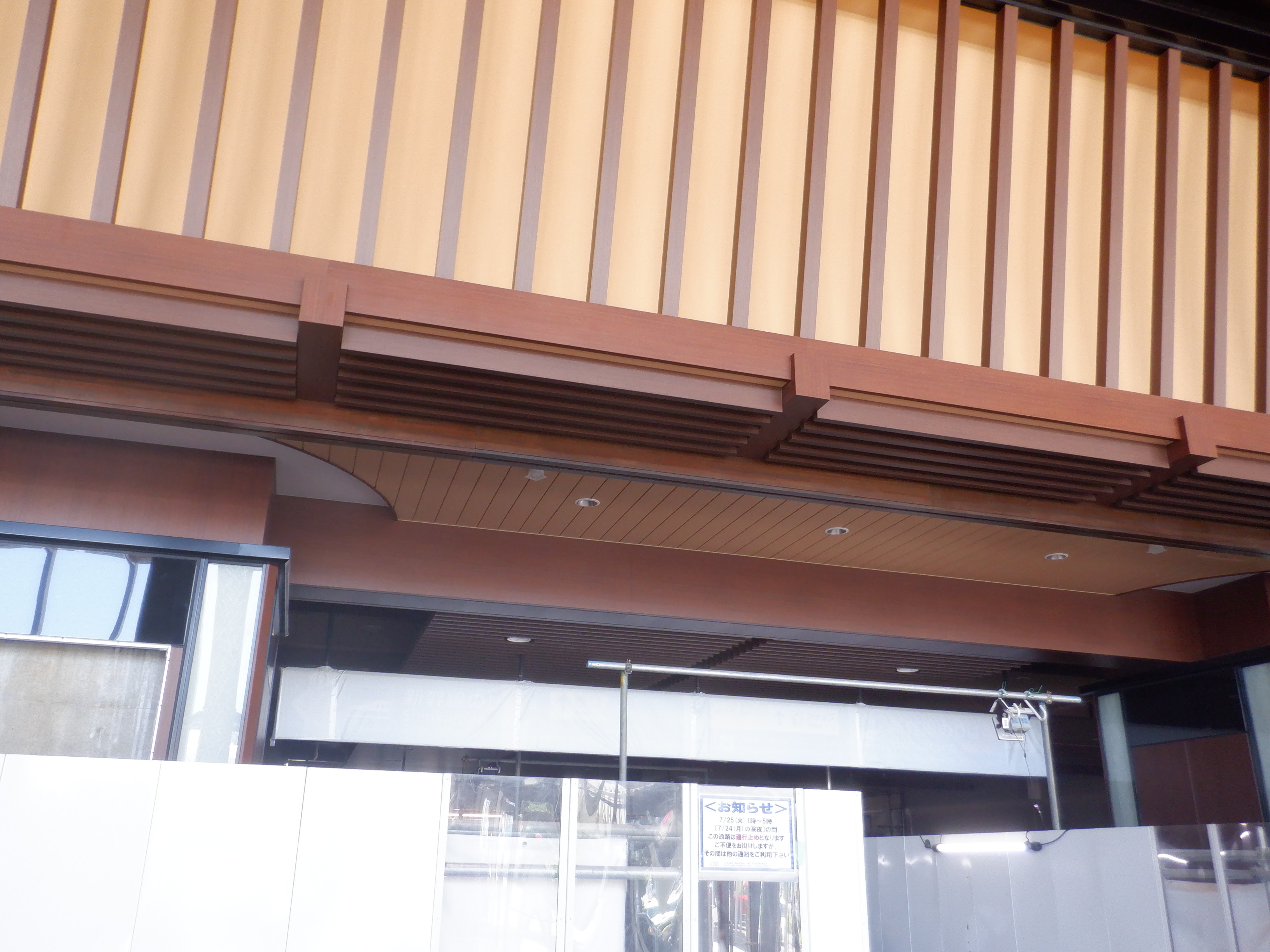 拡張施設とそこから見た新幹線駅の看板類。