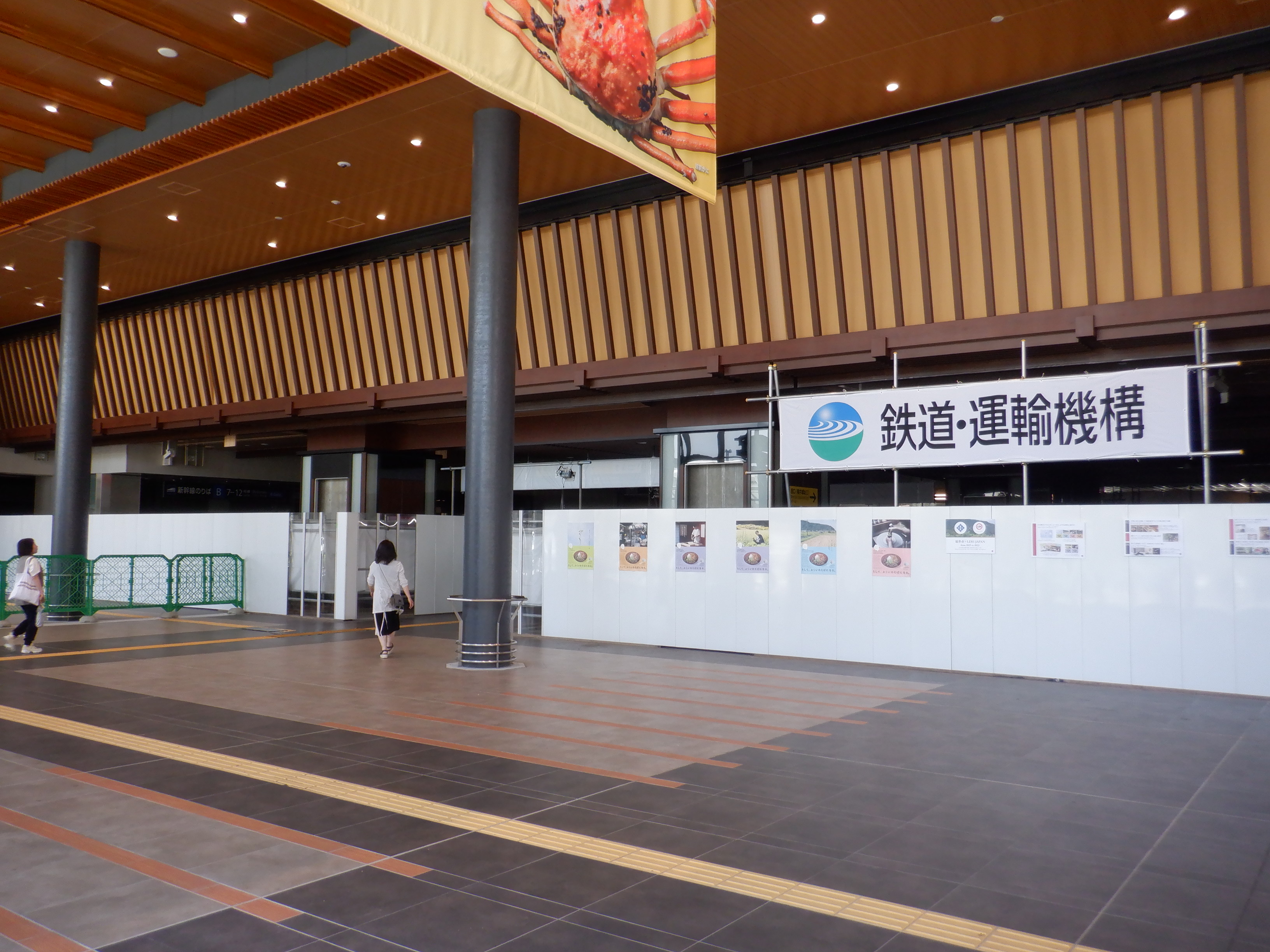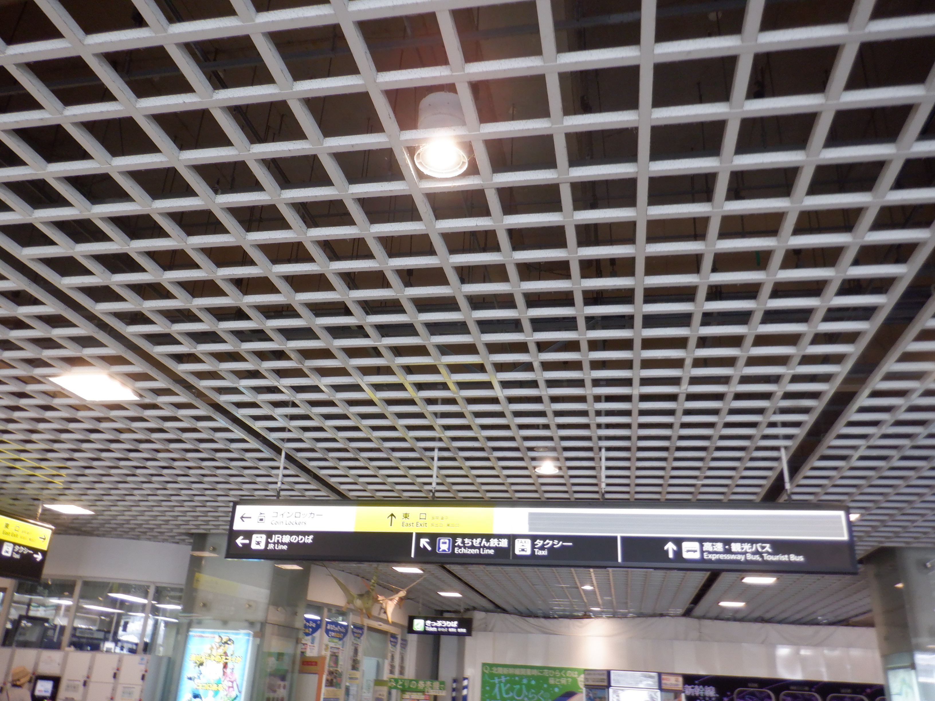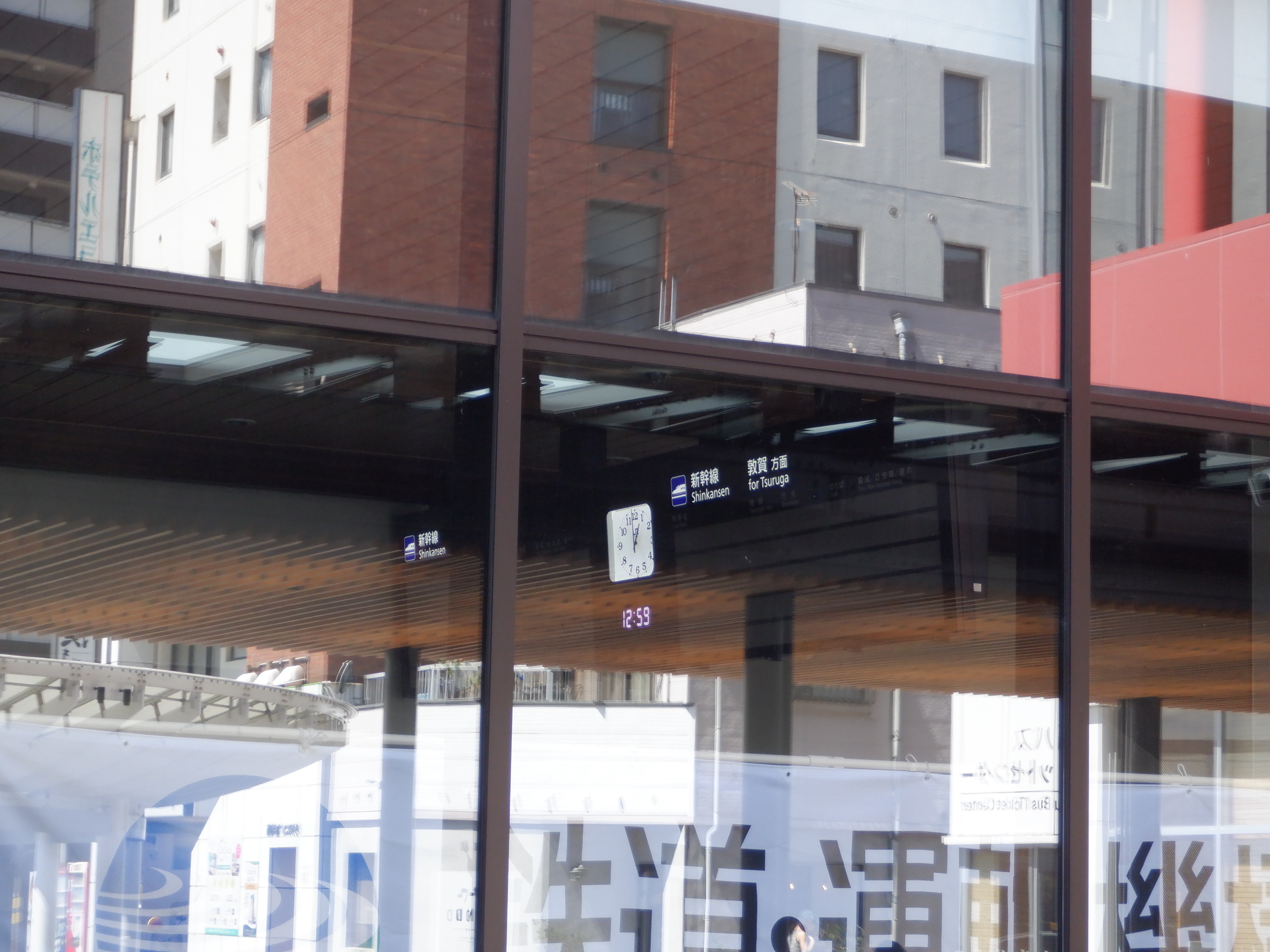 えちぜん鉄道福井駅との間。新幹線の発車標が見えます。