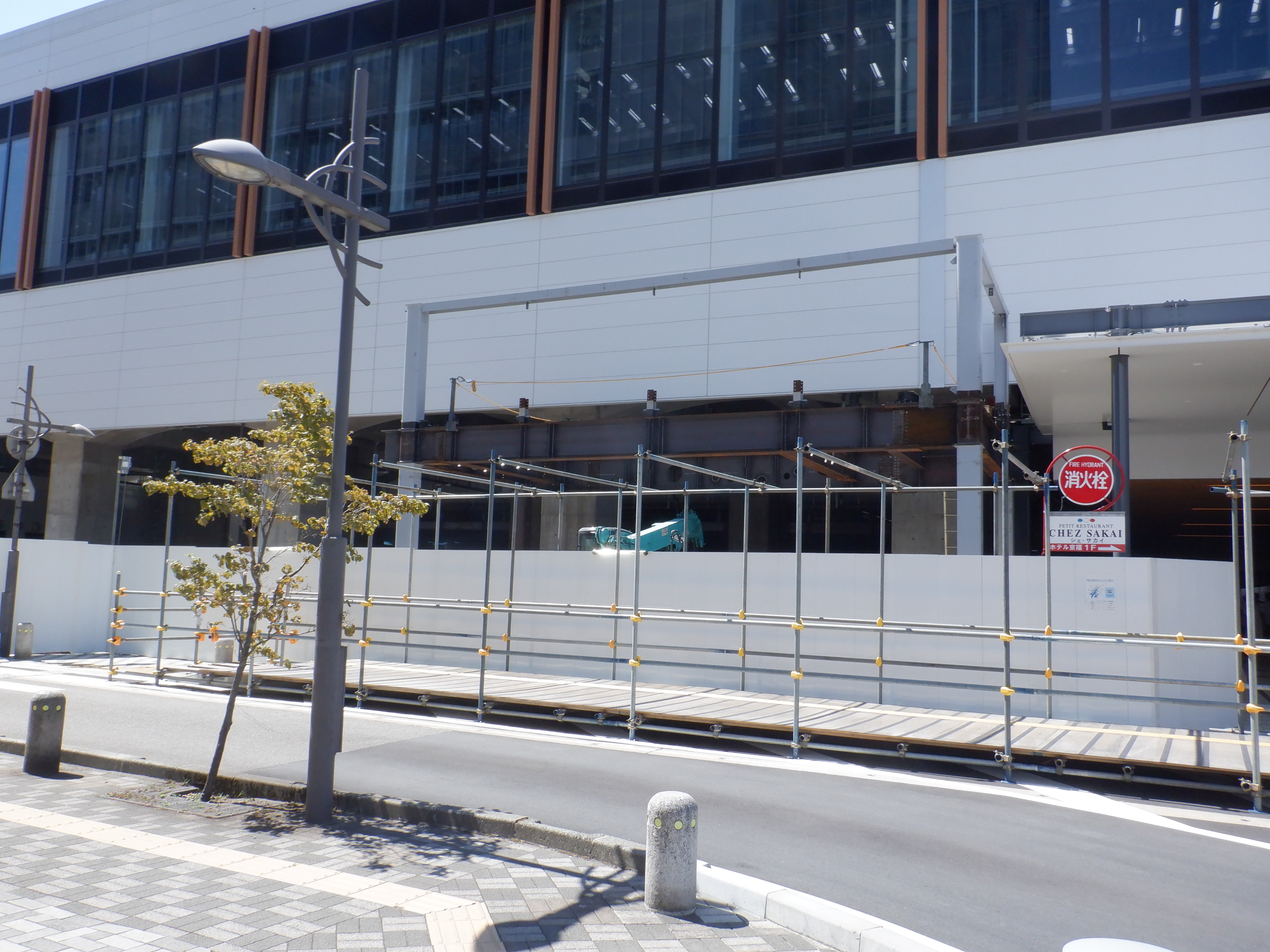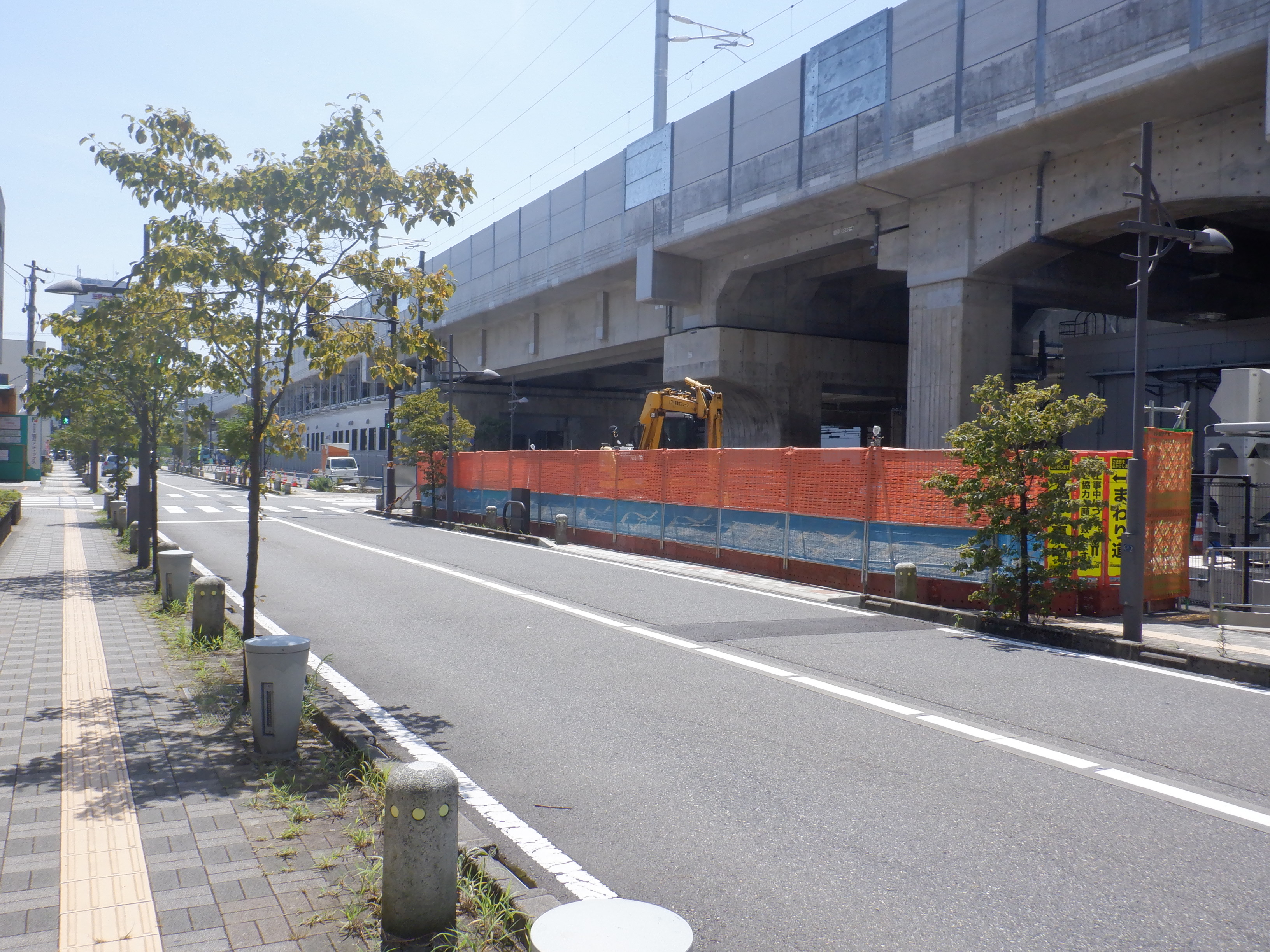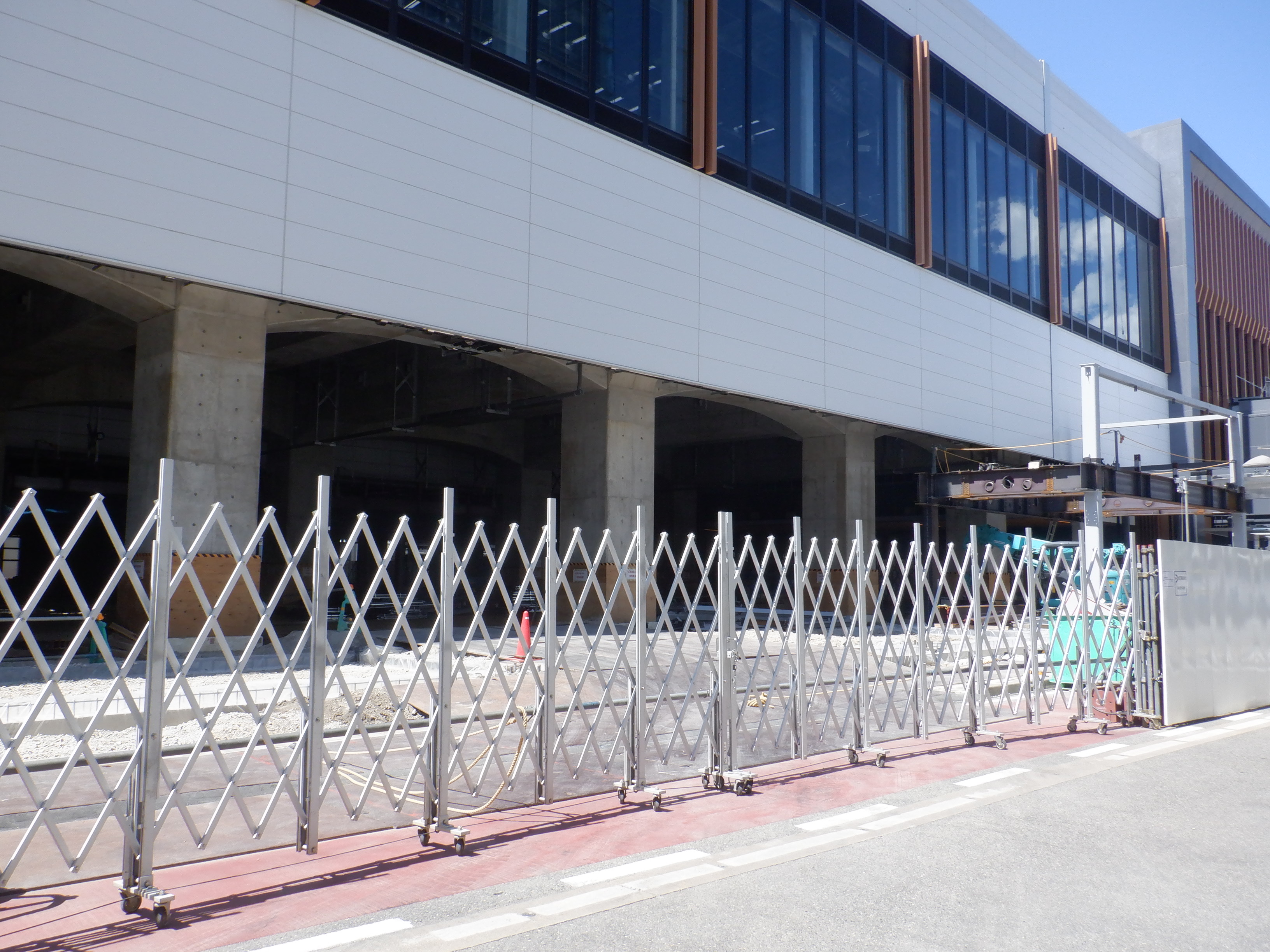 アオッサの前付近から。新しい商業施設建設が始まったことと、アオッサ側に渡る部分の前に仮設の通路ができました。