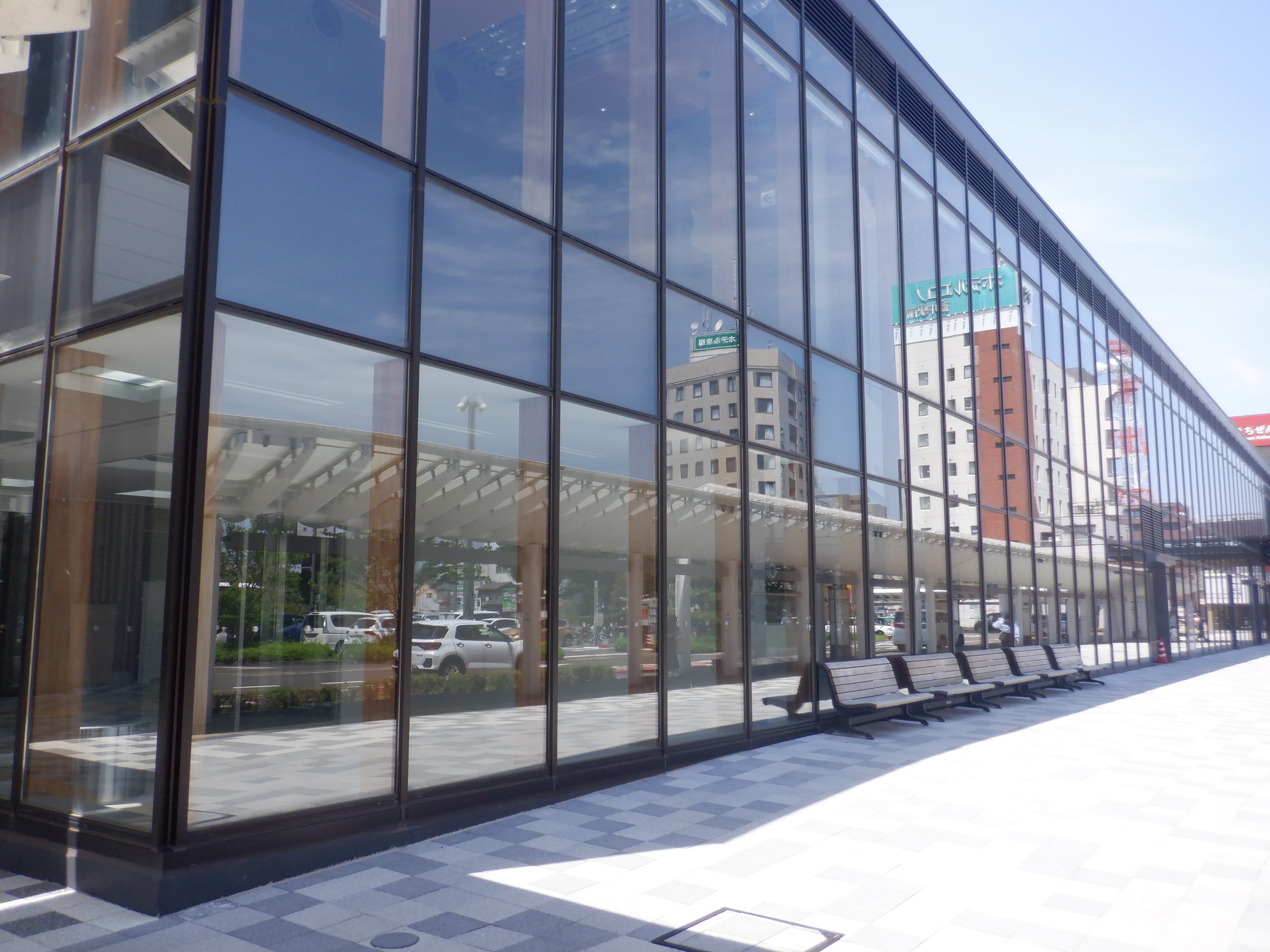 西口のビル。クレーン車がなくなりました。